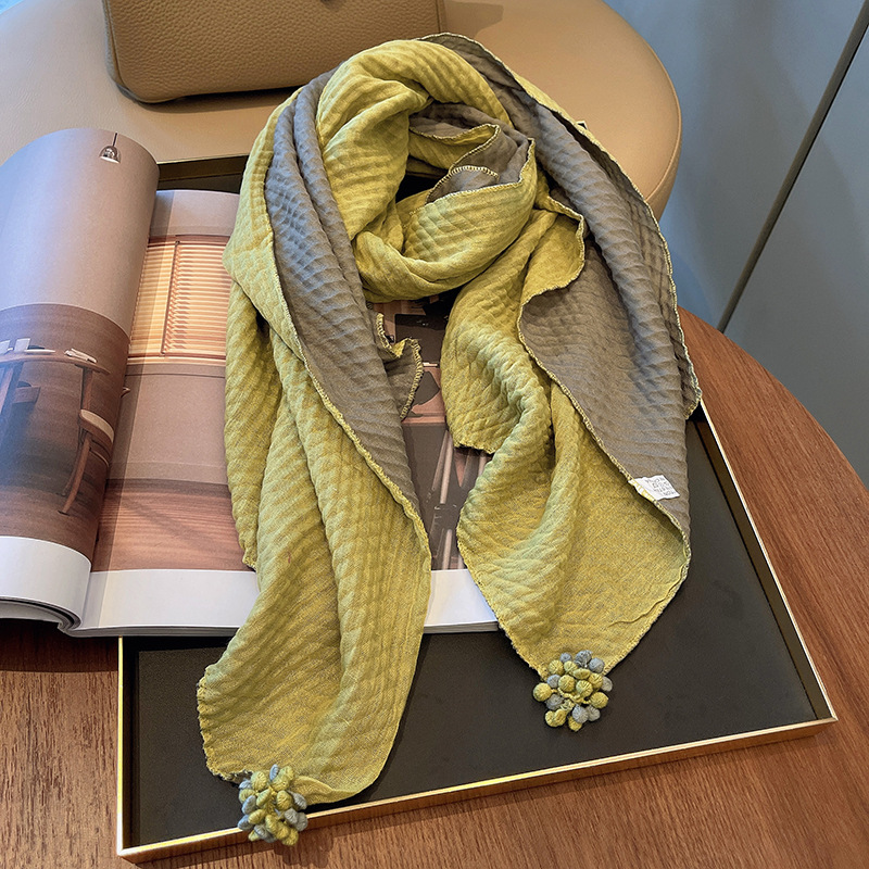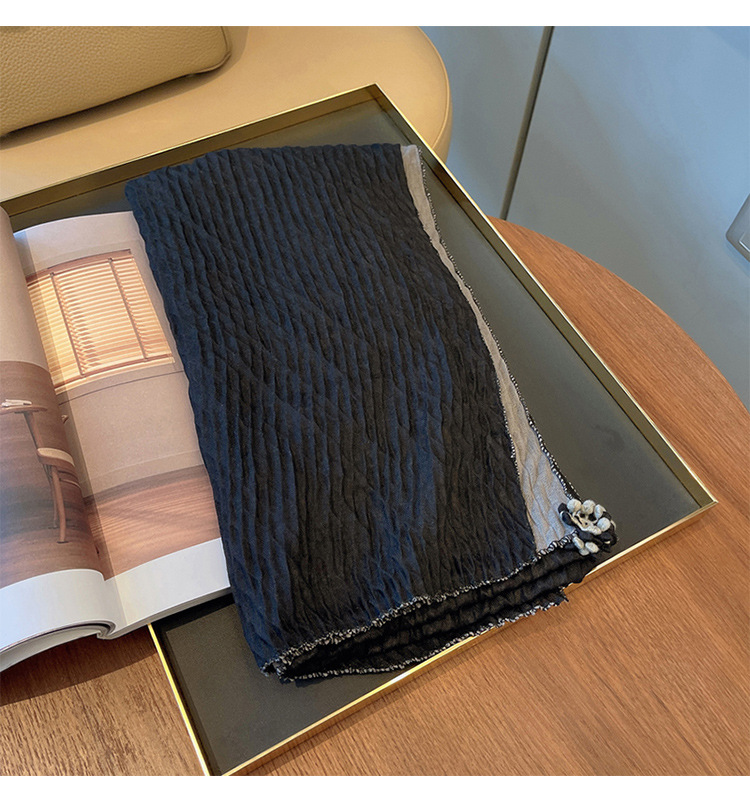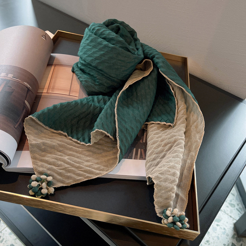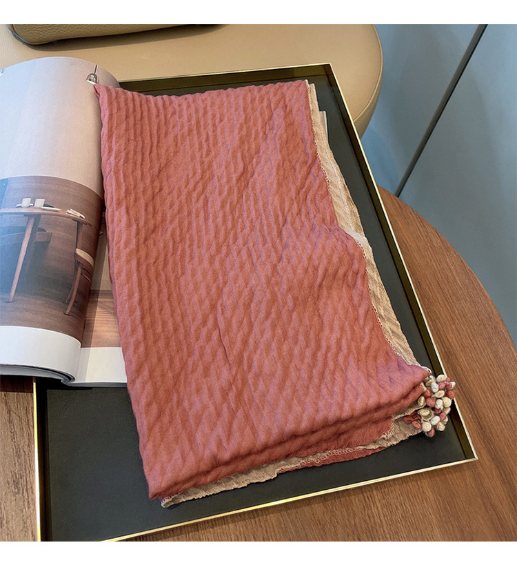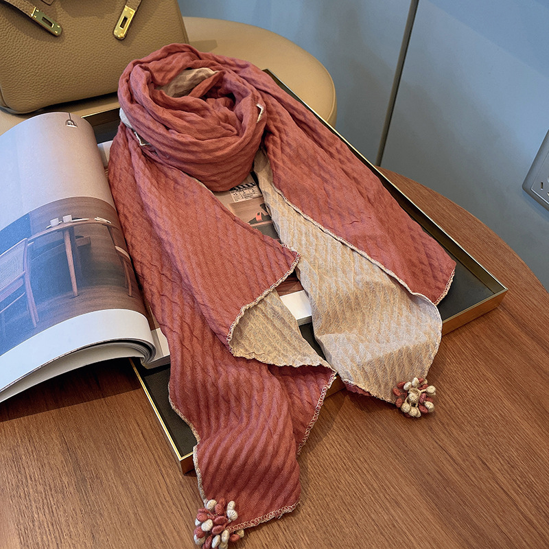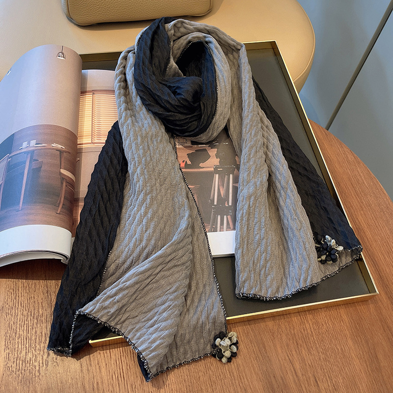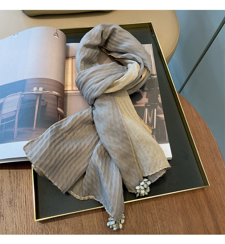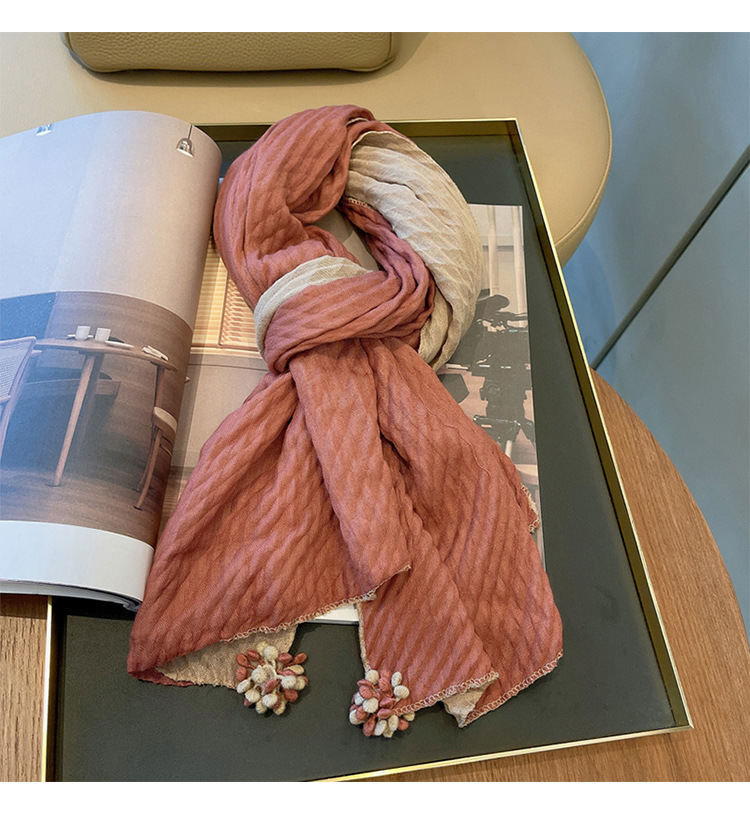 문학과 예술적 사교계 바람 면화와 린넨 스카프 여성용 꽃 장식 고급 소프트 숄 140x40 짧은 지적 접기