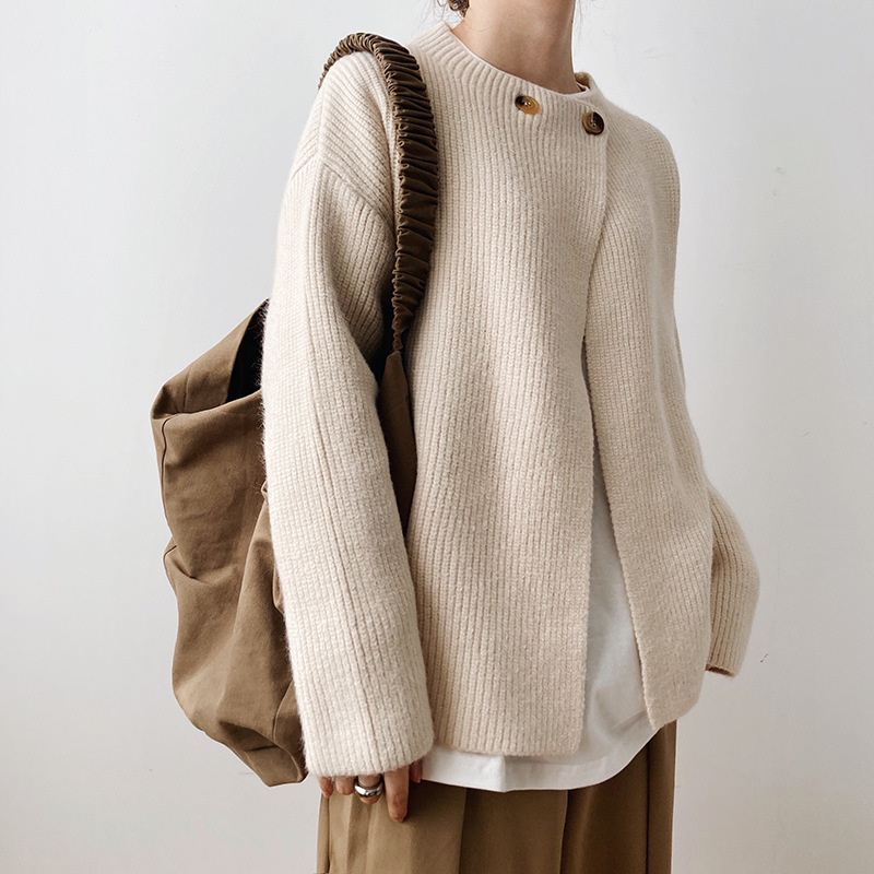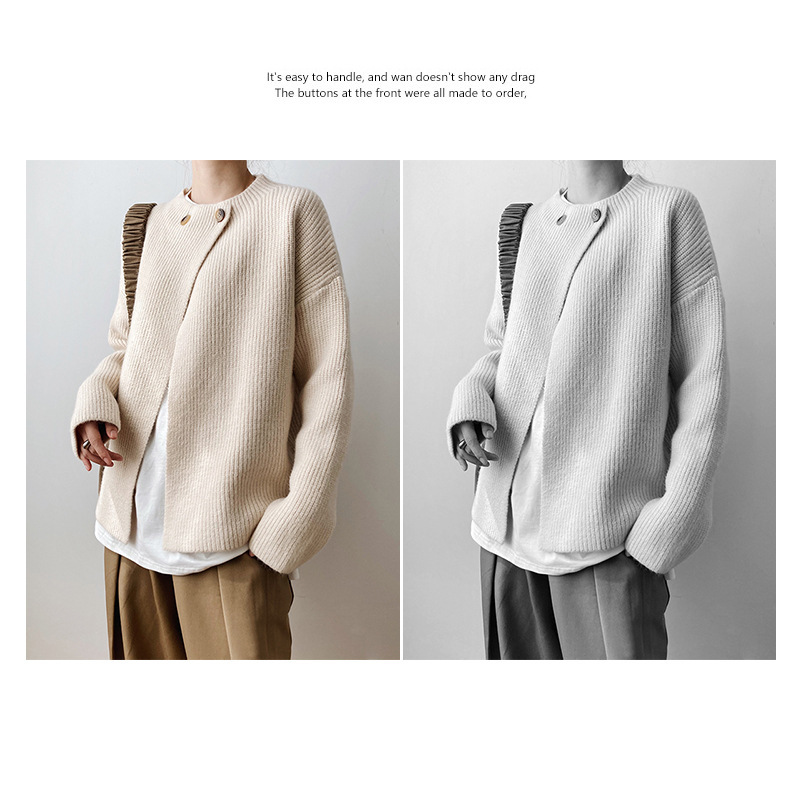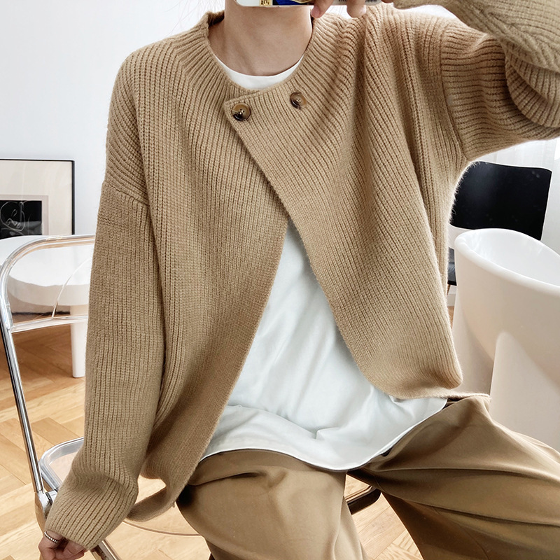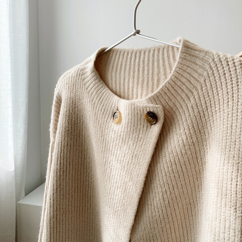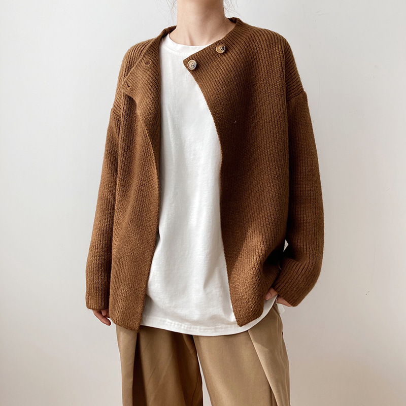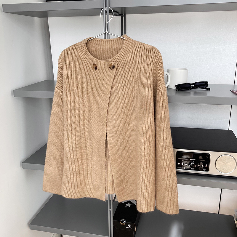 한국어 스타일 라운드 넥 버튼 니트 카디건 여성 탑 2025 봄, 가을 새로운 스타일 게으른 스타일 단순 캐주얼 스웨터 여성 트렌드