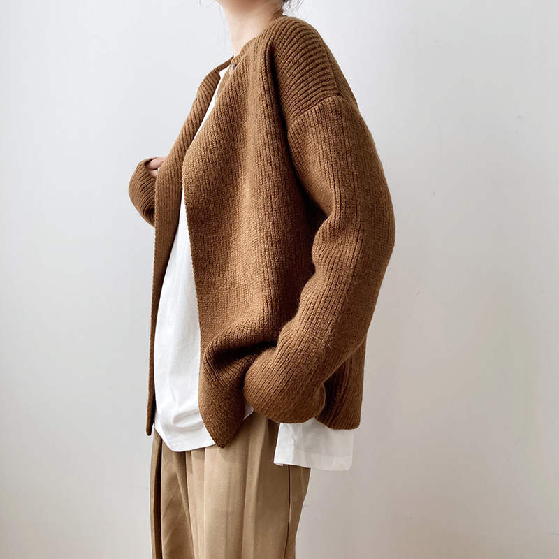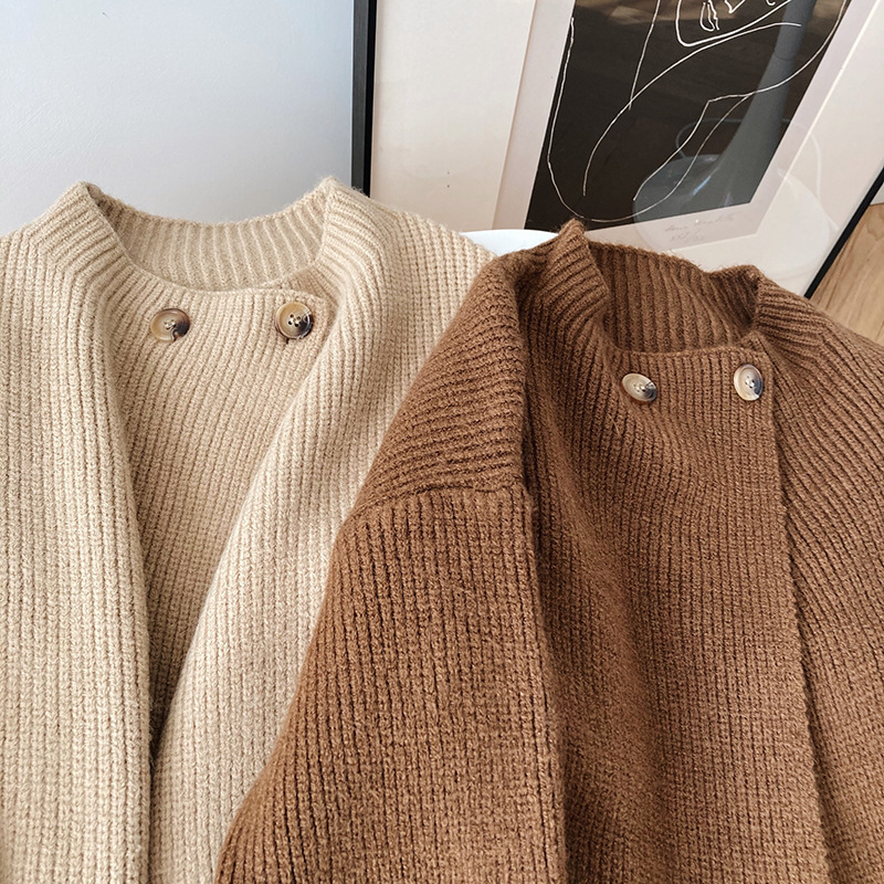 한국어 스타일 라운드 넥 버튼 니트 카디건 여성 탑 2025 봄, 가을 새로운 스타일 게으른 스타일 단순 캐주얼 스웨터 여성 트렌드스토어 가기