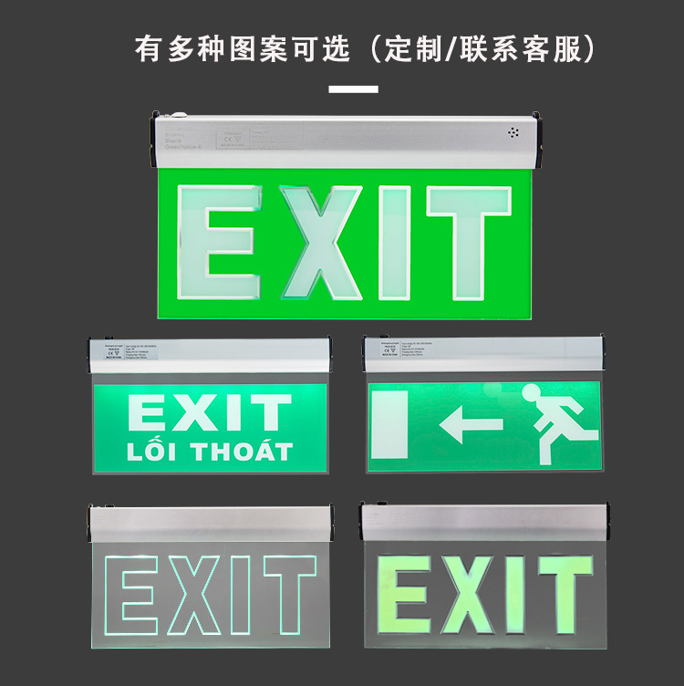 국경 안전 출구 표시등 실내 아크릴 벽 장착 양면 3W LED 비상등 출구 표지판스토어 가기