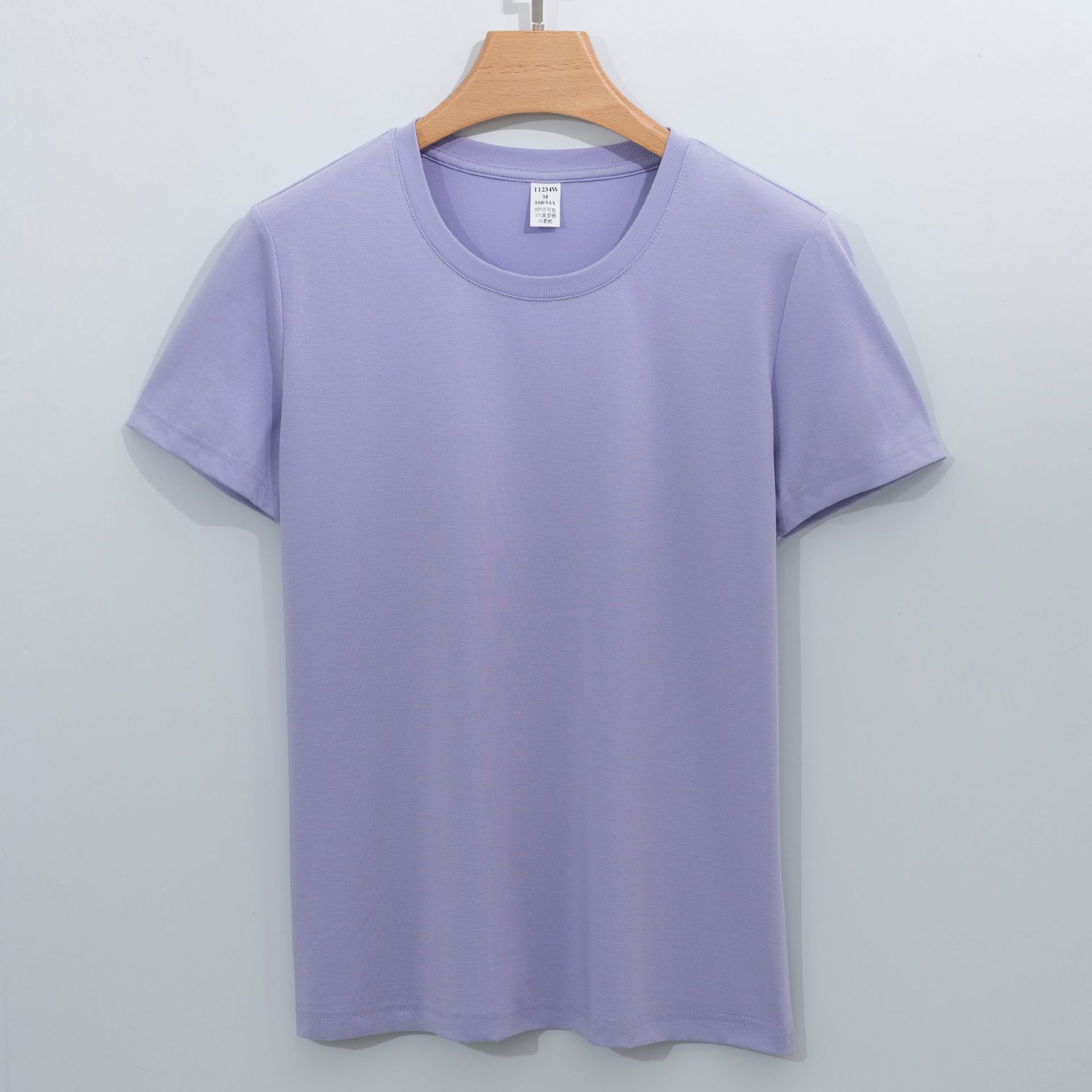 고급 유크 티셔츠 여성용 여름 솔로 나 반팔 라운드 넥 솔리드 컬러 220g 모달 풀오버 여성용 티셔츠