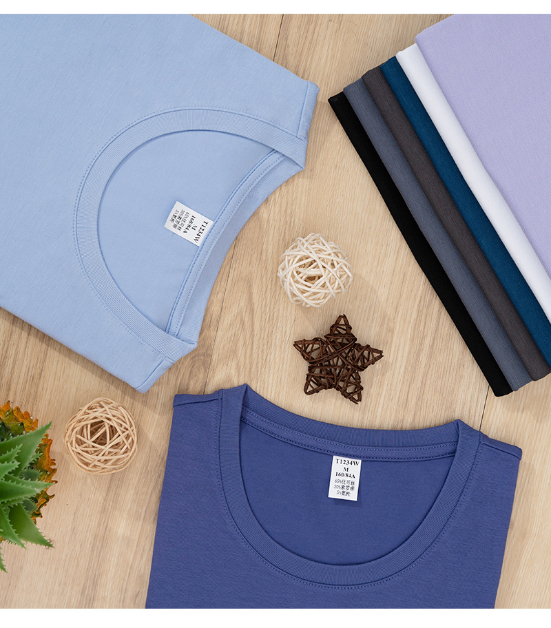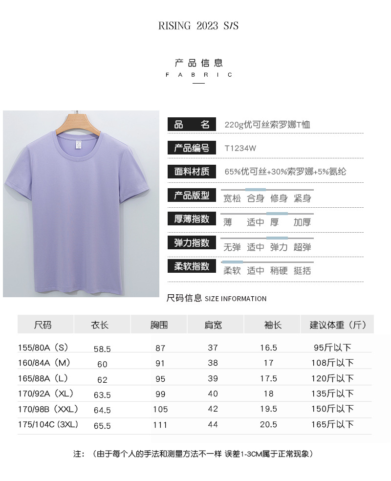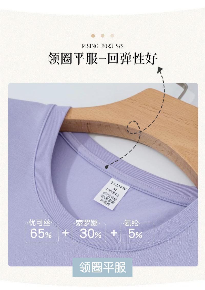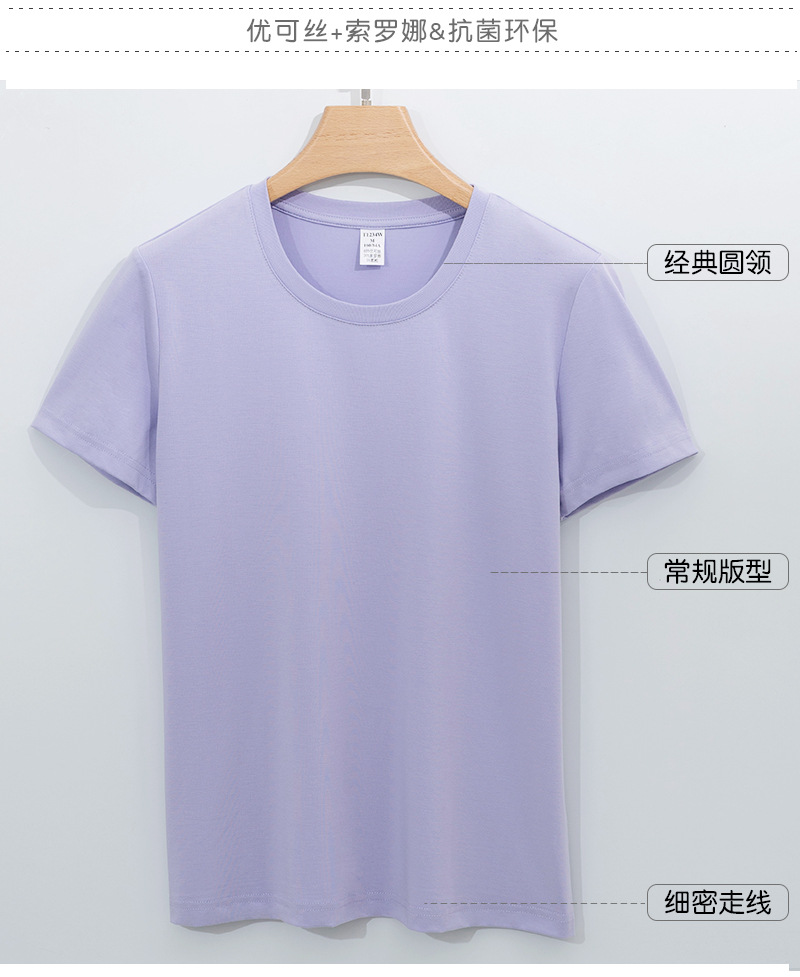 고급 유크 티셔츠 여성용 여름 솔로 나 반팔 라운드 넥 솔리드 컬러 220g 모달 풀오버 여성용 티셔츠스토어 가기