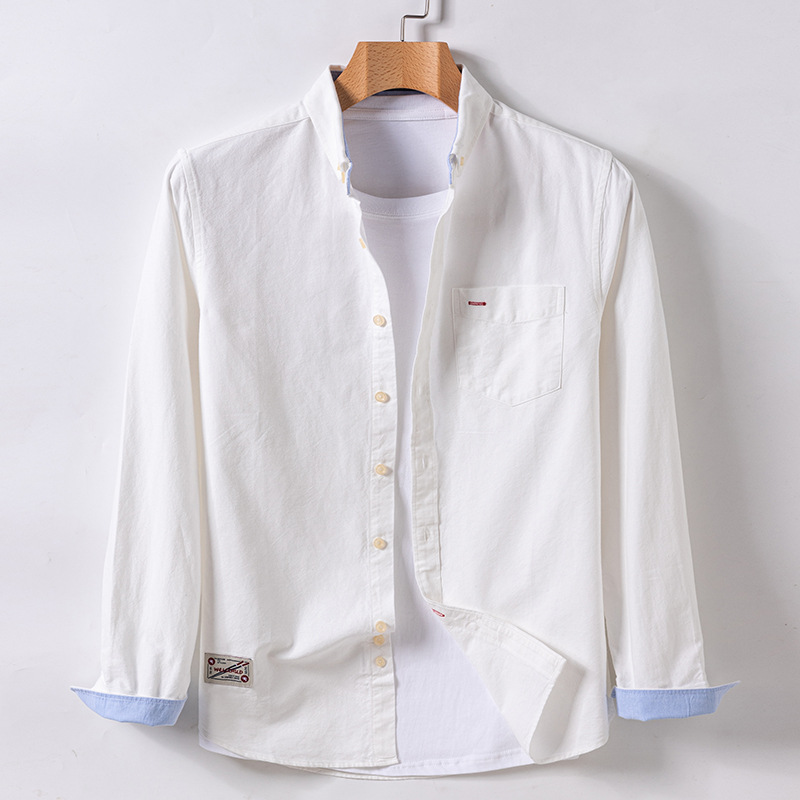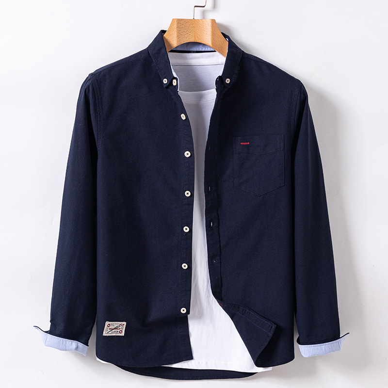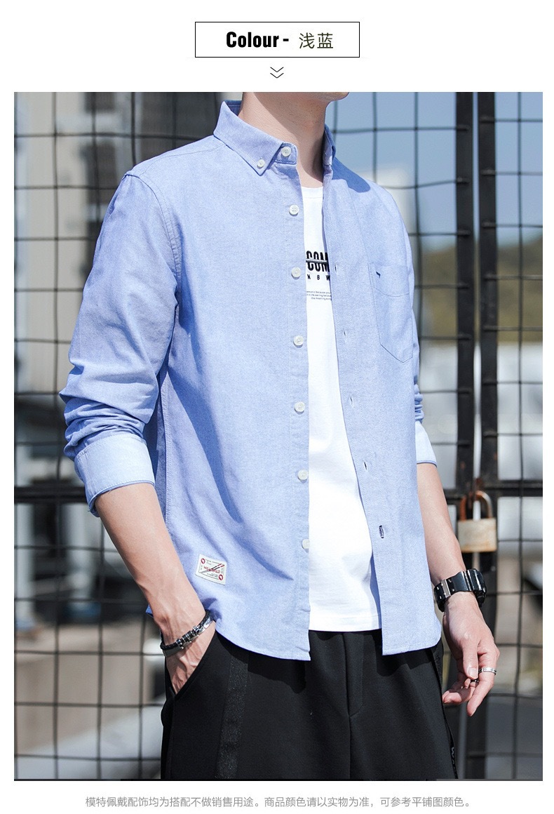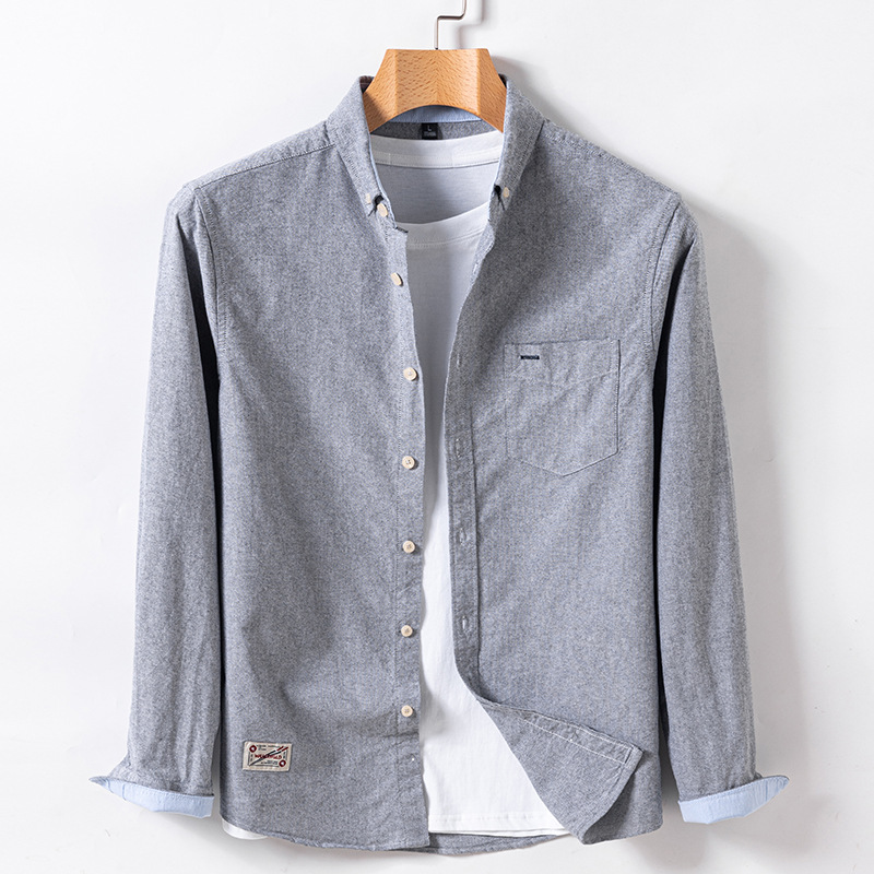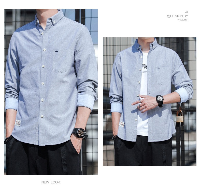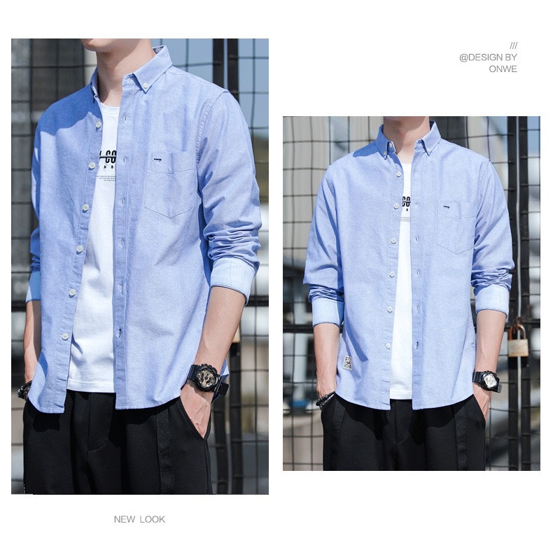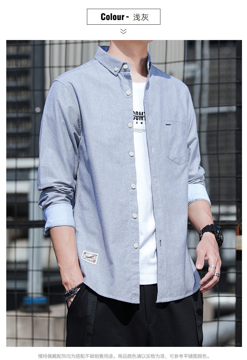 봄과 가을 남자의 순면 옥스포드 긴 소매 셔츠 캐주얼 순면 단색 셔츠 얇은 재킷 느슨한 유행스토어 가기