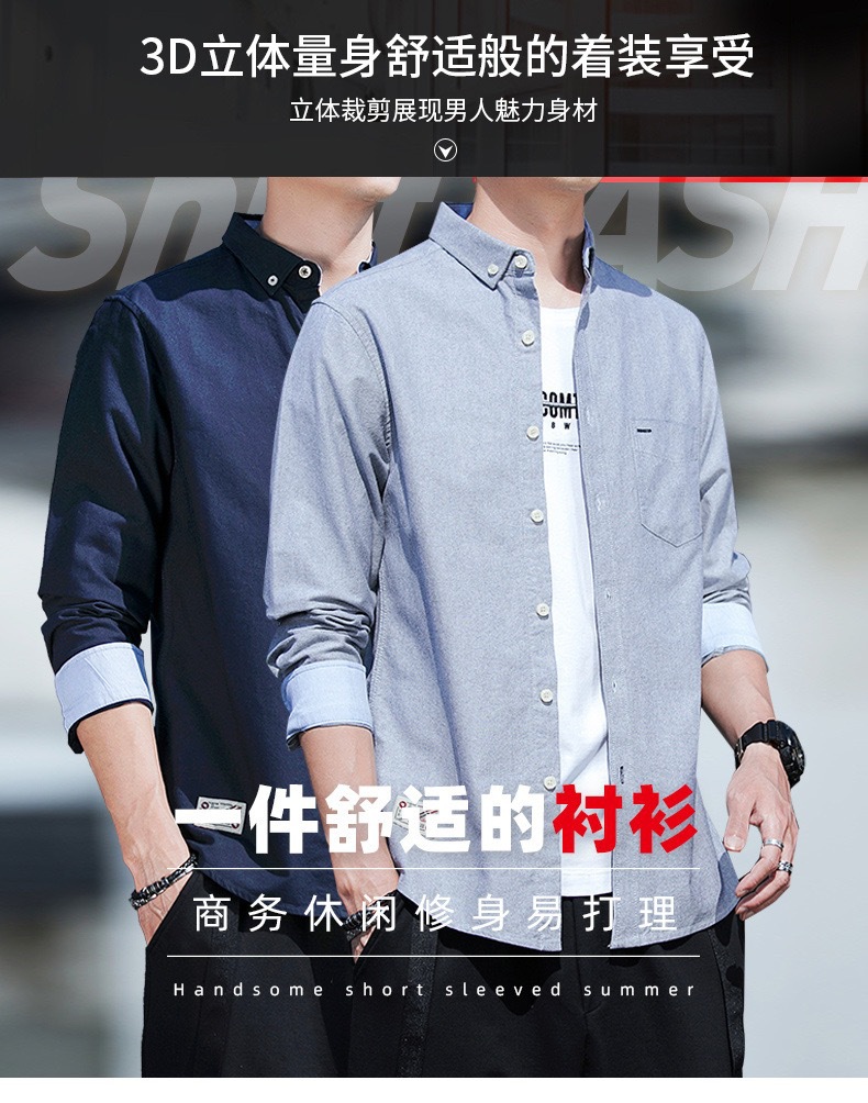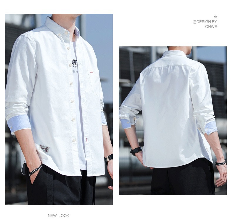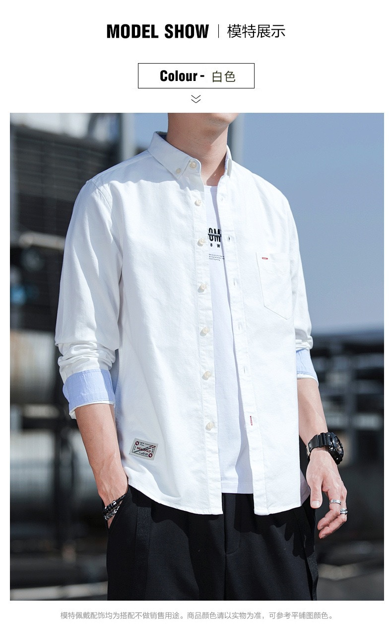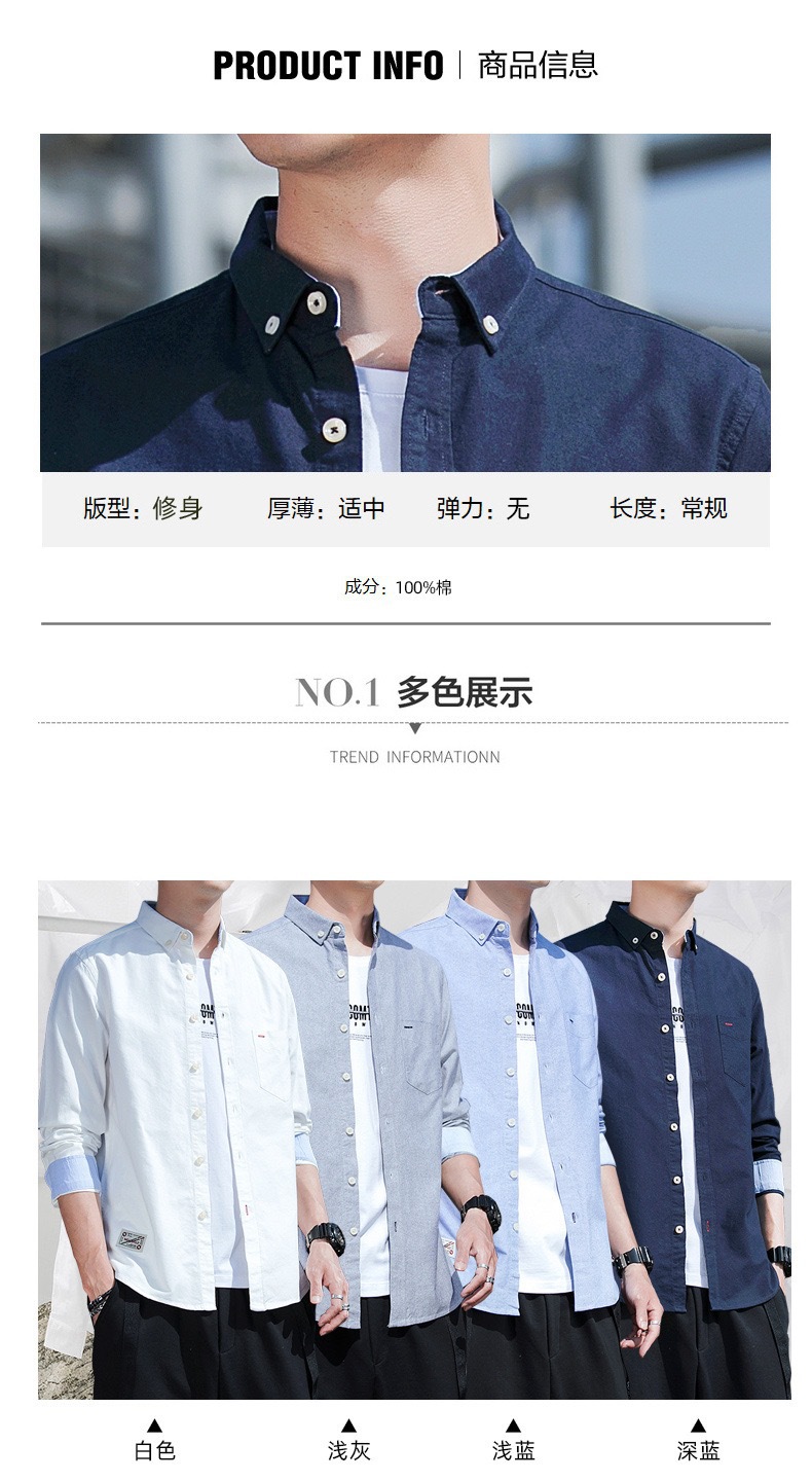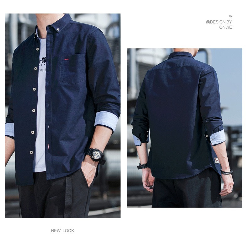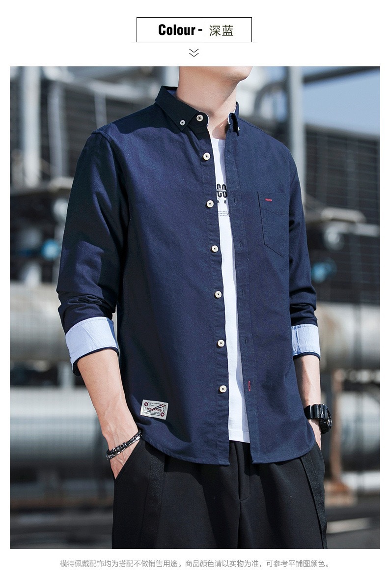 봄과 가을 남자의 순면 옥스포드 긴 소매 셔츠 캐주얼 순면 단색 셔츠 얇은 재킷 느슨한 유행스토어 가기