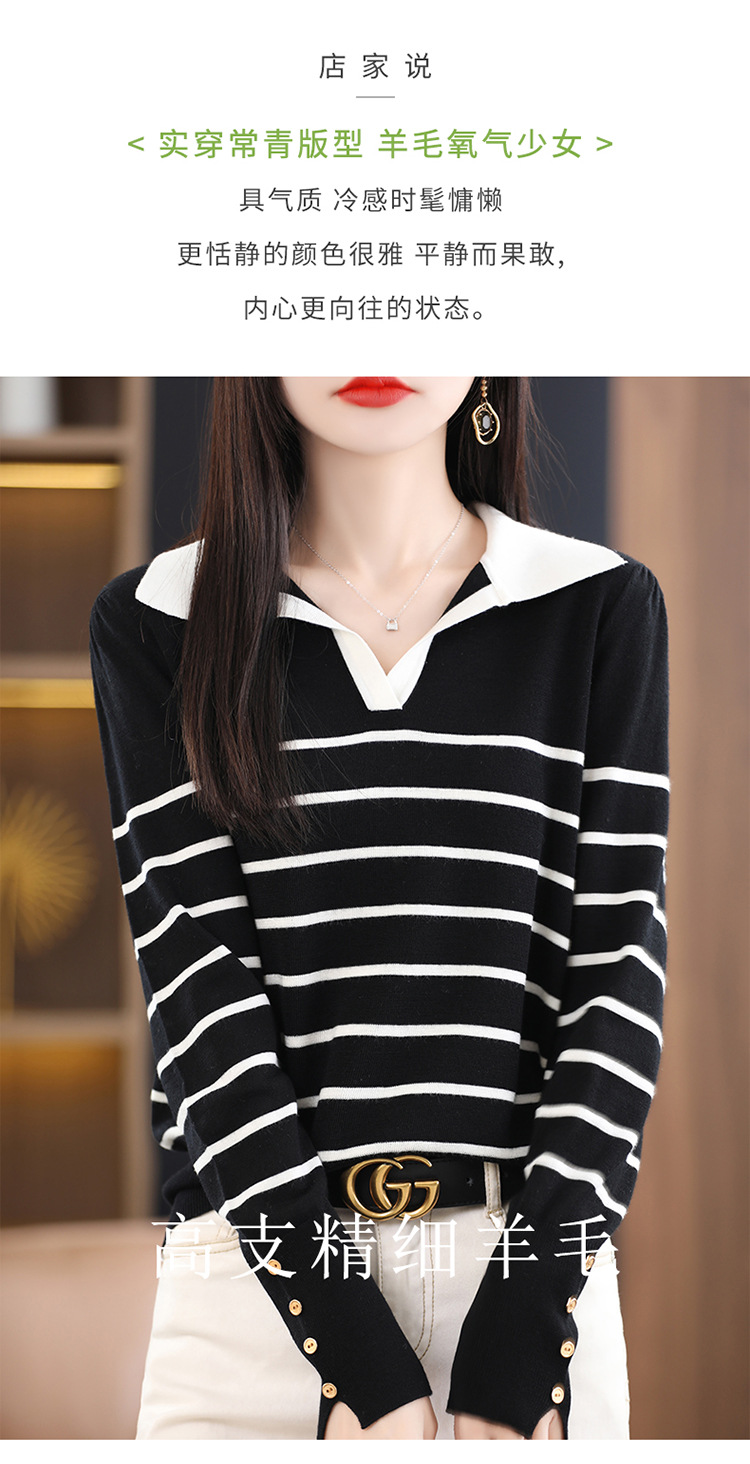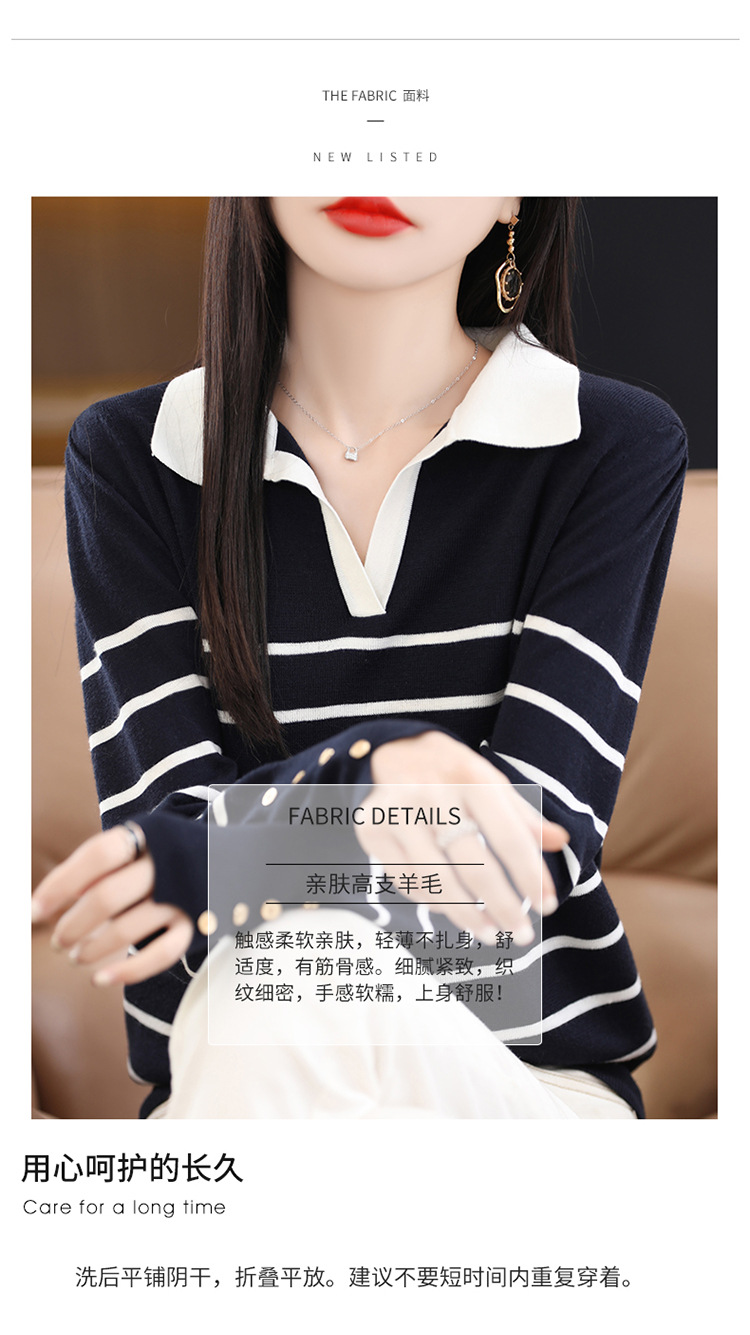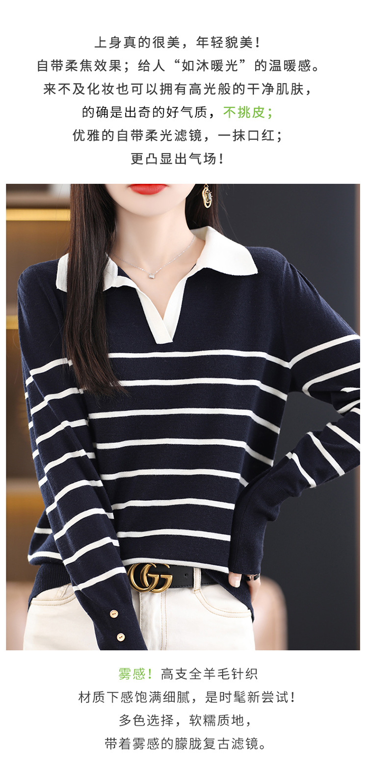 봄 2023 새로운 한국식 네이비 스타일 스웨터 스트라이프 에이지 감소 하프 오픈 칼라 울 스웨터 긴팔스토어 가기