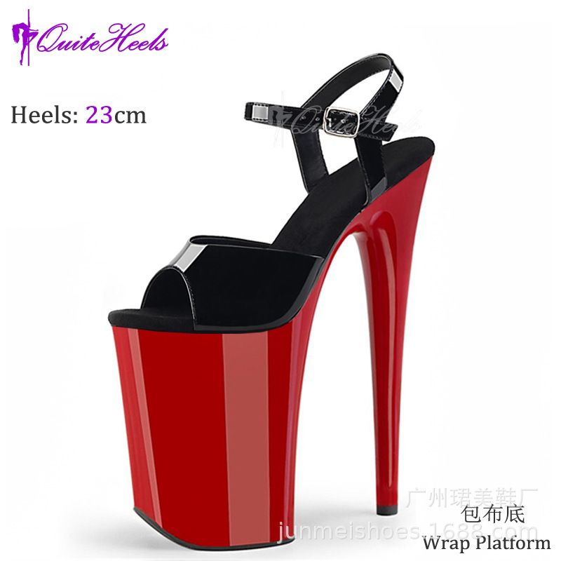 23cm 유럽 및 미국 스타일 섹시 방수 플랫폼 얇은 굽 하이힐 무대 신발 여성용 초고굽 모델 캣워크 샌들