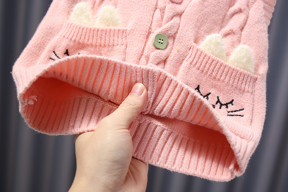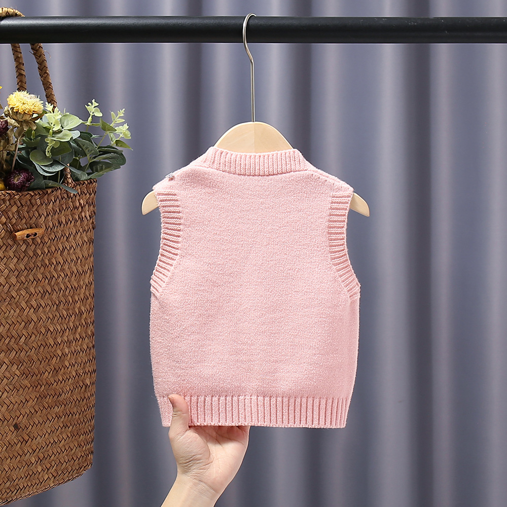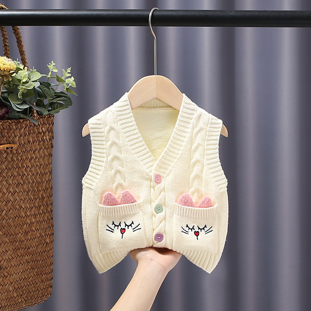 여자 니트 조끼 봄과 가을 겉옷 2024 아기 스웨터 아기 양모 조끼 아기 만화 스웨터 조끼스토어 가기