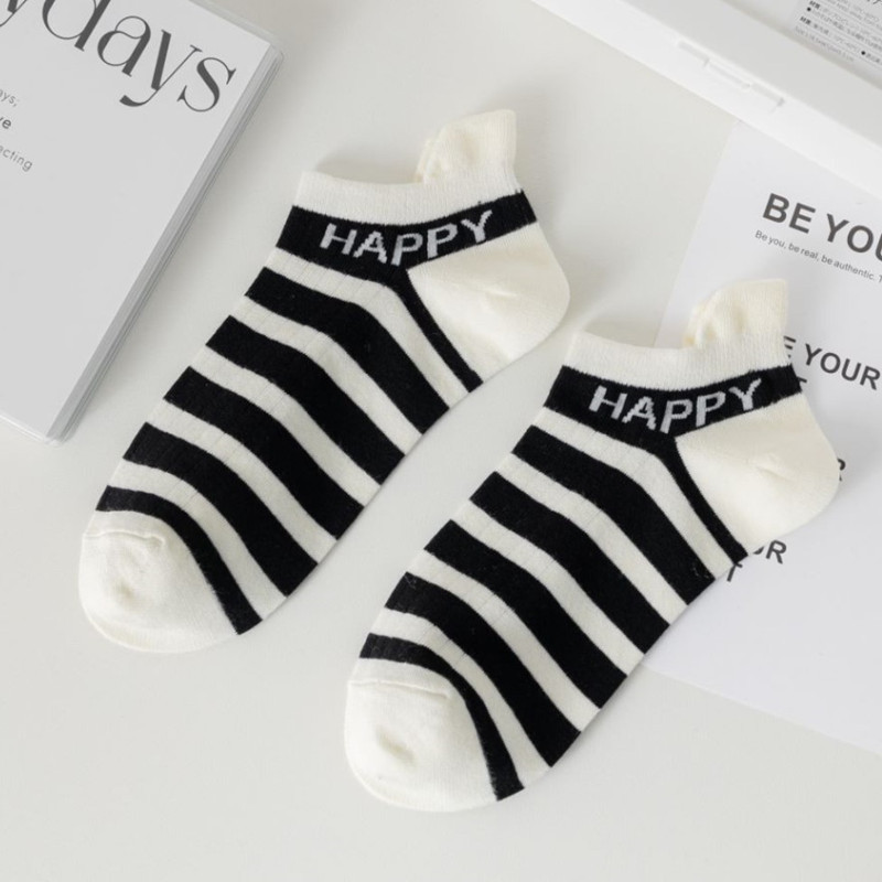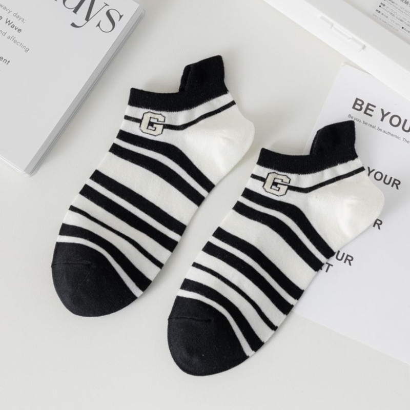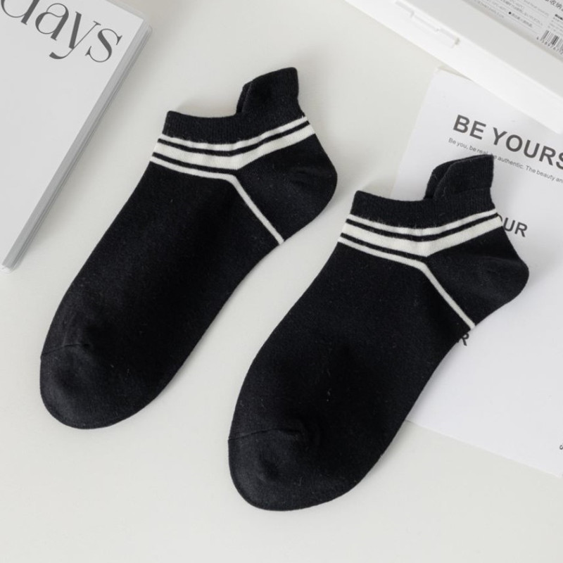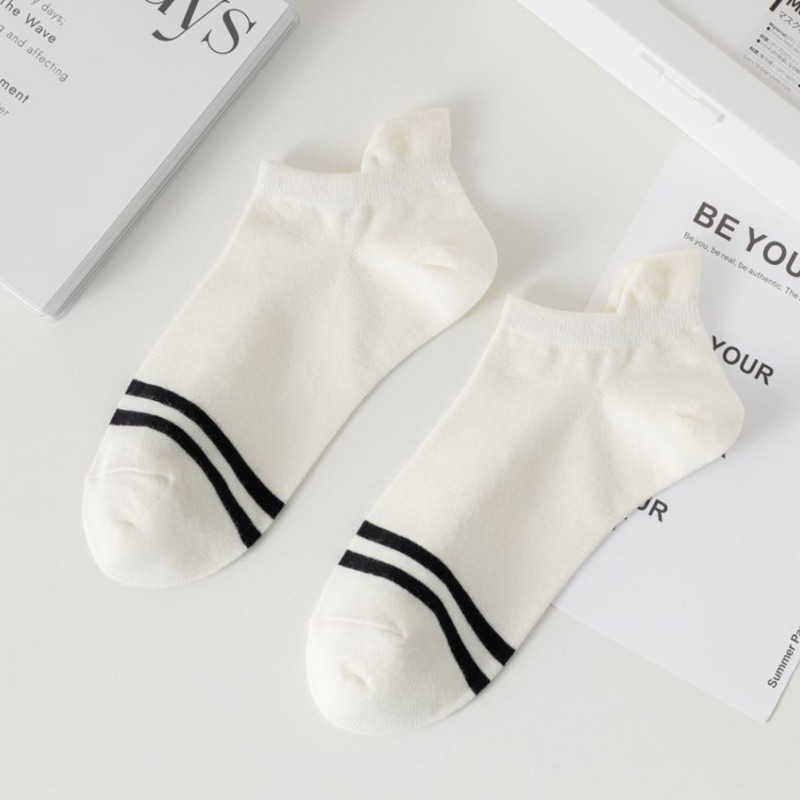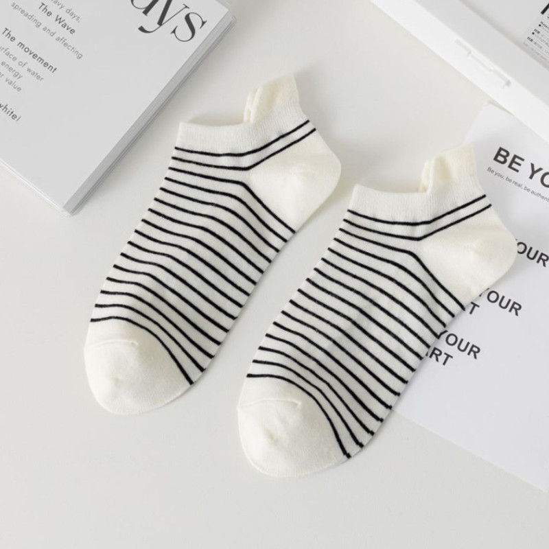 봄과 여름 양말 여성용 흑백 여성용 양말 일본식 얕은 입 여성용 스포츠 보트 양말 간단한 수평 통기성 얇은 여성용 양말