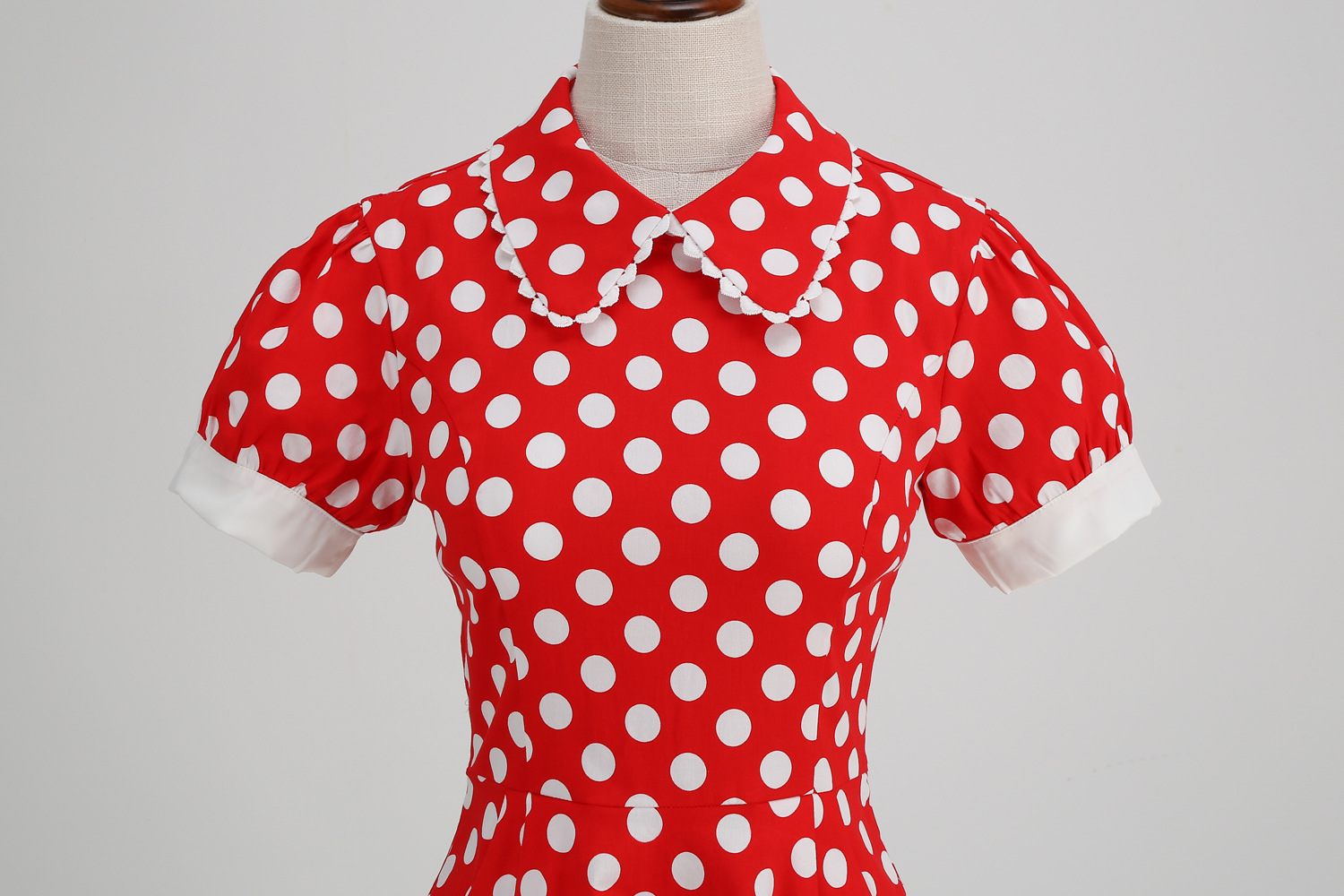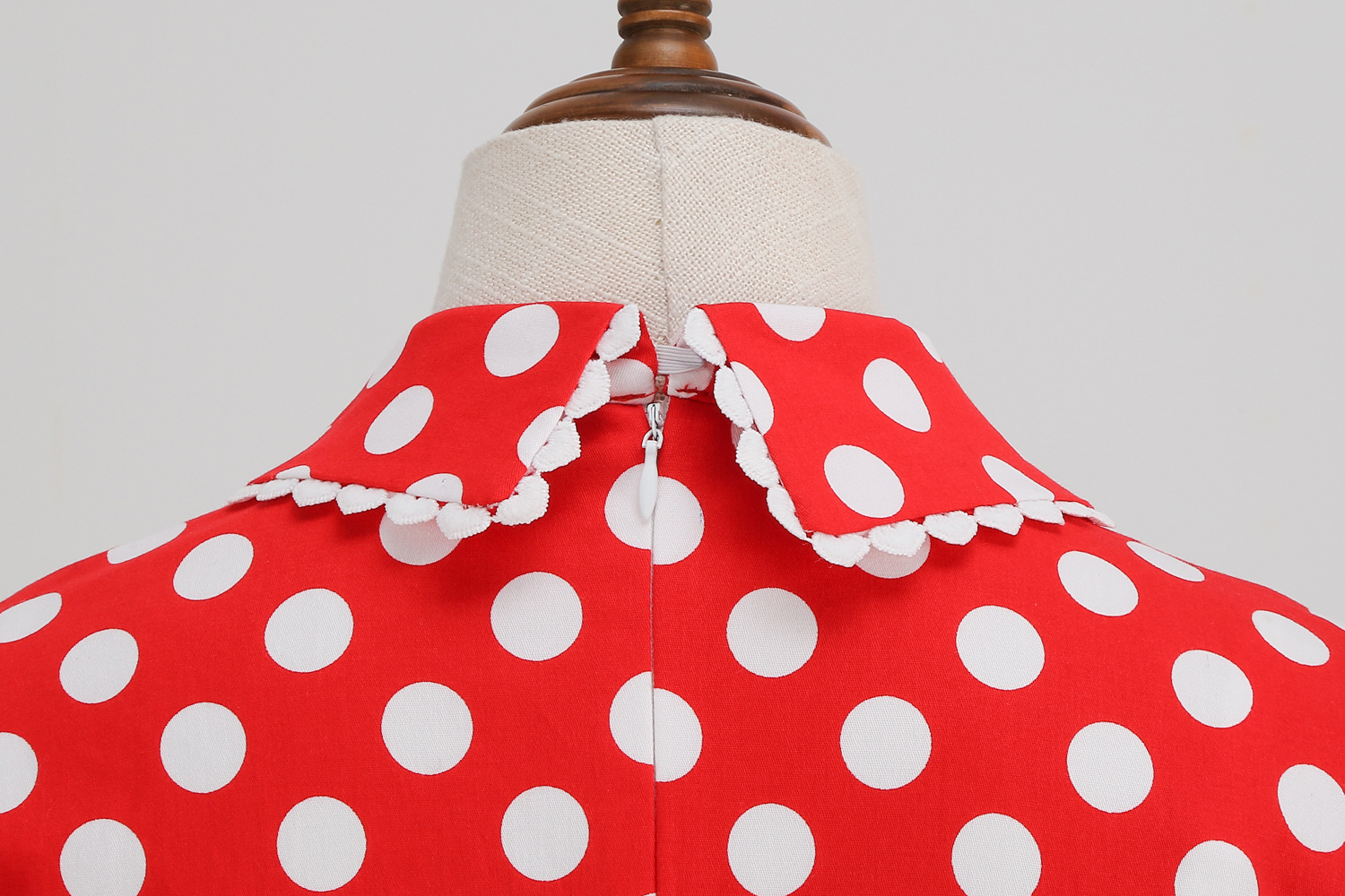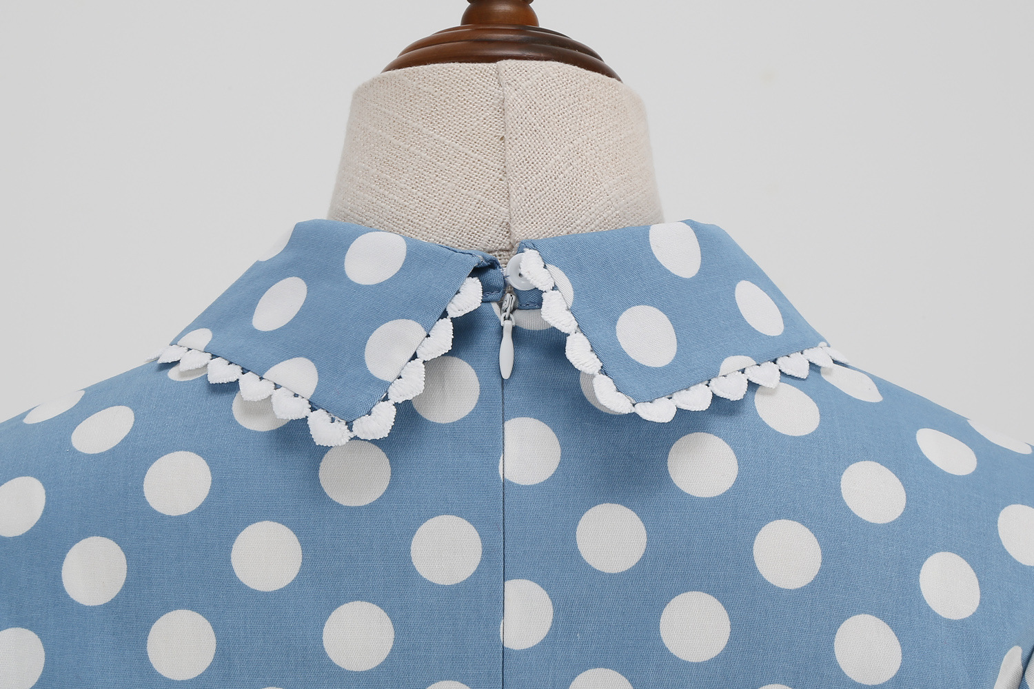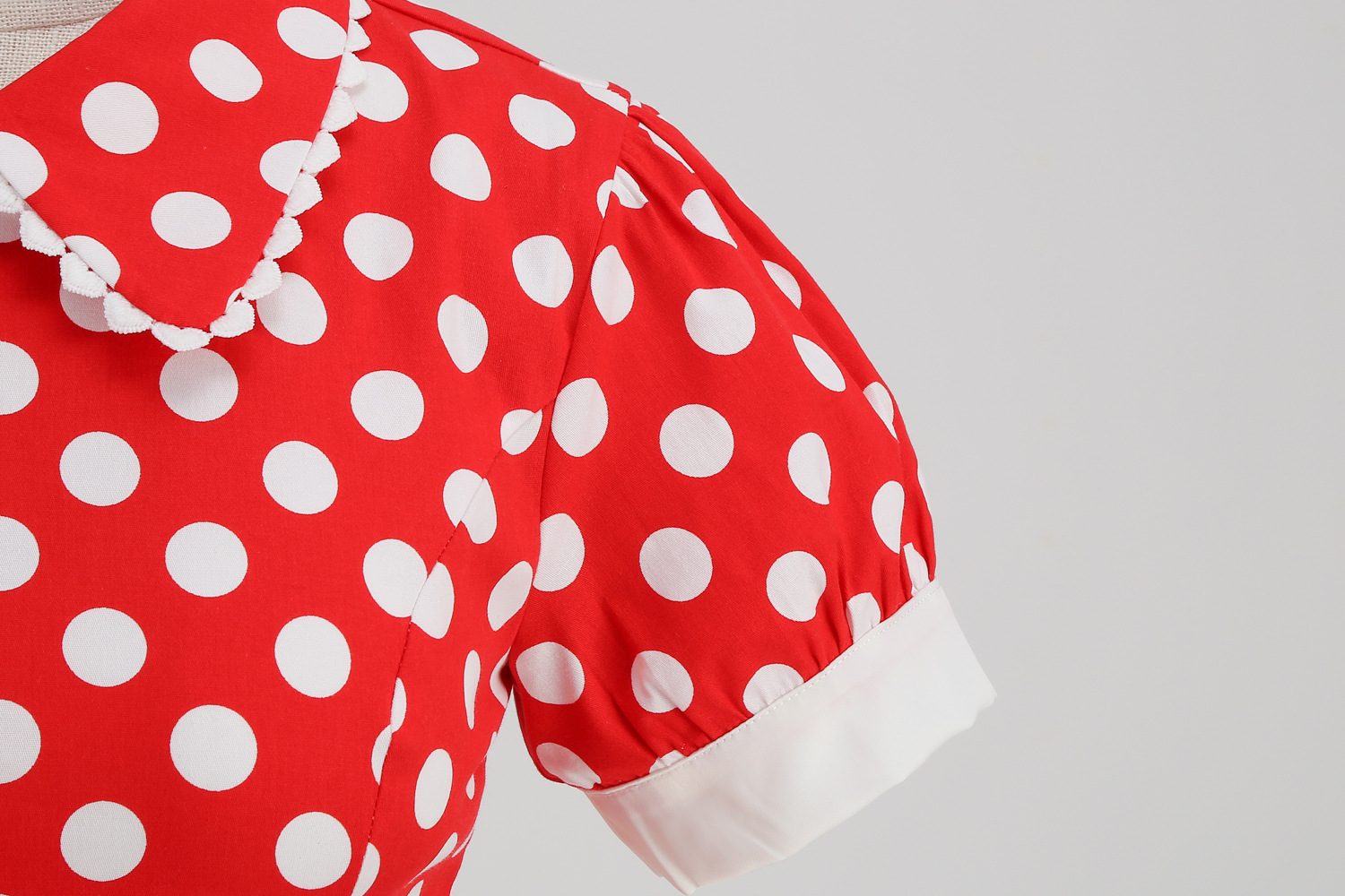 햅번 스타일 복고풍 코트 허리 꽉 웨이브 도트 인형 칼라 레이스 빛 원피스 반팔 의상 대형 원피스 여성스토어 가기