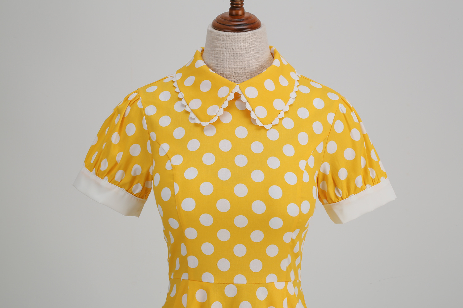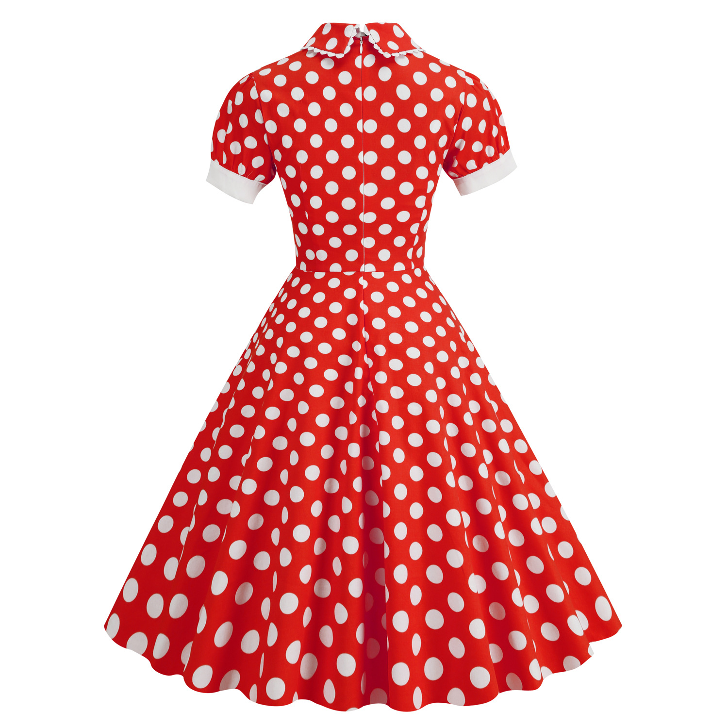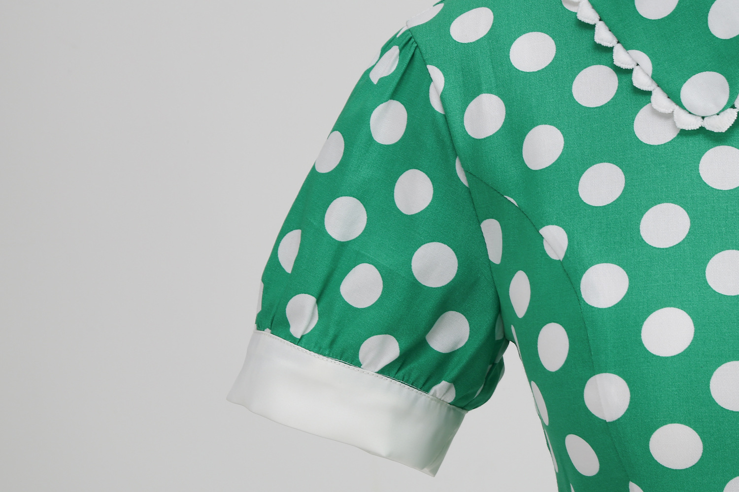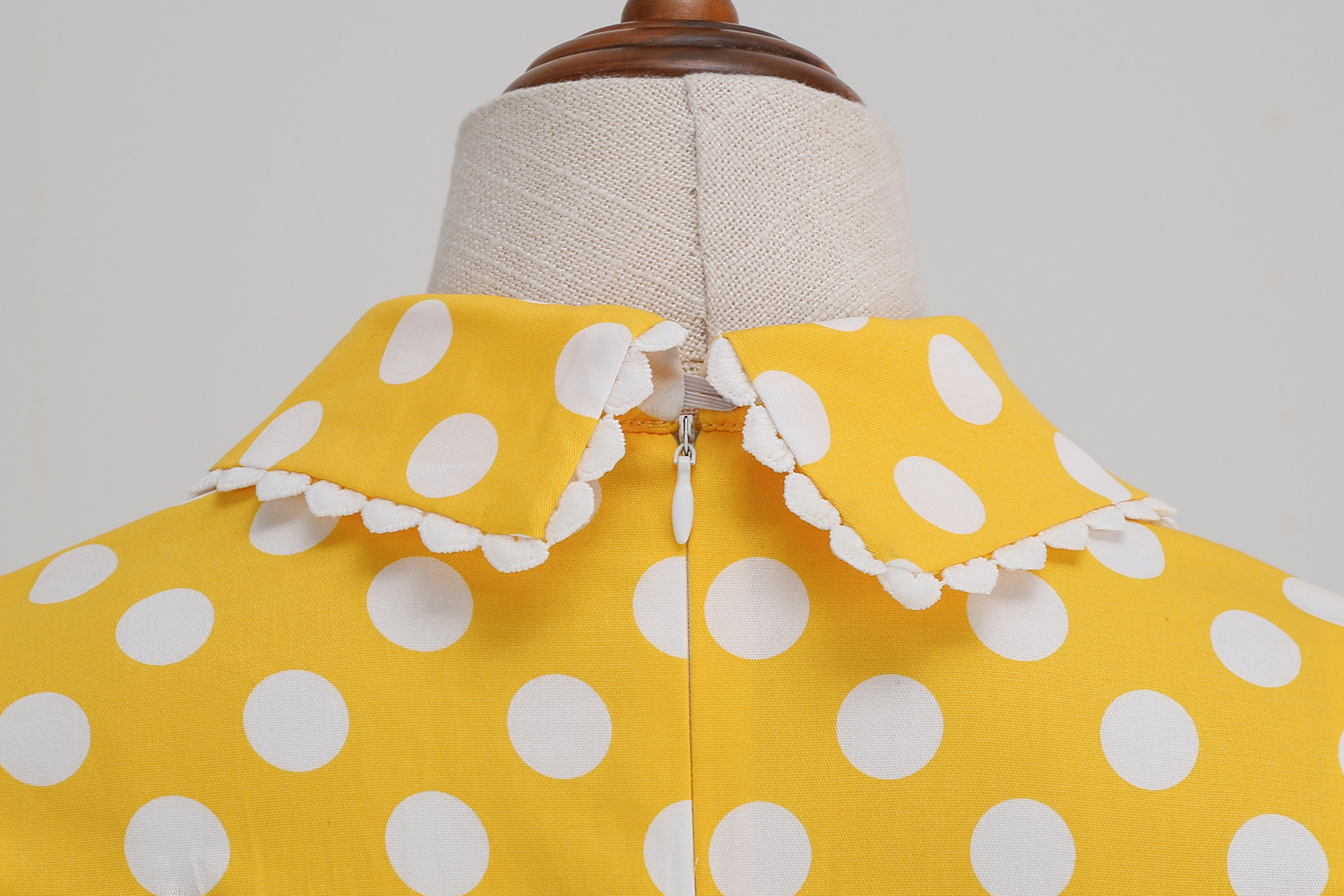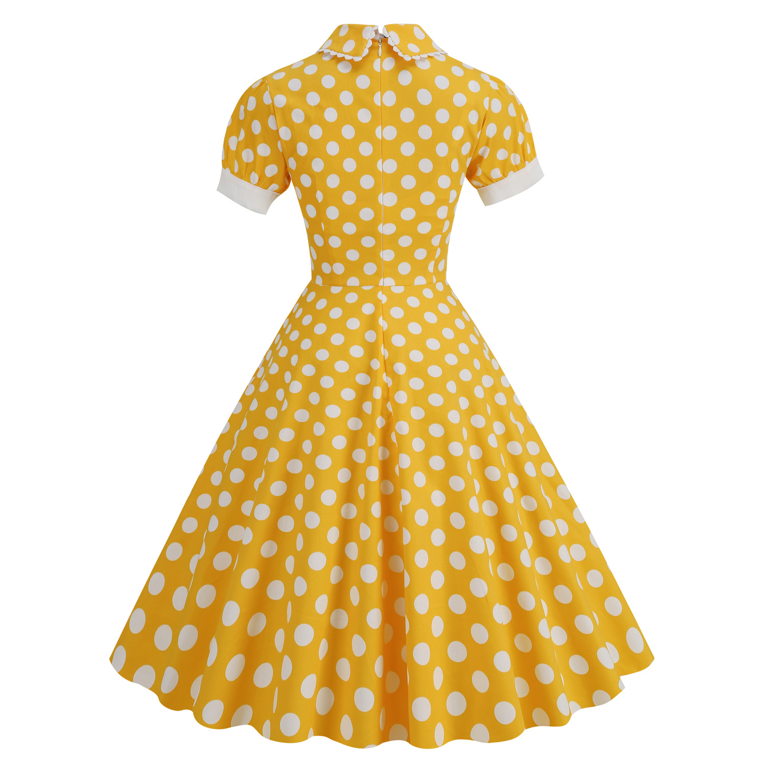 햅번 스타일 복고풍 코트 허리 꽉 웨이브 도트 인형 칼라 레이스 빛 원피스 반팔 의상 대형 원피스 여성스토어 가기