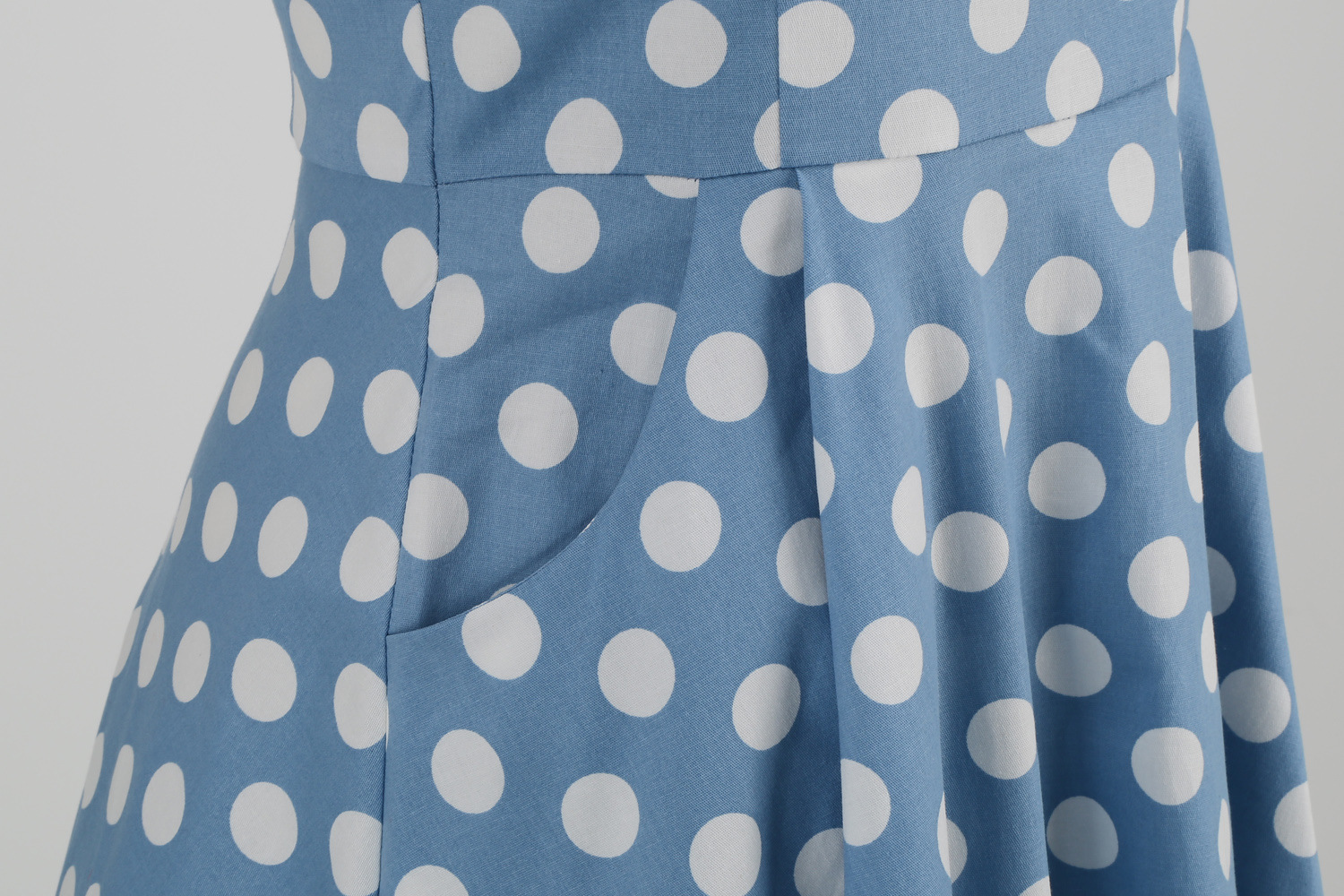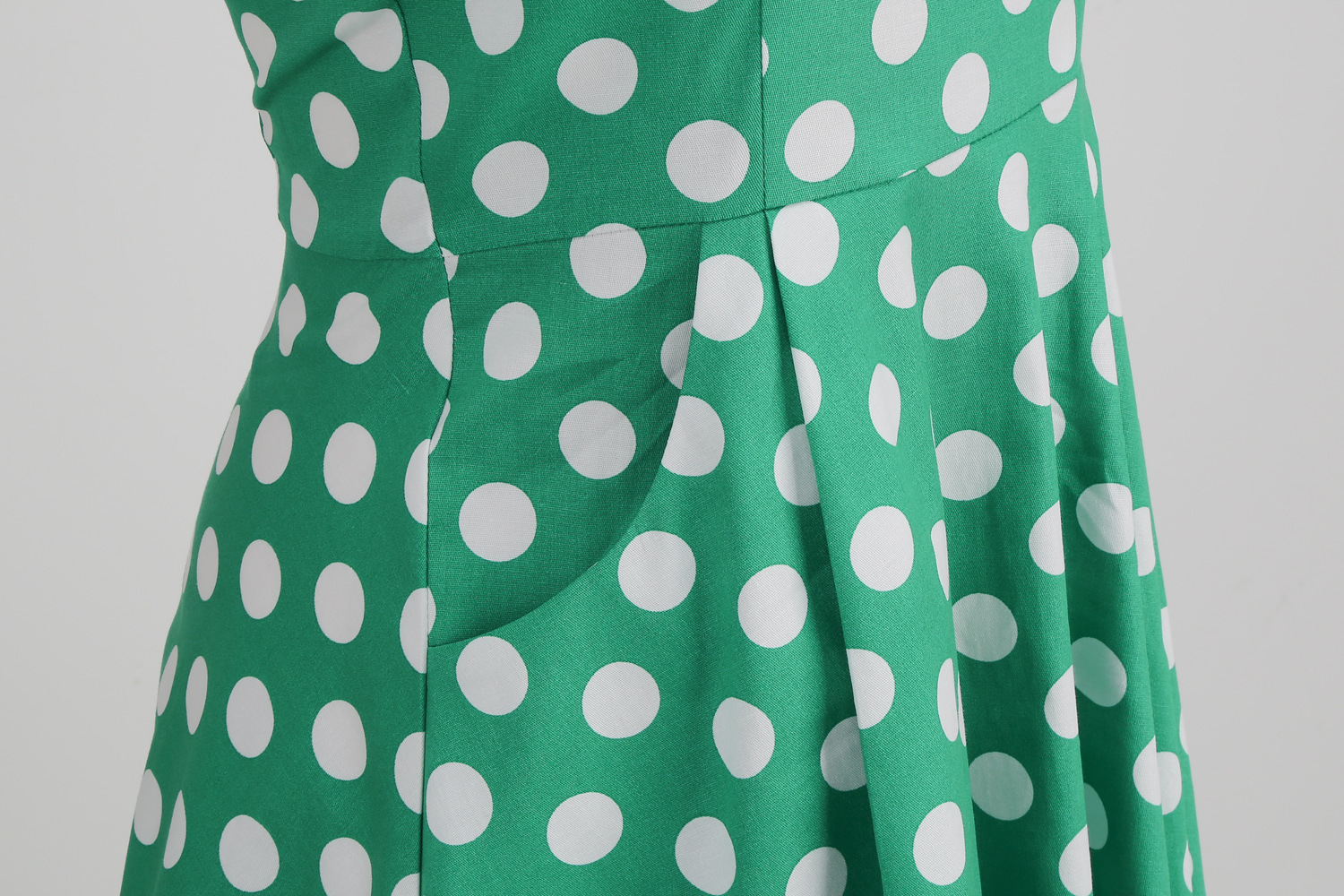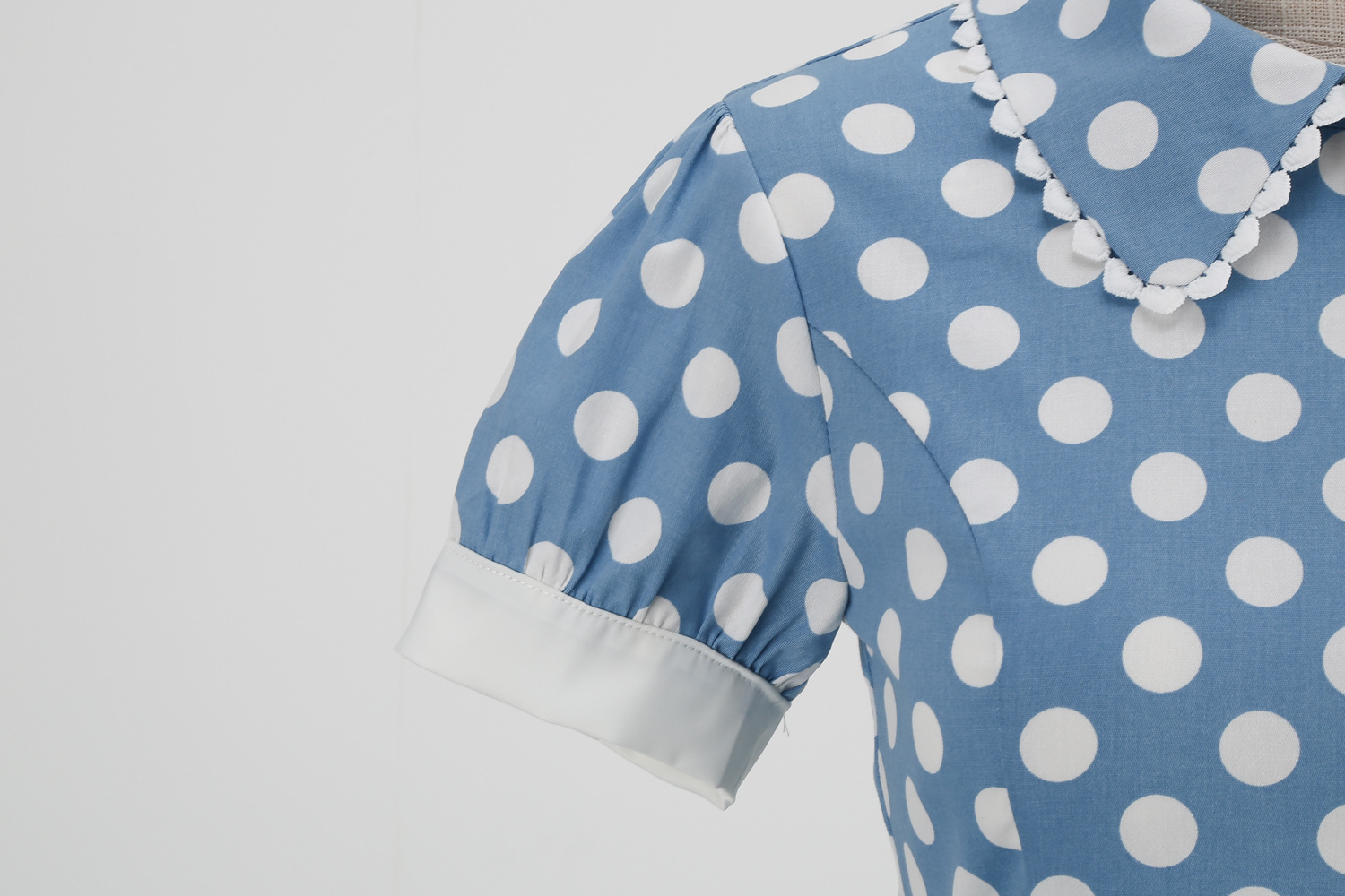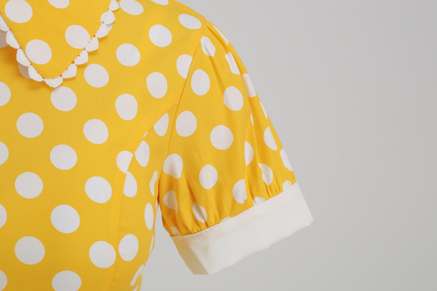 햅번 스타일 복고풍 코트 허리 꽉 웨이브 도트 인형 칼라 레이스 빛 원피스 반팔 의상 대형 원피스 여성스토어 가기