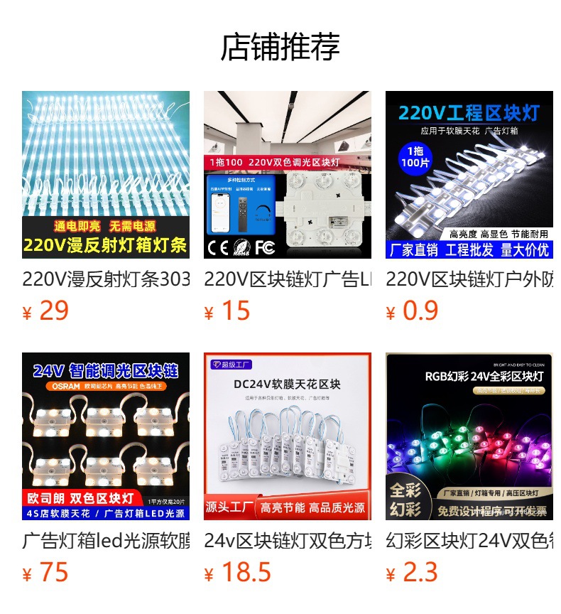 Led 블록 체인 램프 광고 라이트 박스 소프트 필름 천장 모듈 광원 220V 확산 반사 라이트 바 고전압 블록 램프스토어 가기