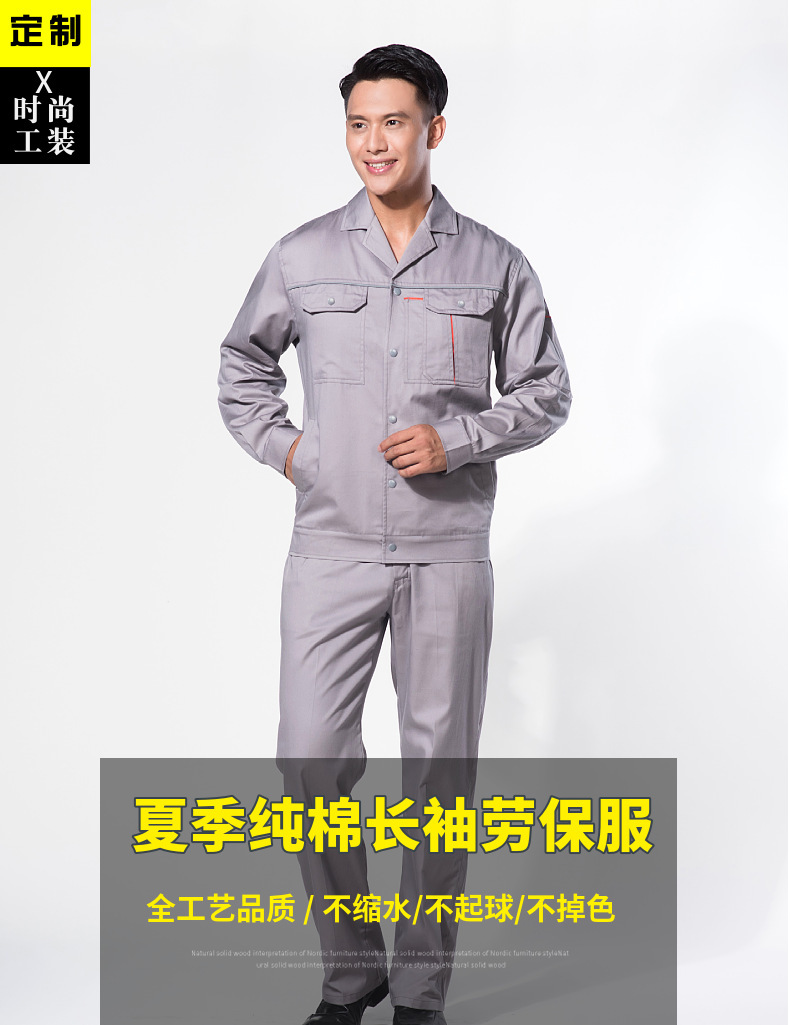 도매 여름 긴팔 순수 면화 노동 보호 작업복 정장 그리드 용접 작업복 얇은 물류 작업장 인쇄 및 자수스토어 가기