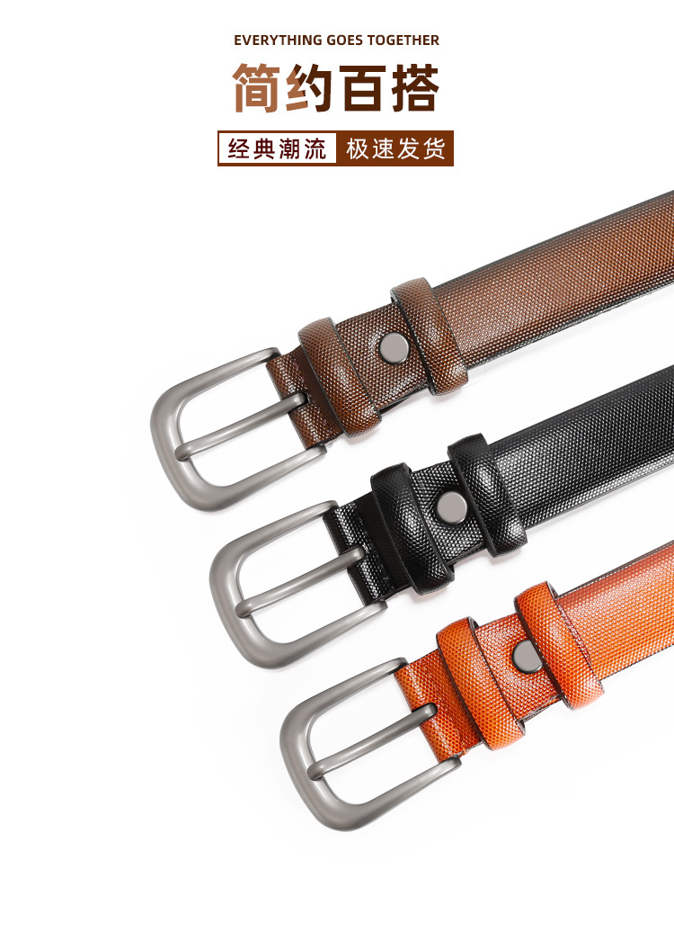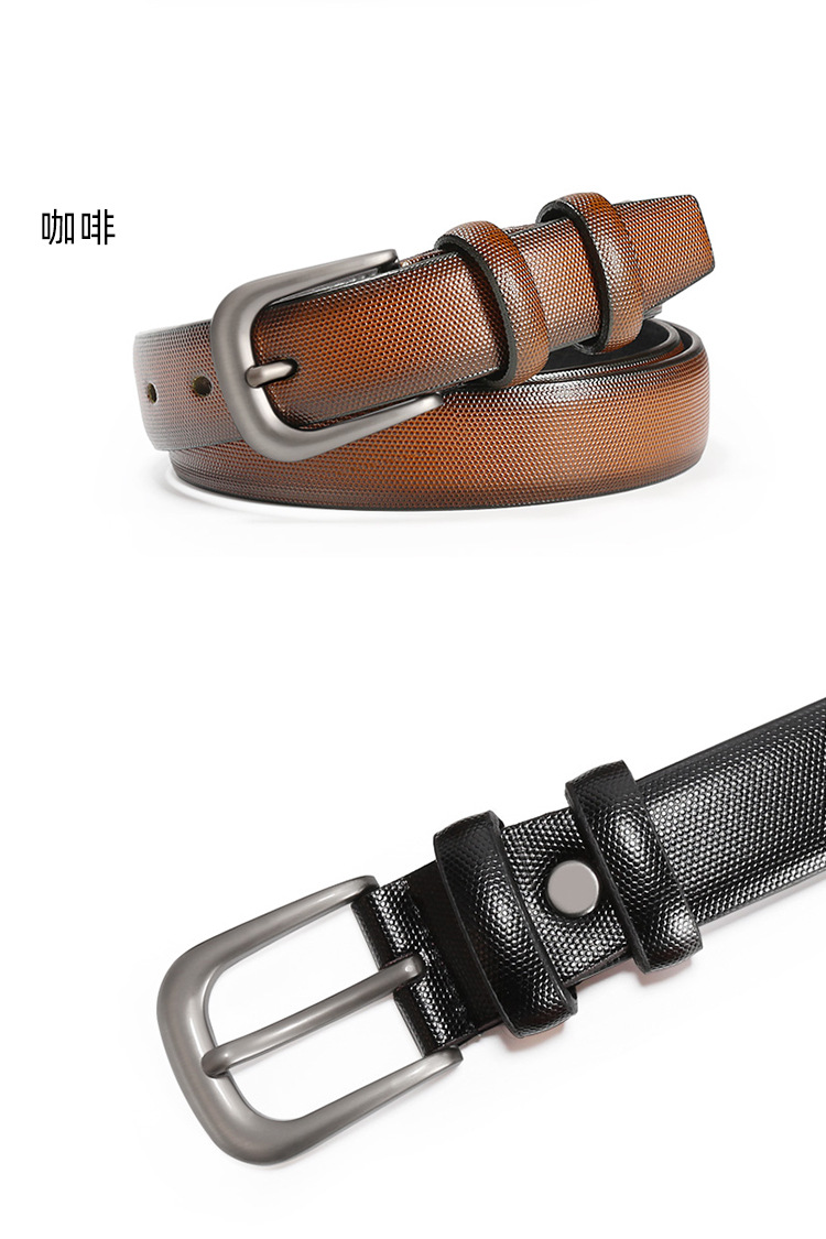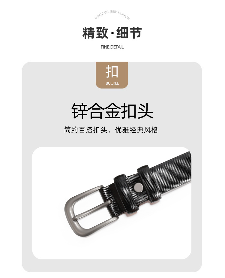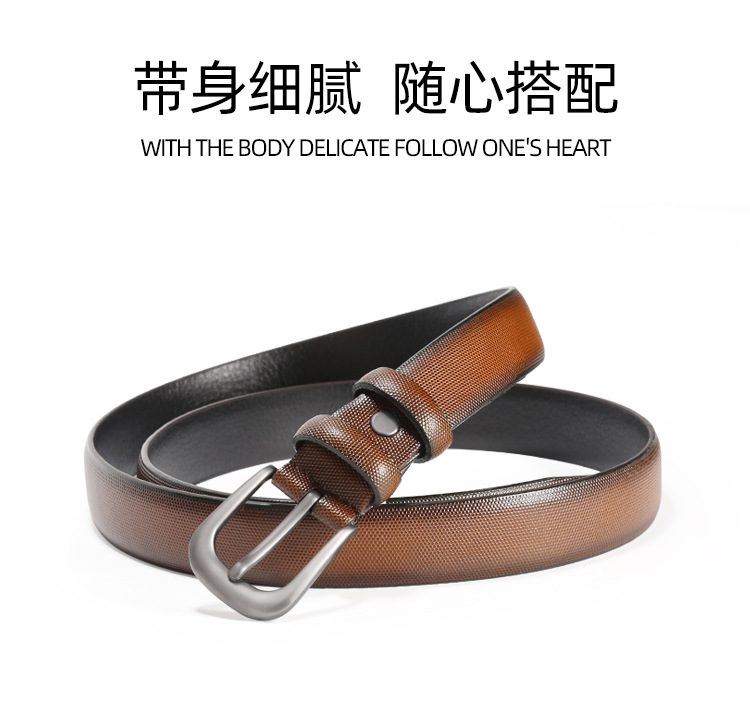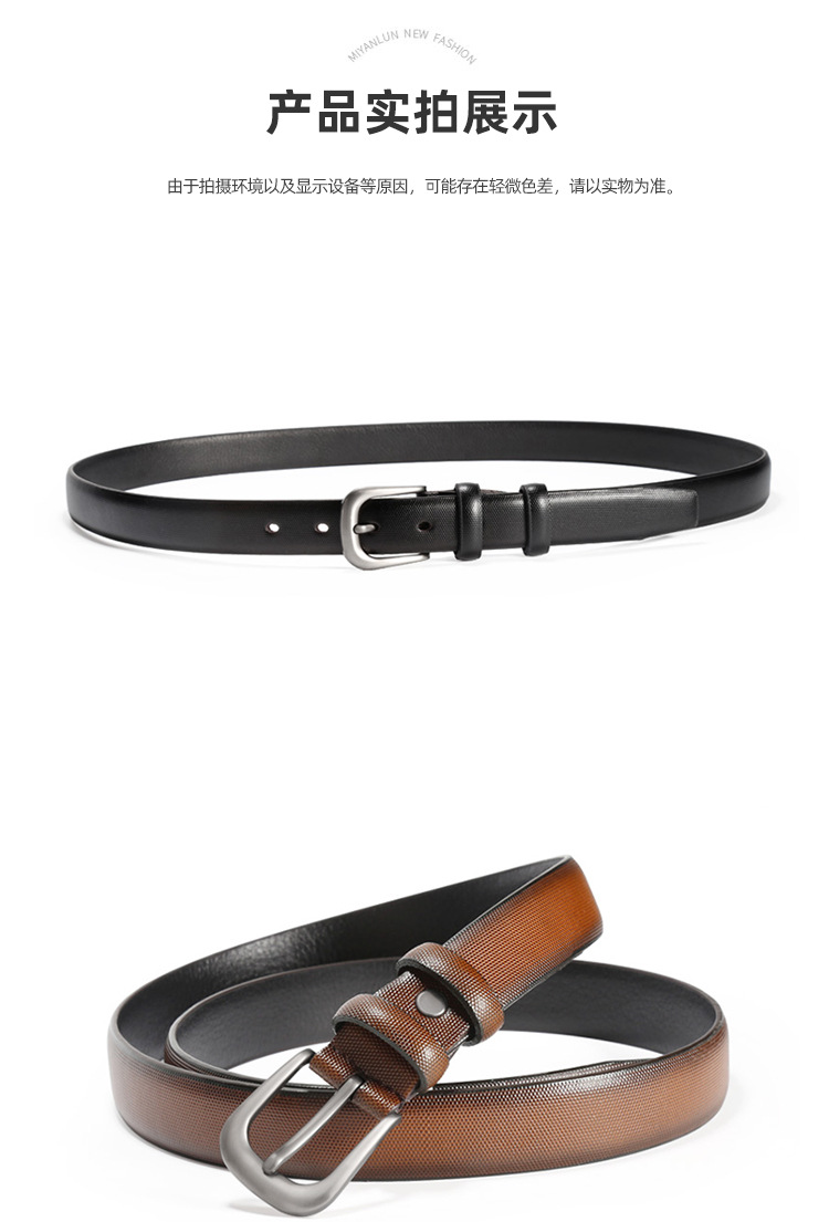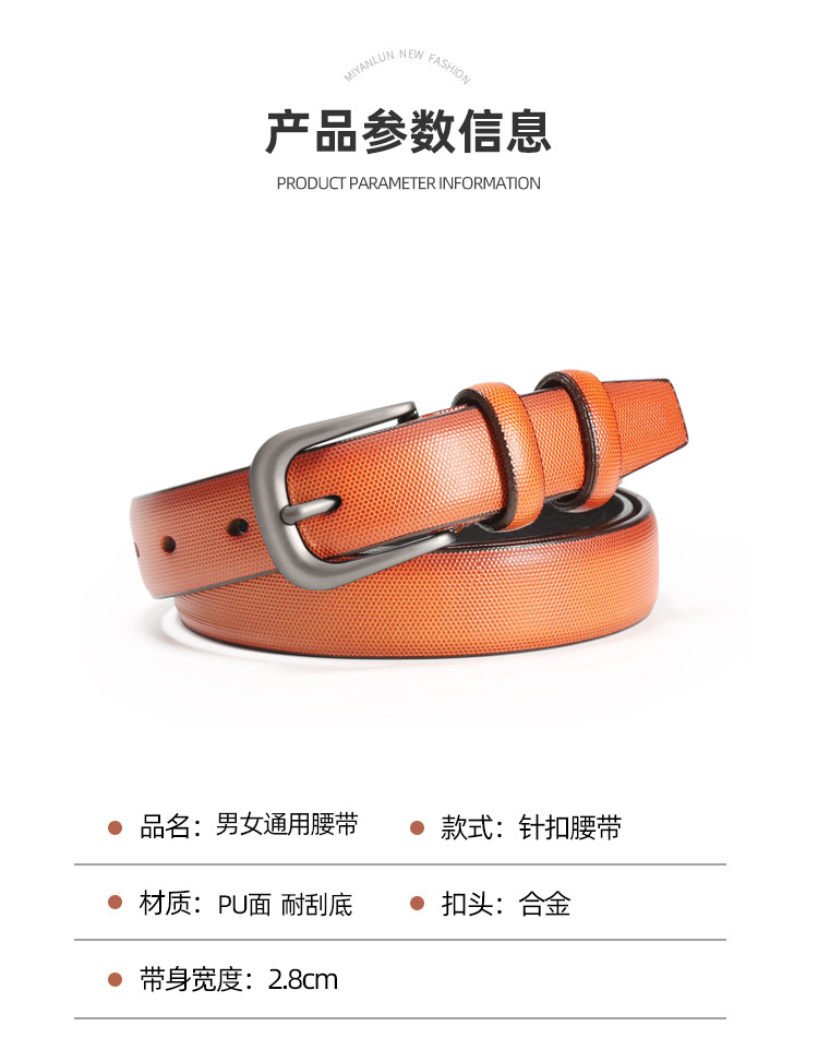 남여 공용 핀 버클 벨트 얇은 바지 벨트 PU 스크래치 방지 바닥 합금 버클 웨이브 포인트 캐주얼 패션 벨트