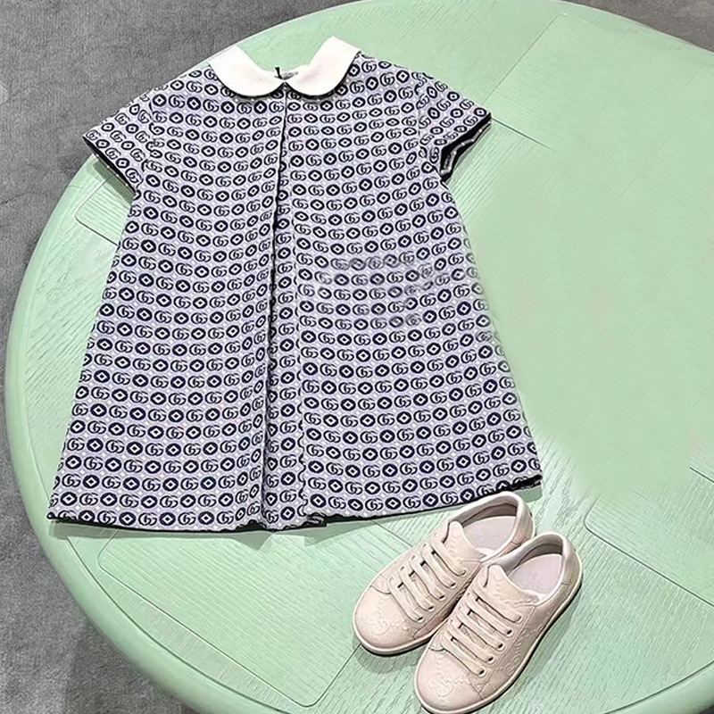 [재고] 2024 봄 조수 브랜드 높은 세팅 아동복 g 홈 전체 인쇄 편지 원피스 부모-자식 의류스토어 가기