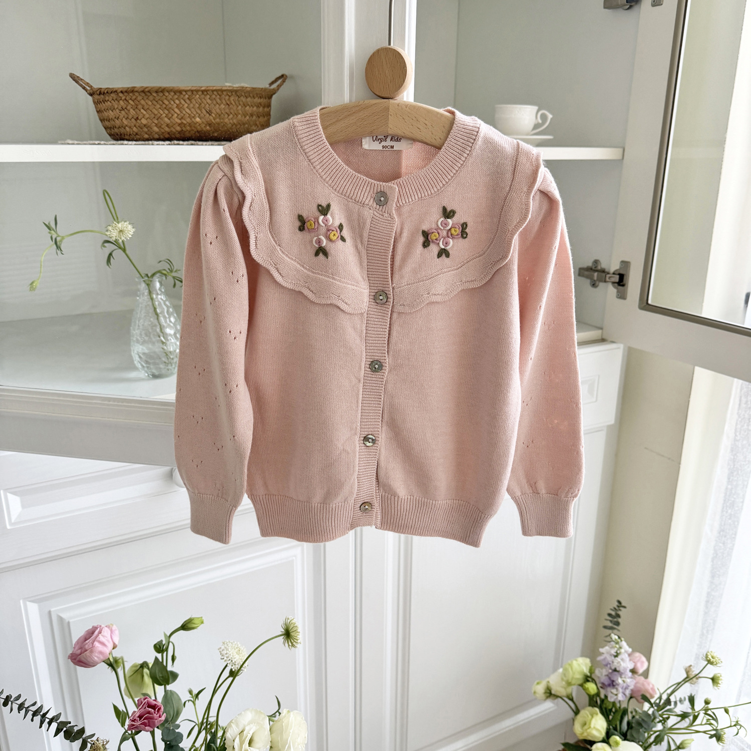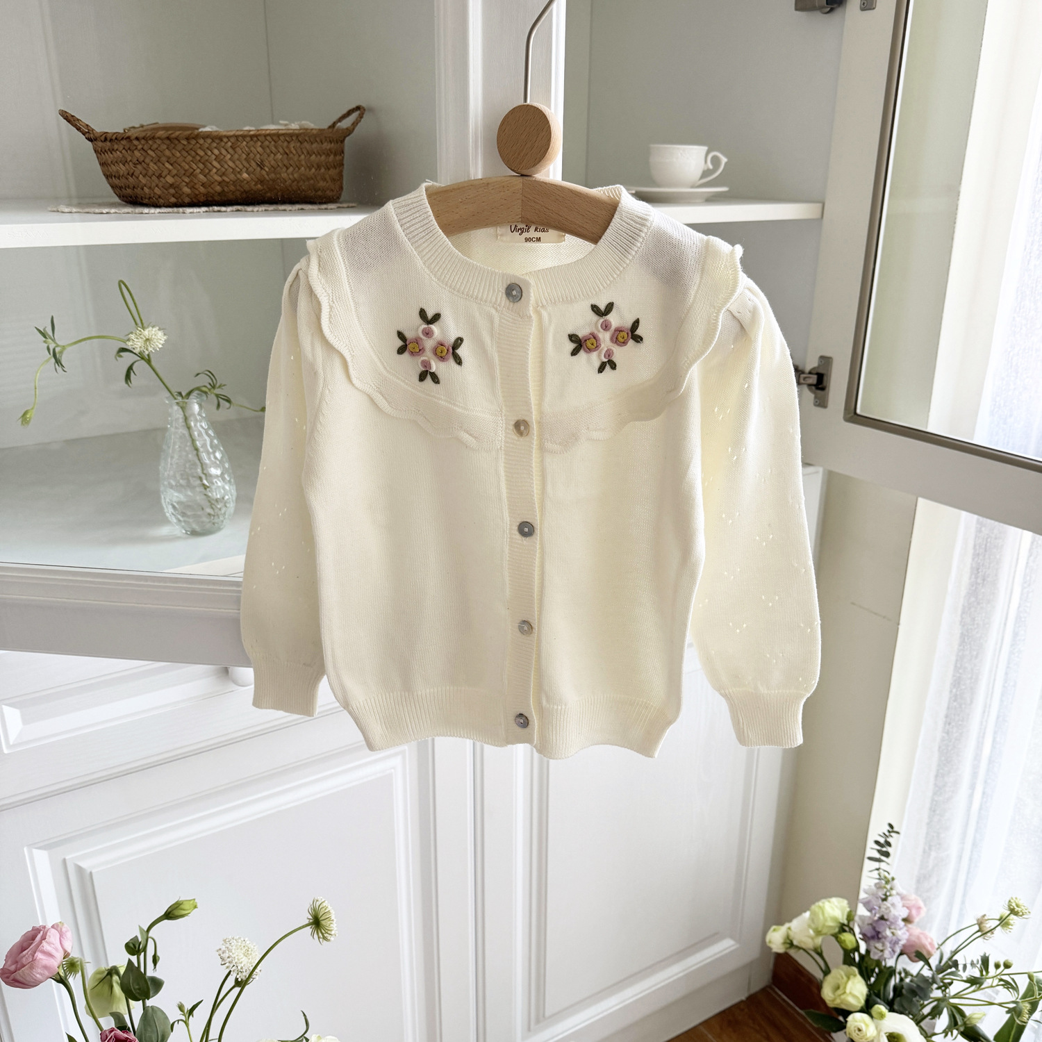 봄 소녀 니트 가디건 어린이 목가적 인 손으로 수 놓은 스웨터 아기 소녀 달콤한 니트 자켓
