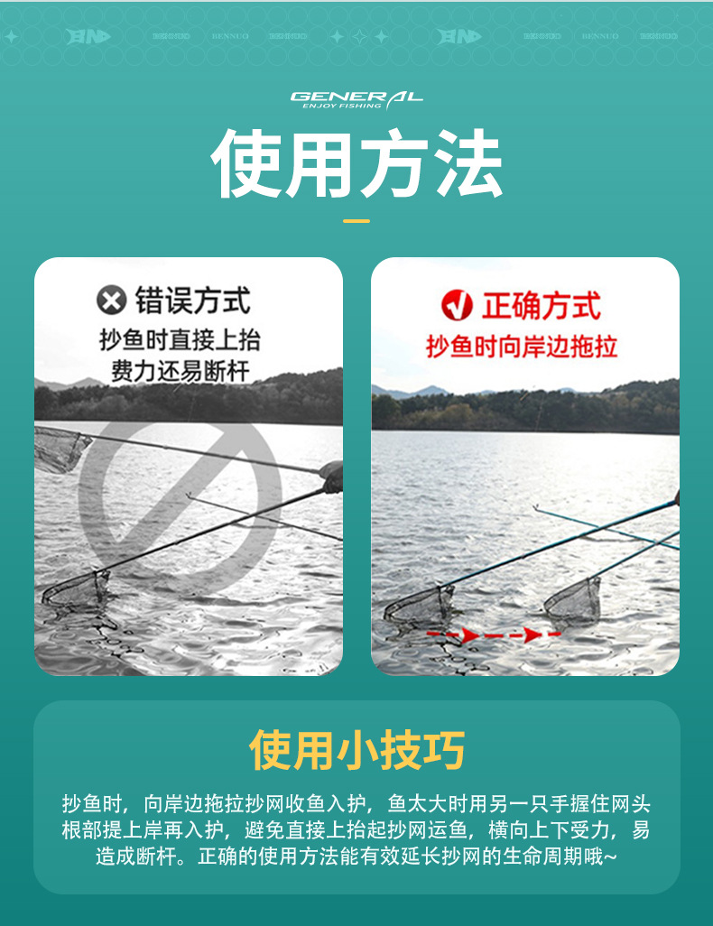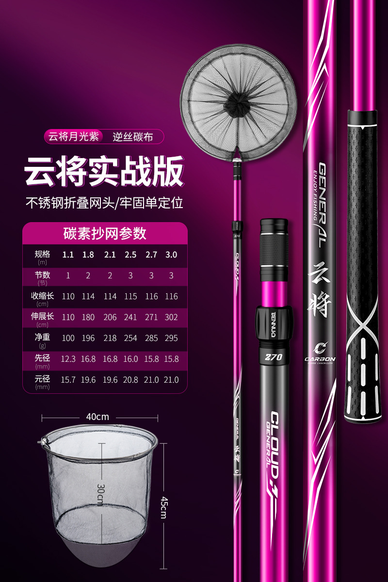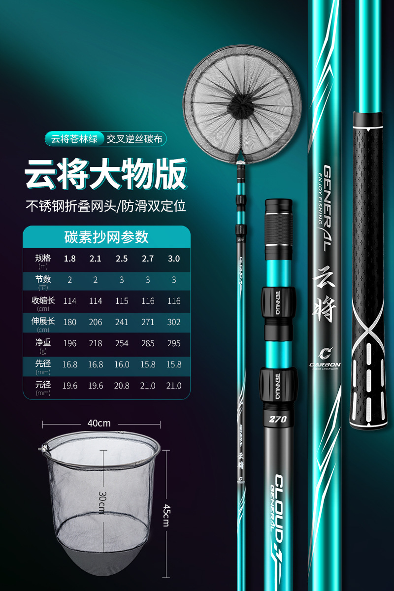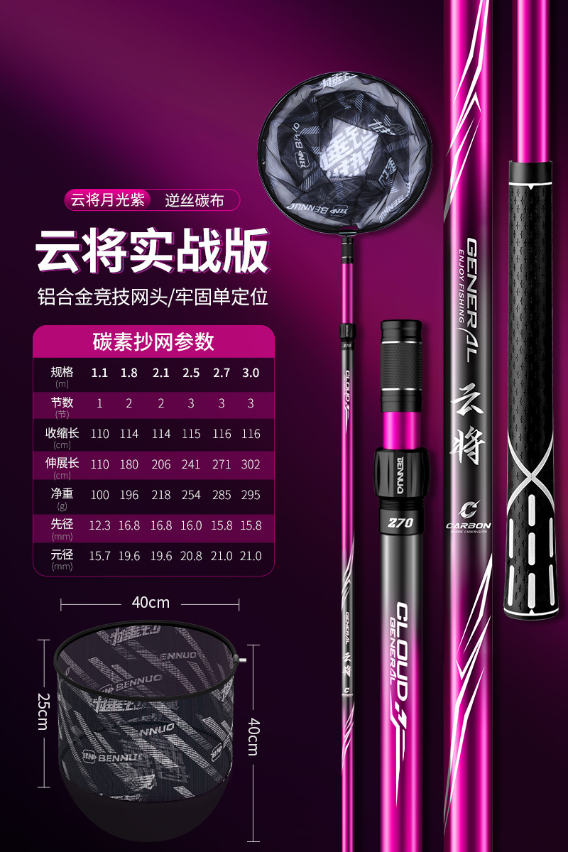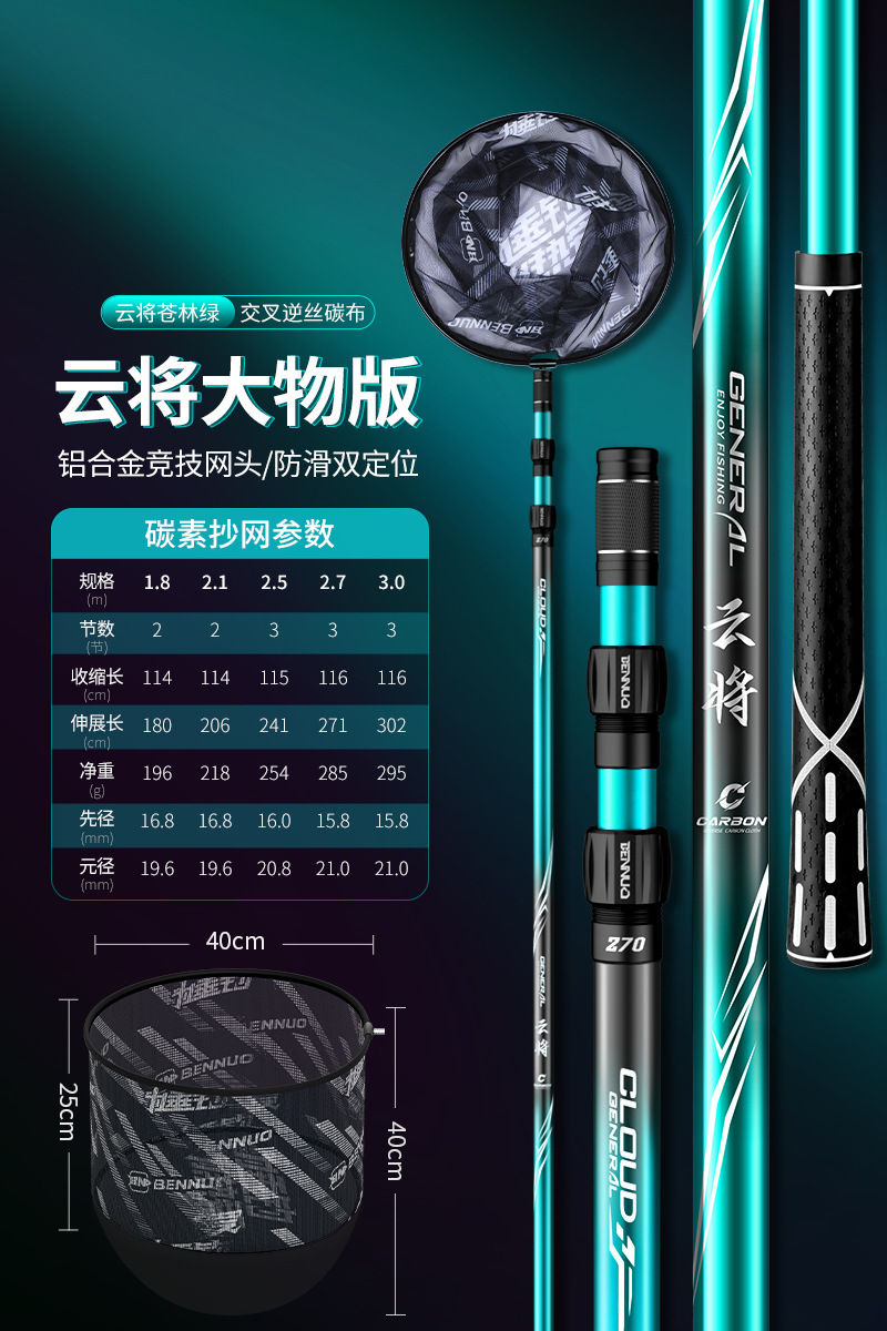 Benno 대형 그물대 탄소 초경량 및 초경질 그물대 베어 로드 세트 낚시 그물망 텔레스코픽 그물스토어 가기