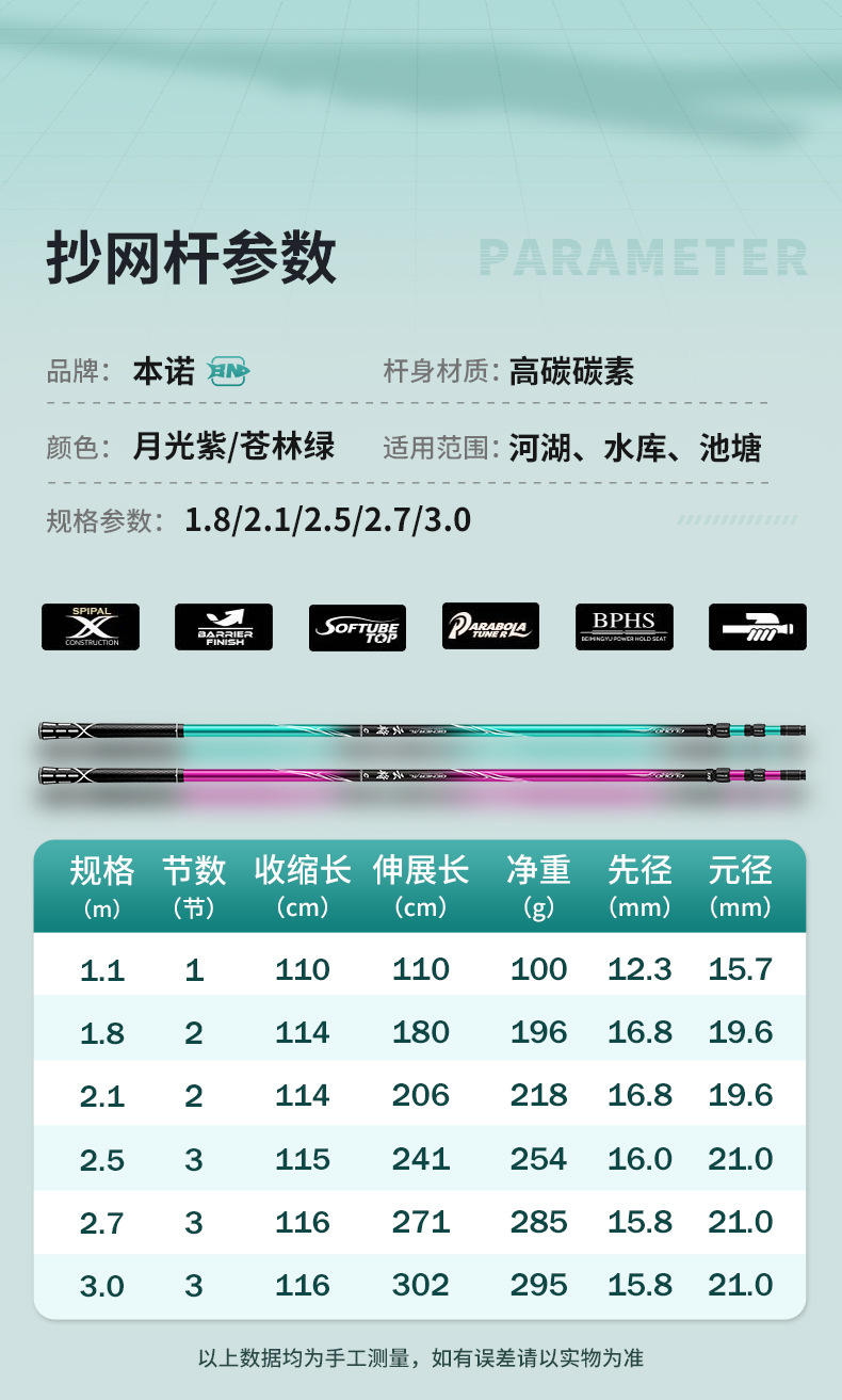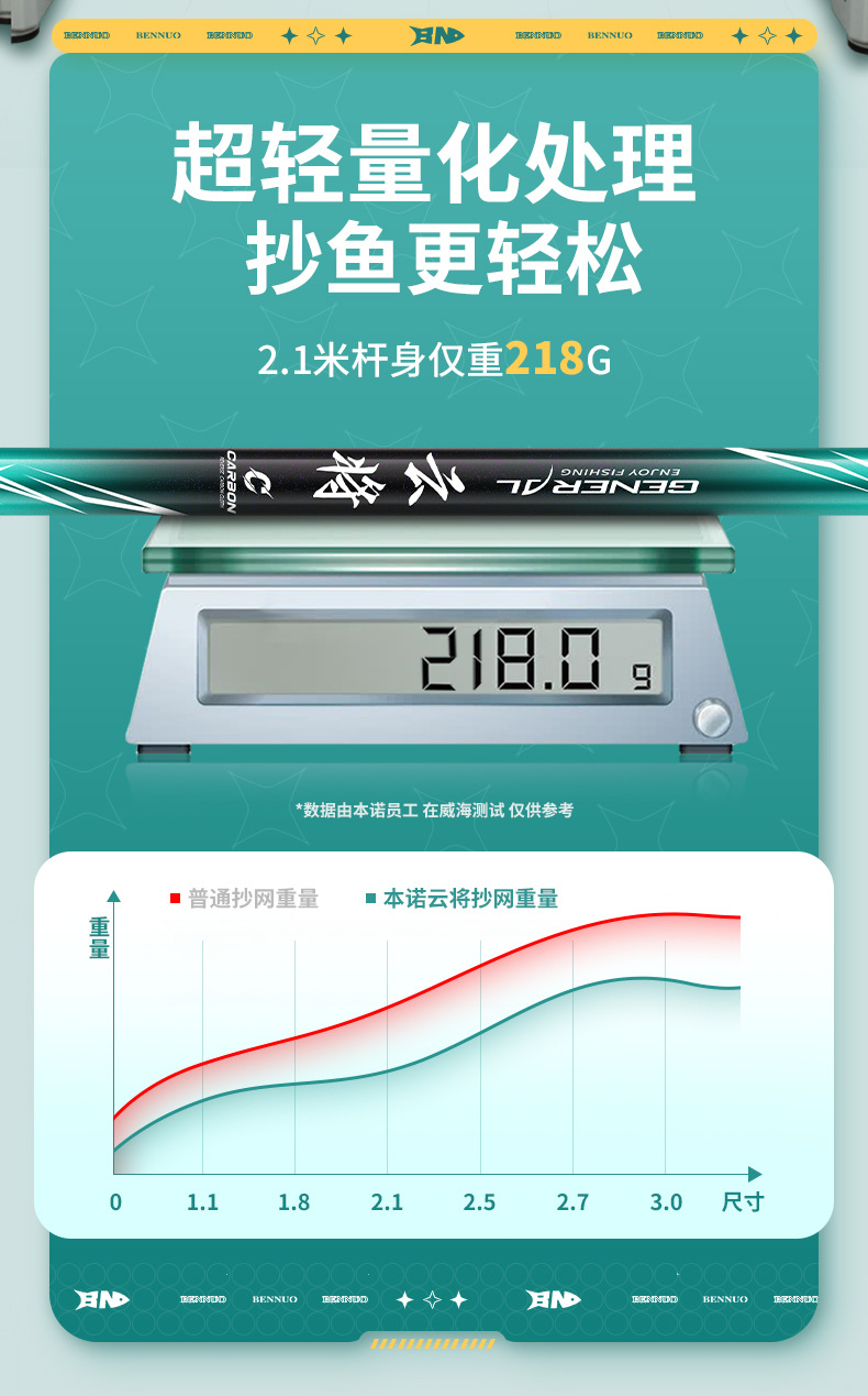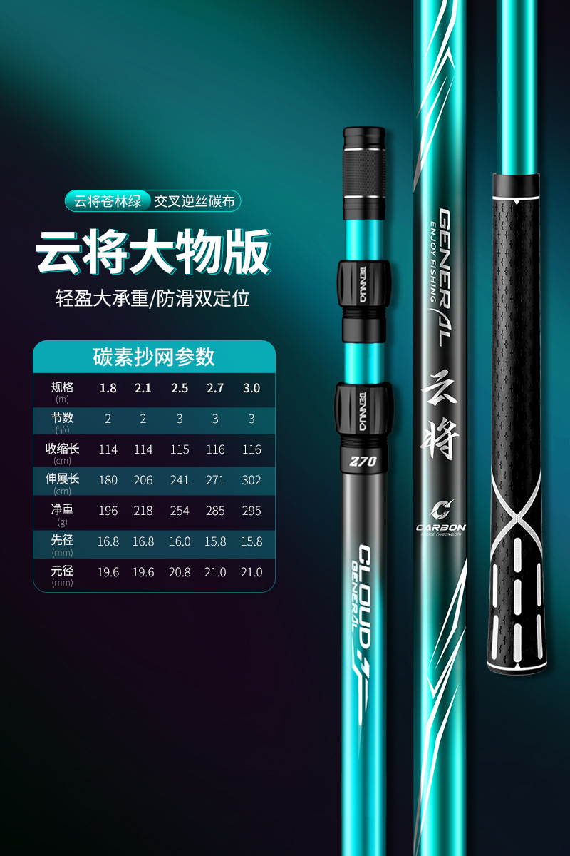 Benno 대형 그물대 탄소 초경량 및 초경질 그물대 베어 로드 세트 낚시 그물망 텔레스코픽 그물