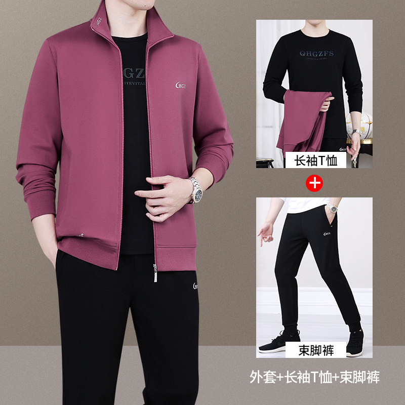 중년 및 노인 스포츠 세트 남자의 플러스 사이즈 새로운 스타일 아빠 가을 3 종 세트 중년 남성 스포츠웨어 재킷