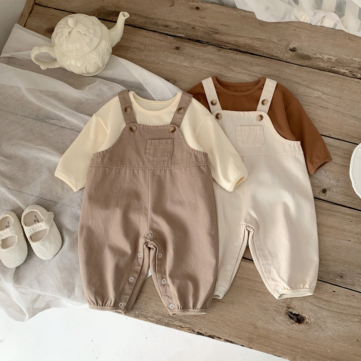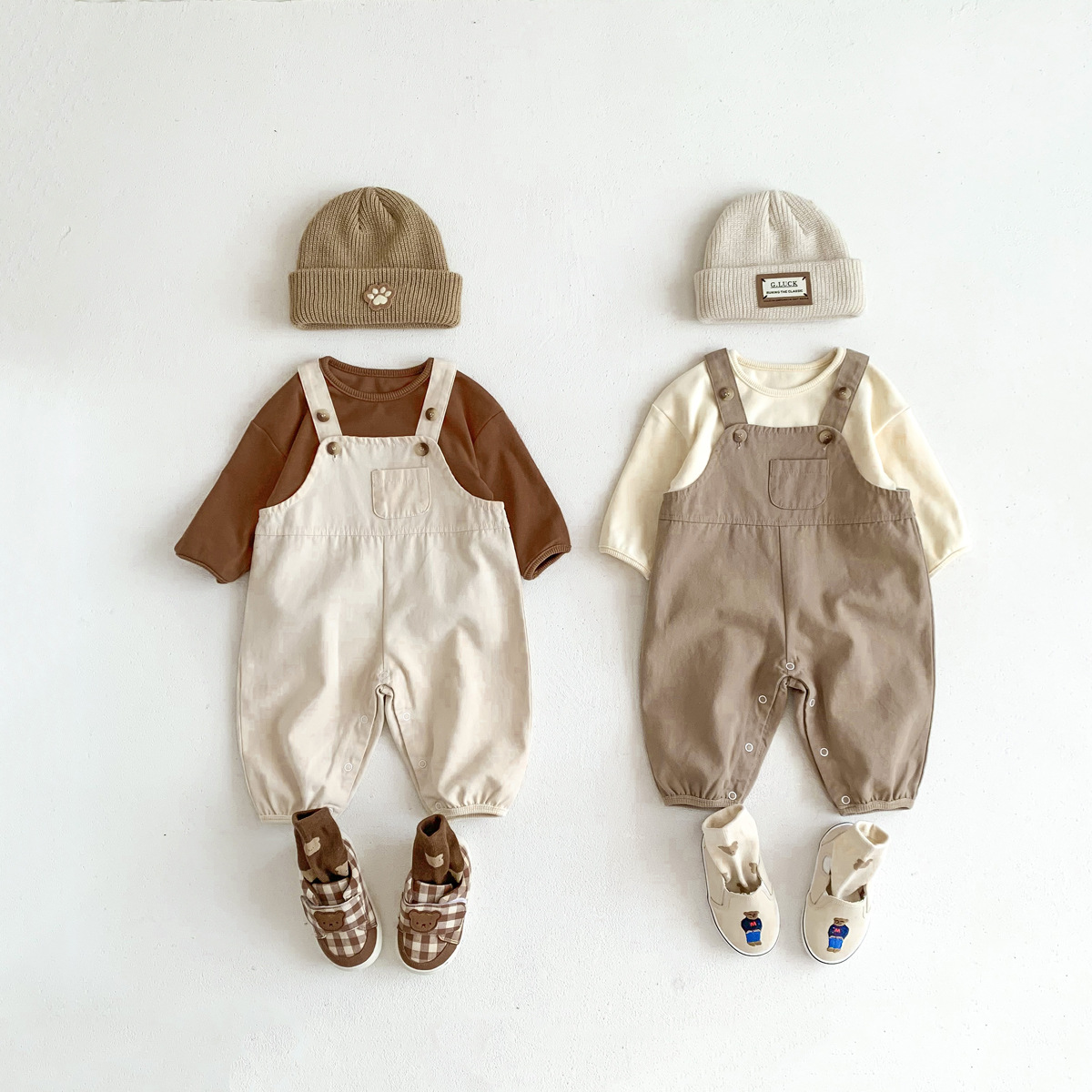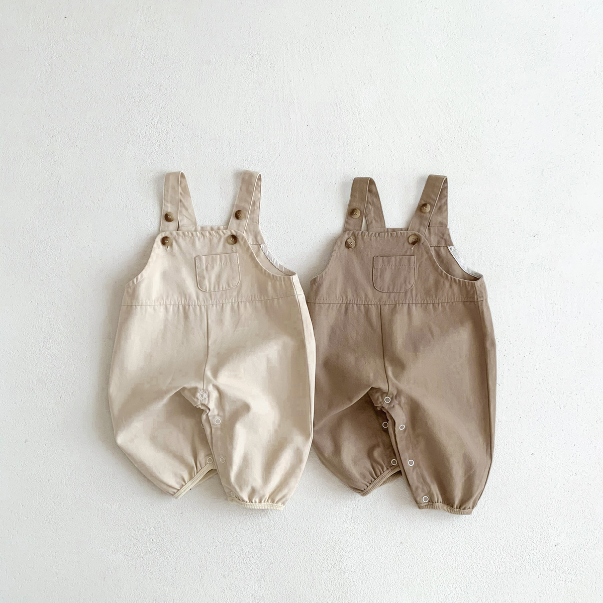 가을 새로운 한국어 스타일 ins 유아 솔리드 컬러 작업복 바지 남성과 여성 베이비 캐주얼 다목적 점프 슈트