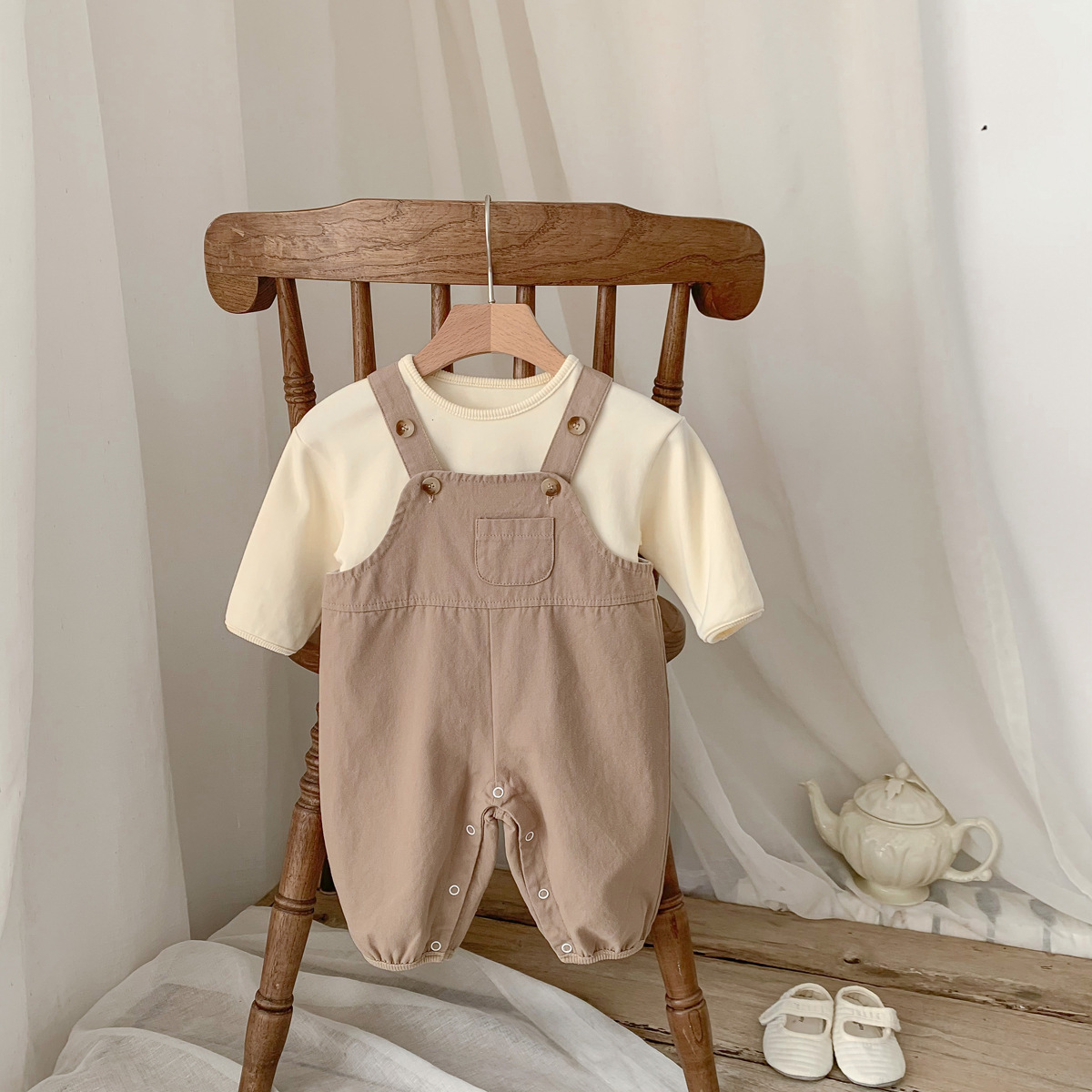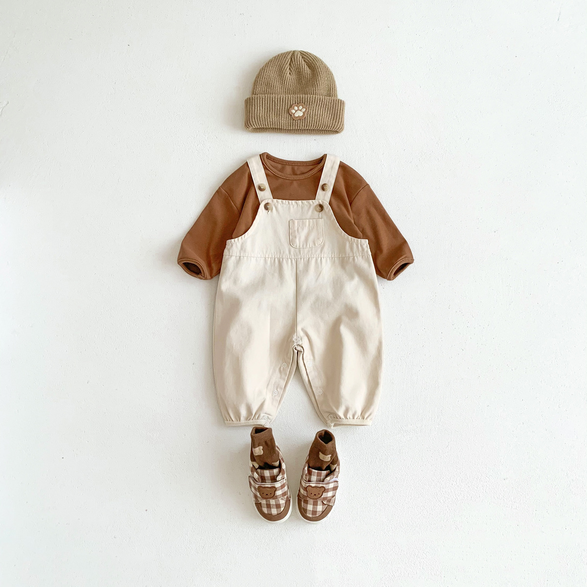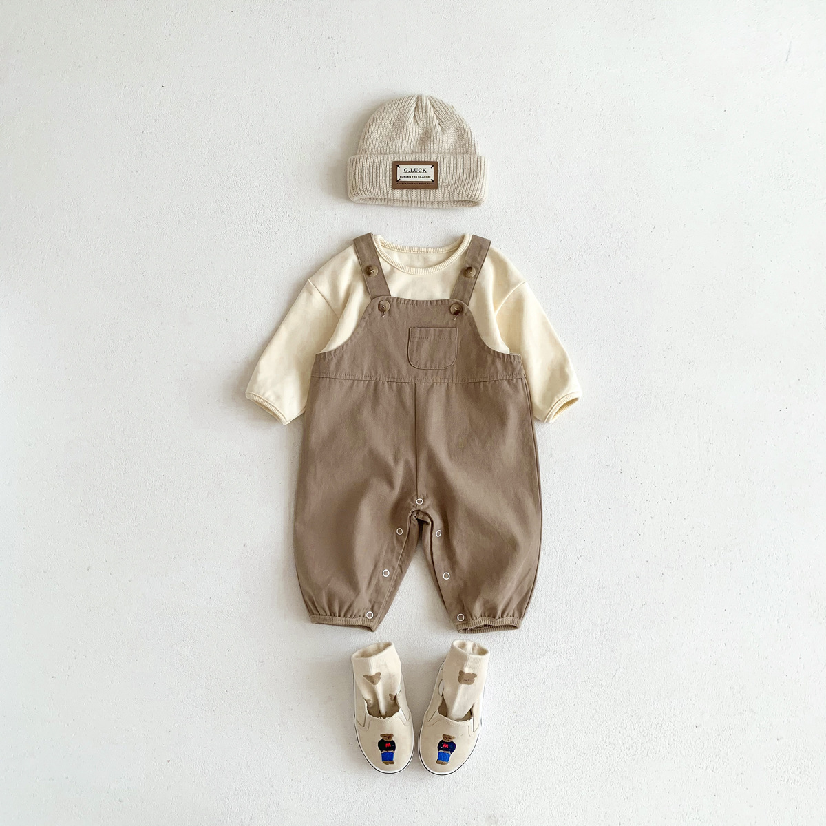 가을 새로운 한국어 스타일 ins 유아 솔리드 컬러 작업복 바지 남성과 여성 베이비 캐주얼 다목적 점프 슈트