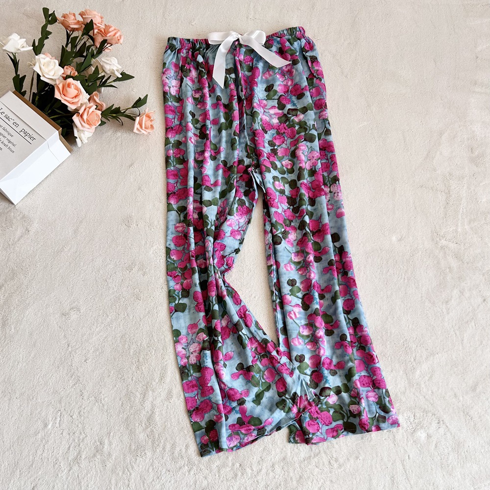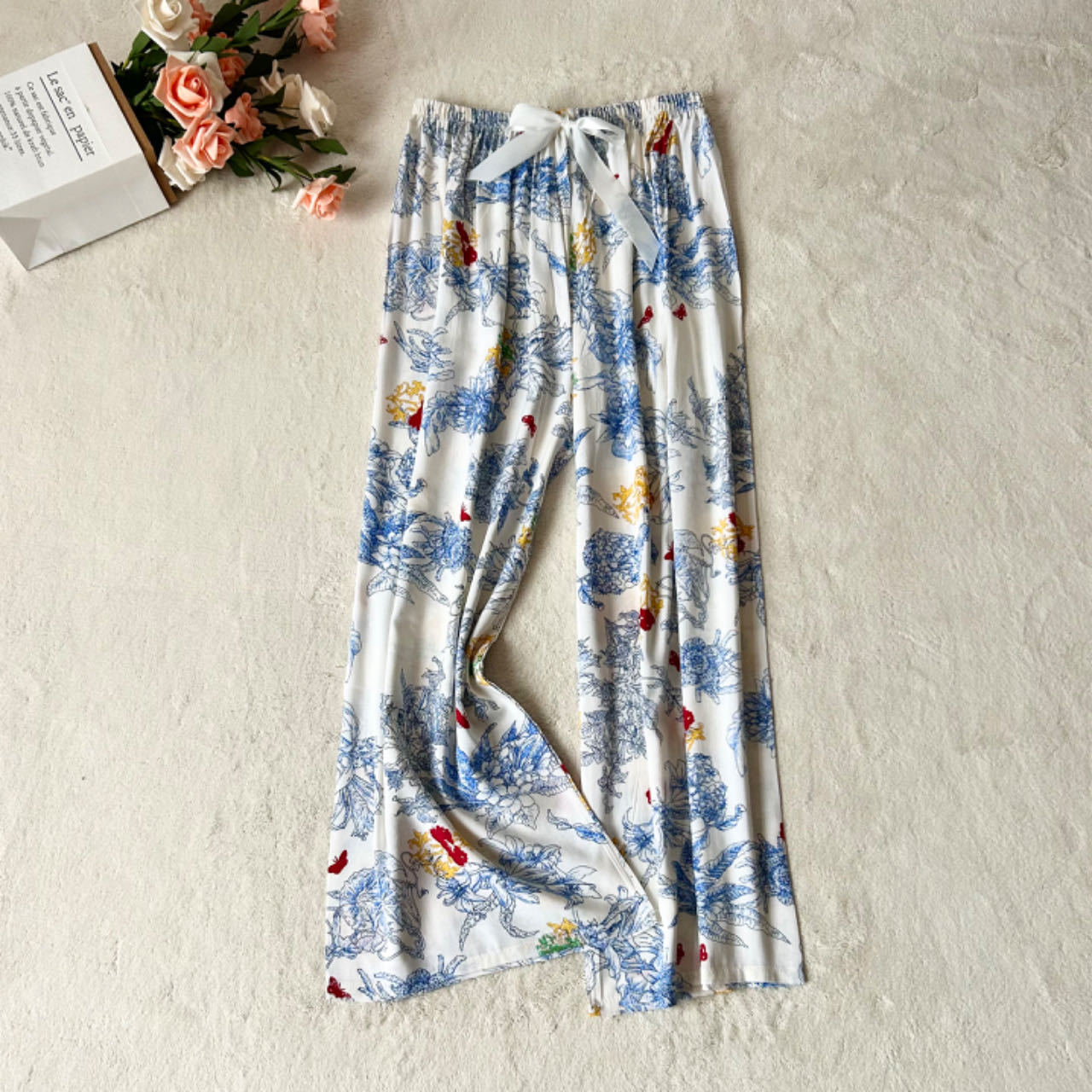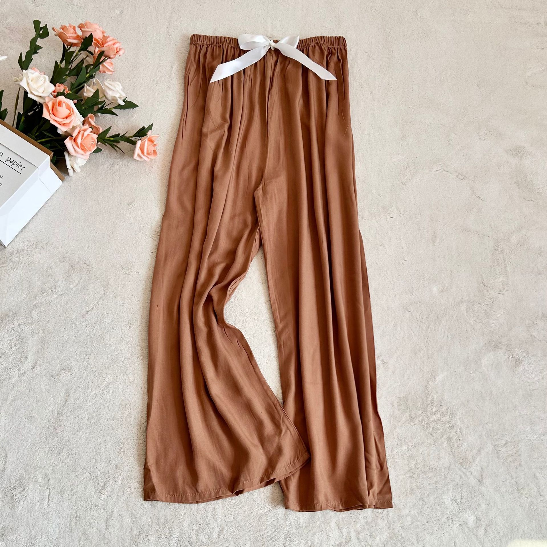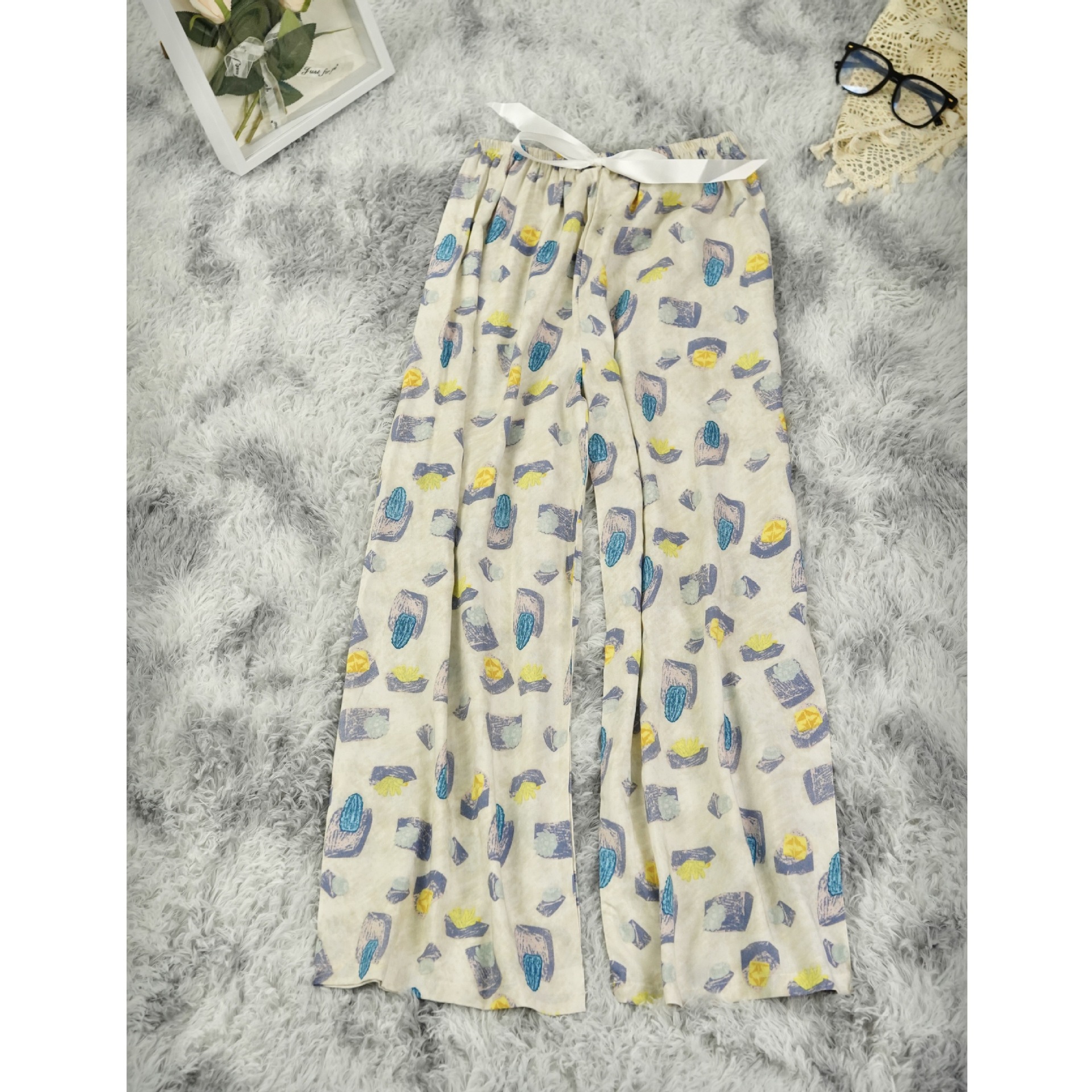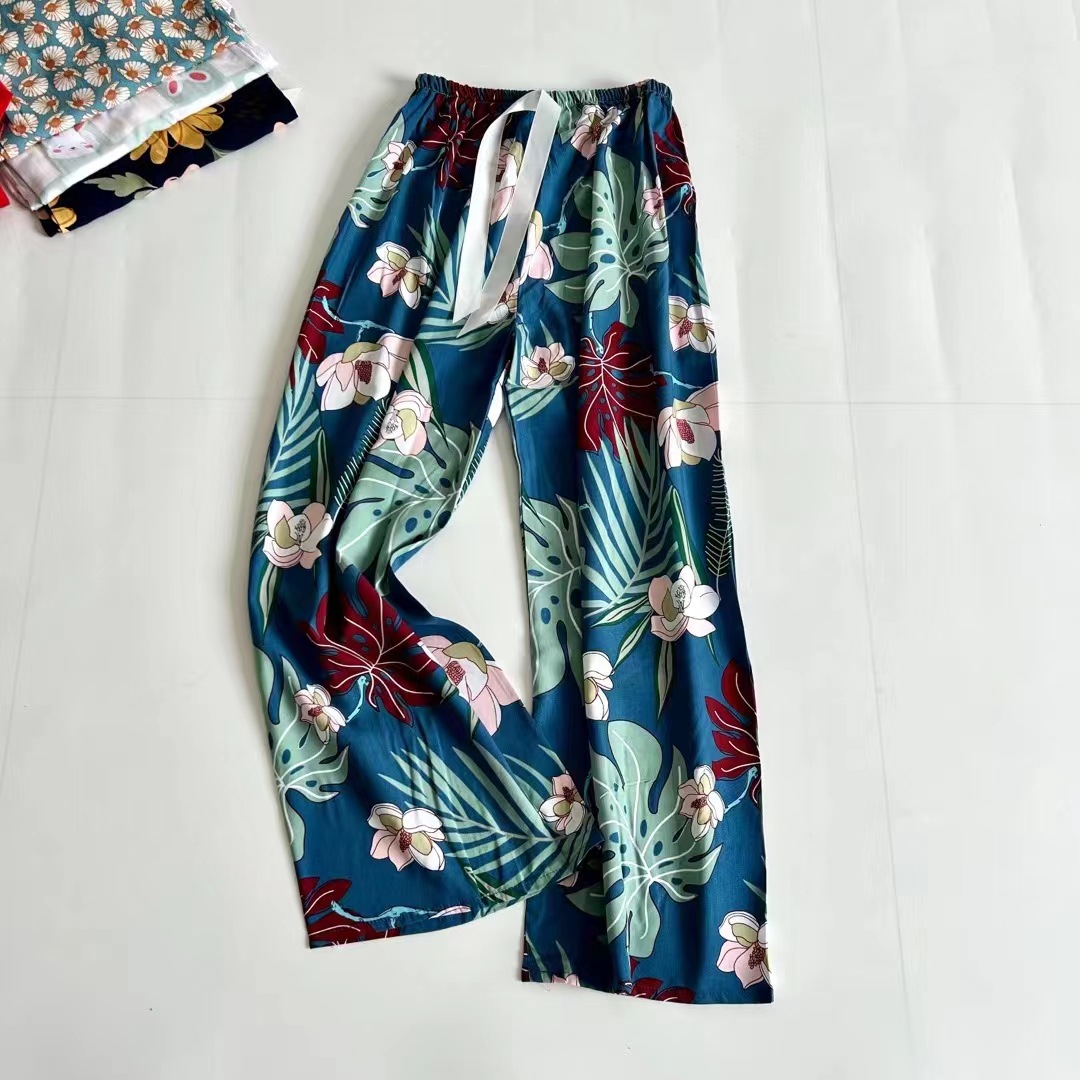 면 실크 잠옷 여성 여름 얇은 면 실크 봄과 가을 외부 느슨한 긴 홈 에어컨 새로운 넓은 다리 바지 착용