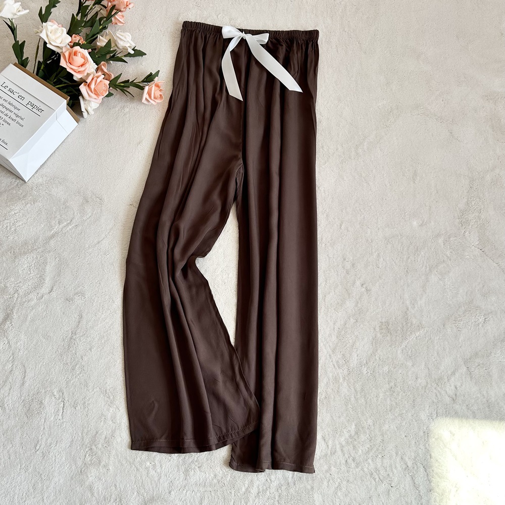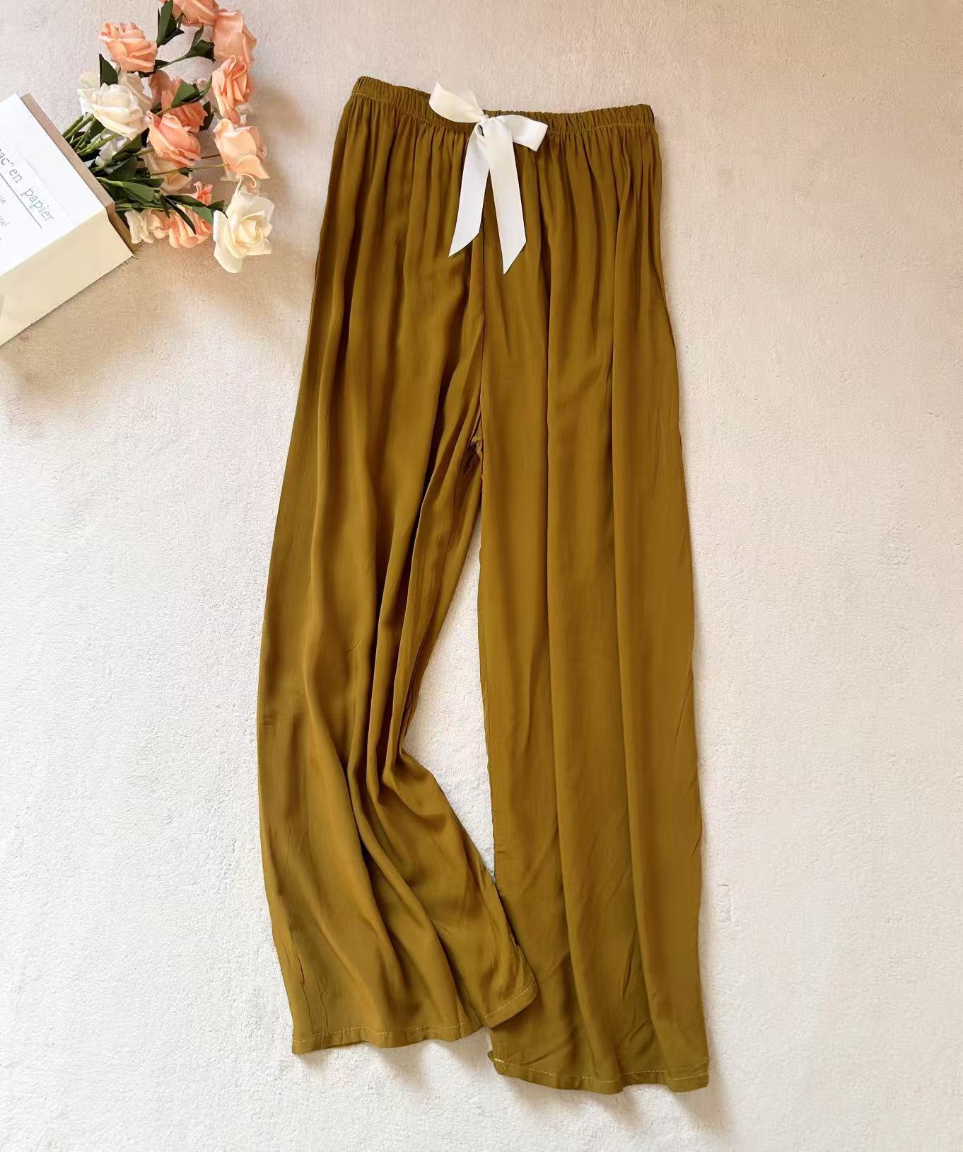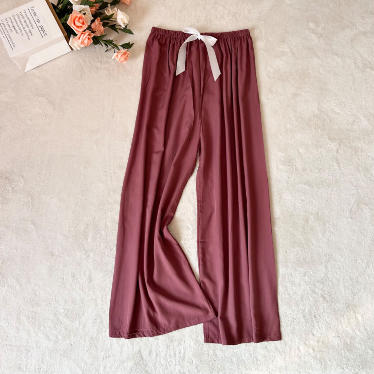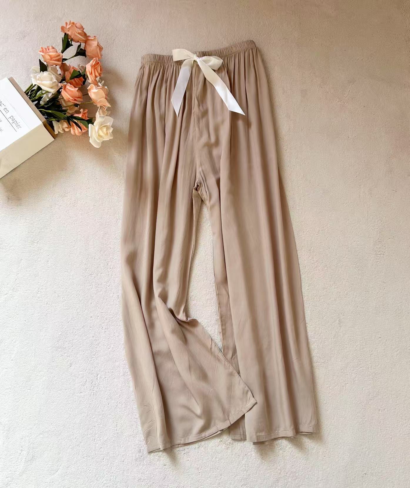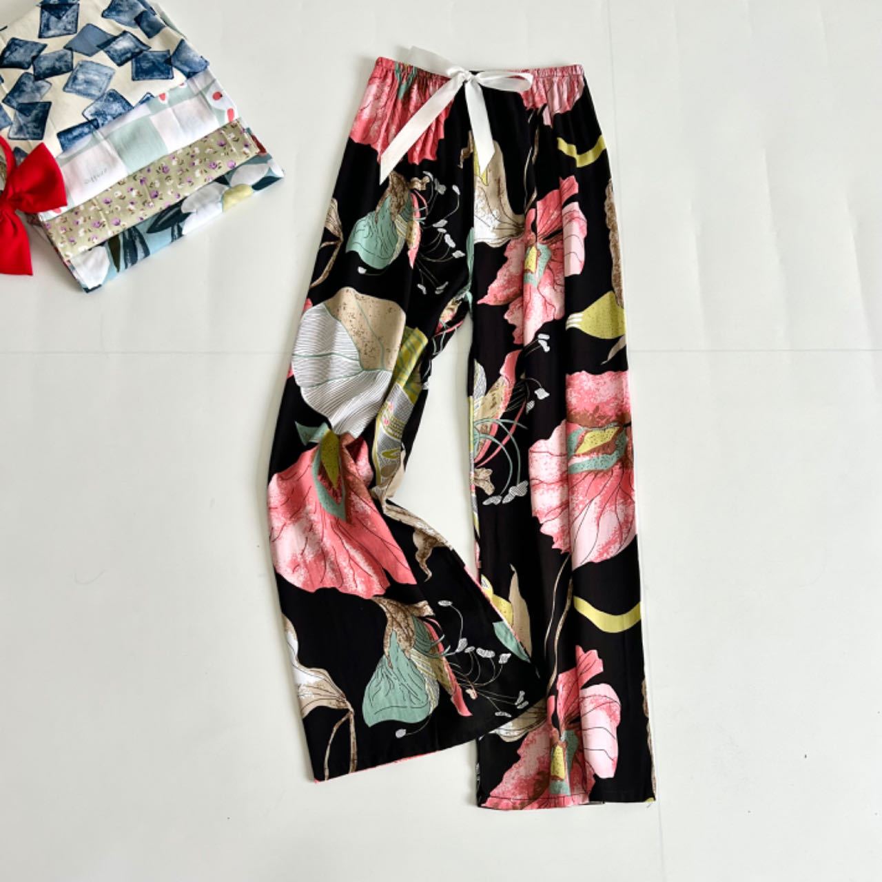 면 실크 잠옷 여성 여름 얇은 면 실크 봄과 가을 외부 느슨한 긴 홈 에어컨 새로운 넓은 다리 바지 착용