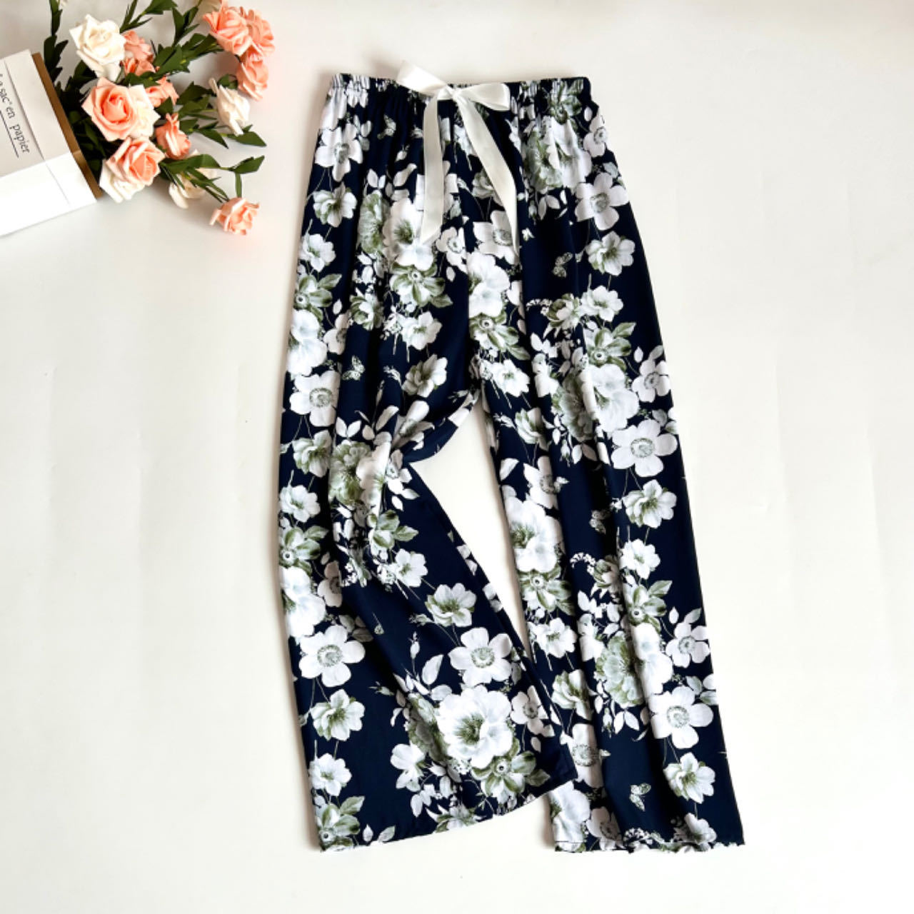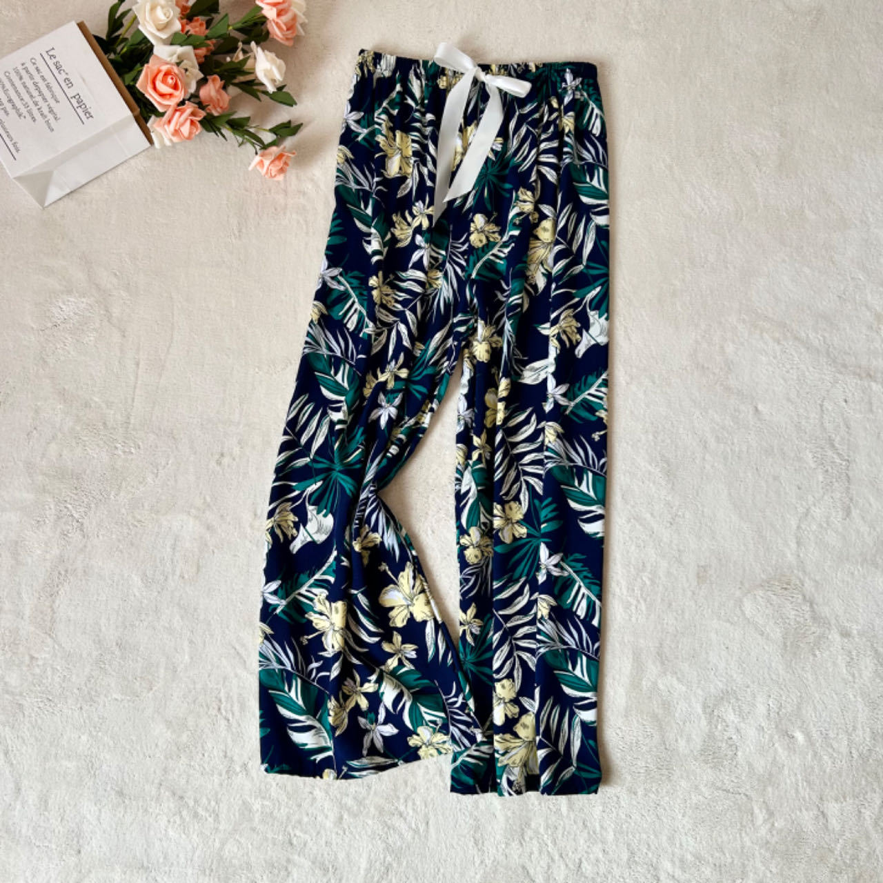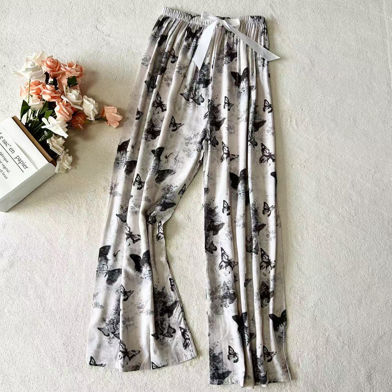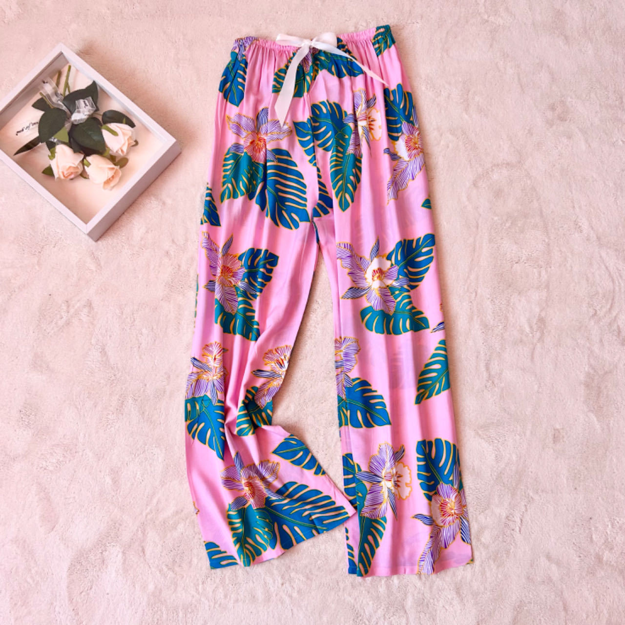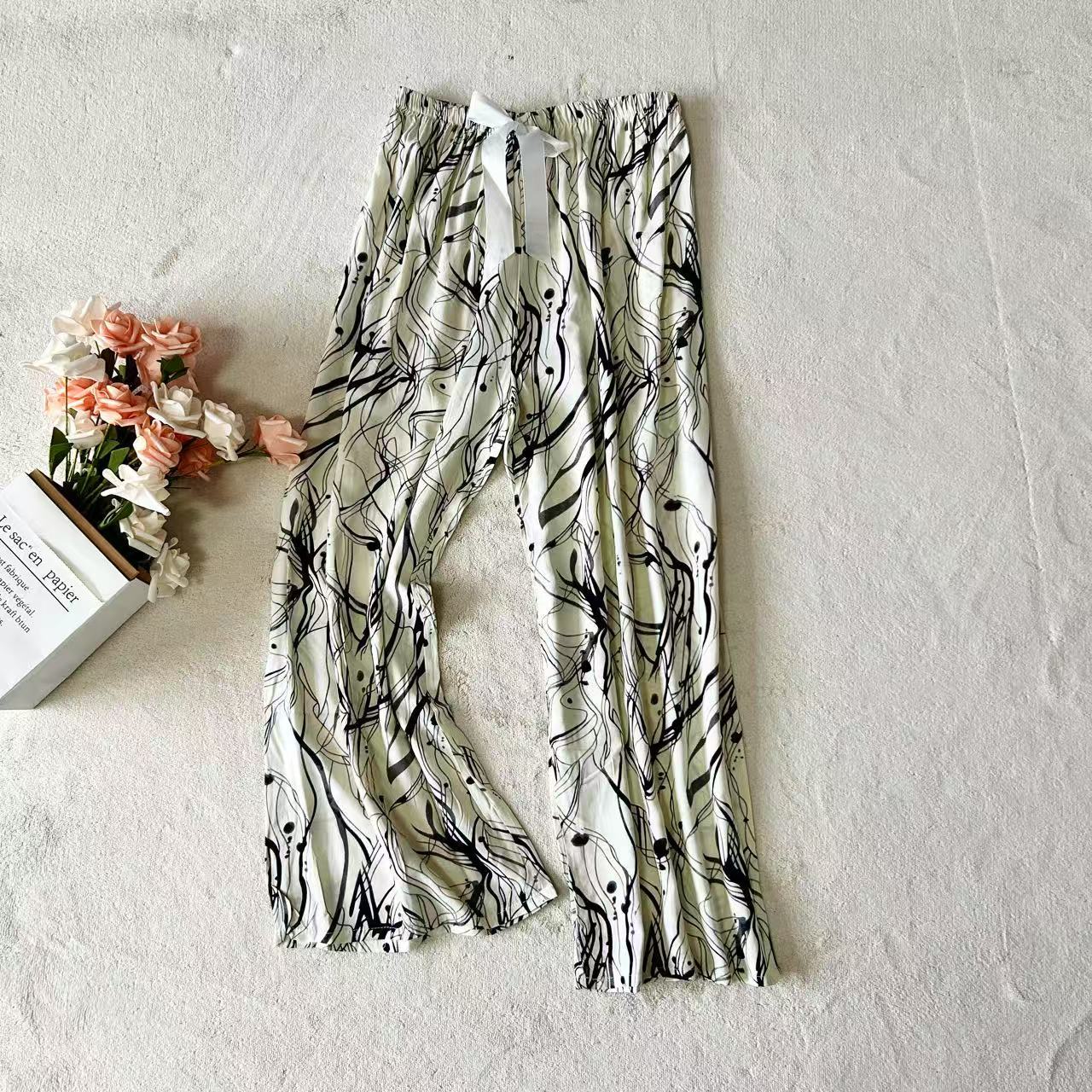 면 실크 잠옷 여성 여름 얇은 면 실크 봄과 가을 외부 느슨한 긴 홈 에어컨 새로운 넓은 다리 바지 착용