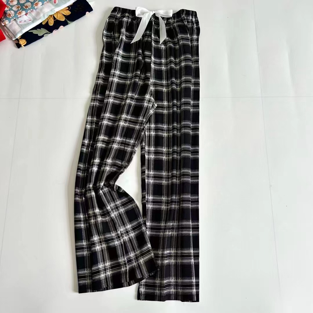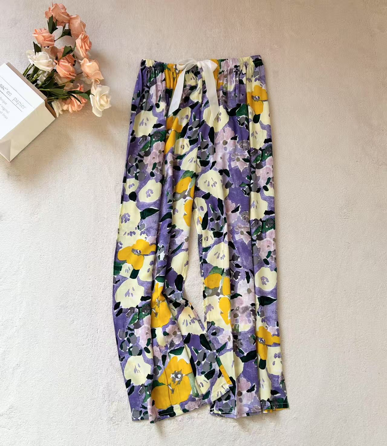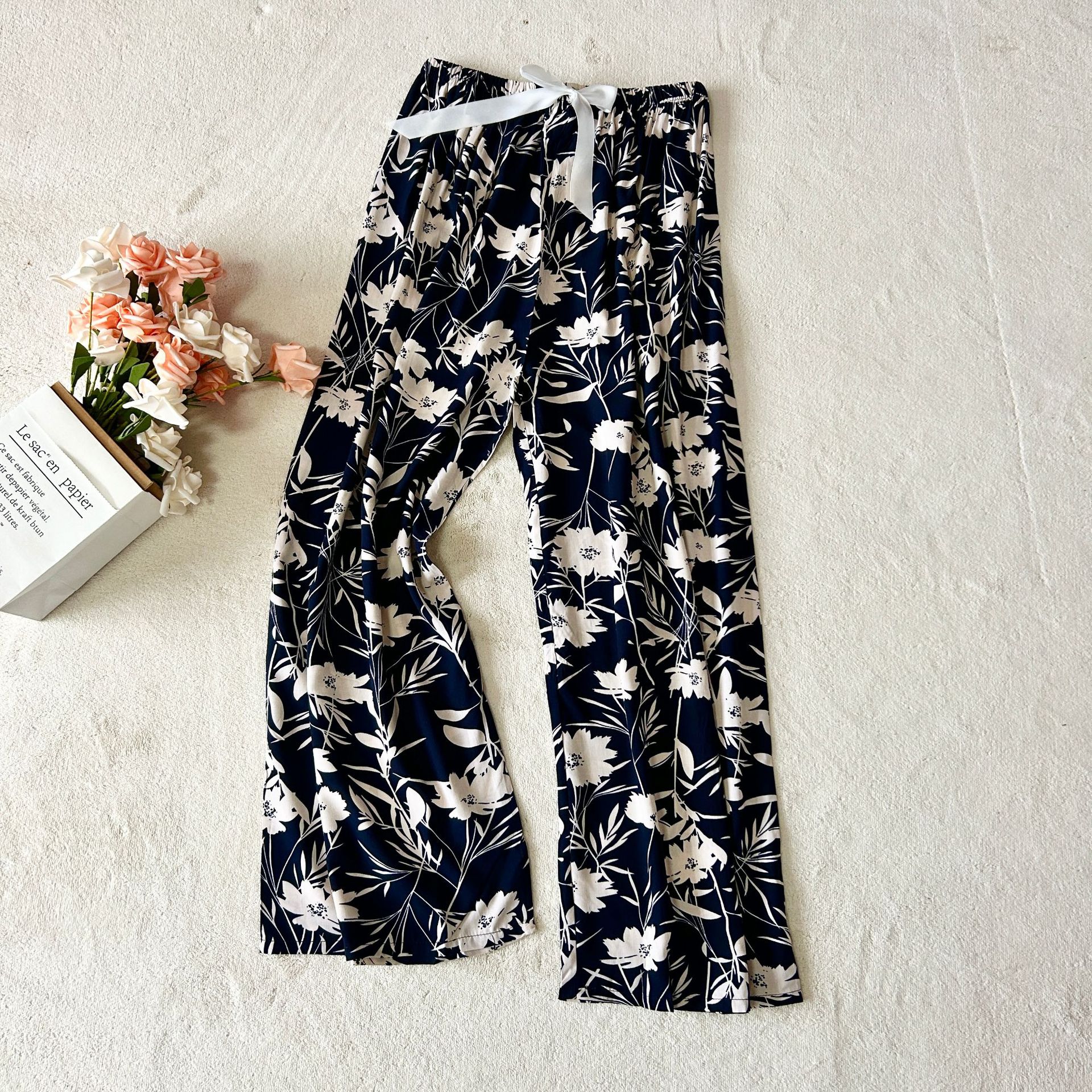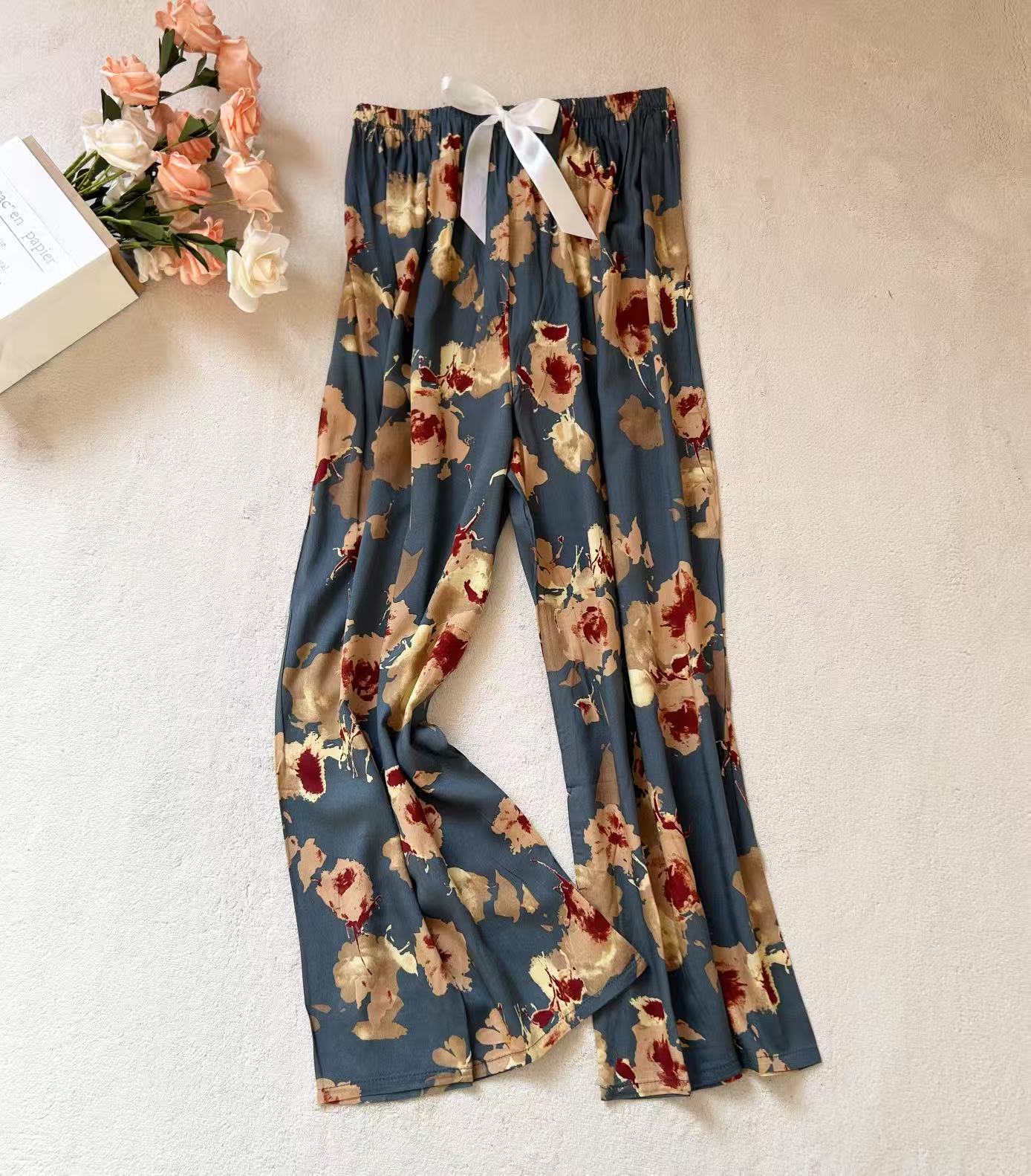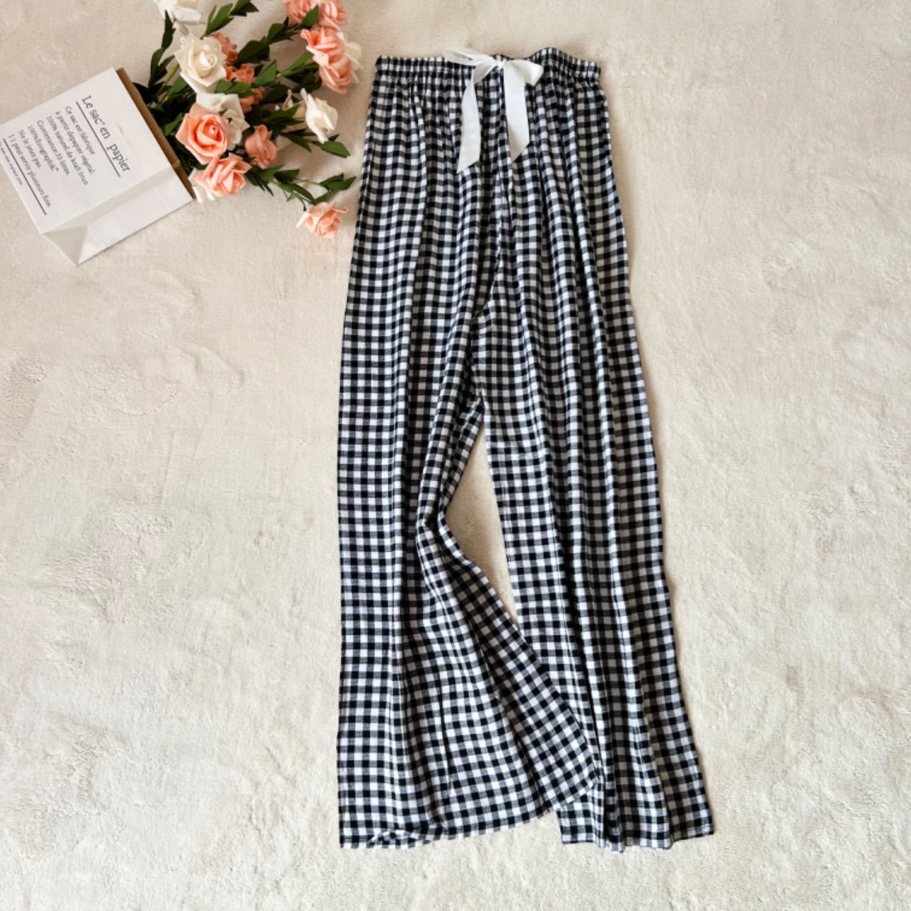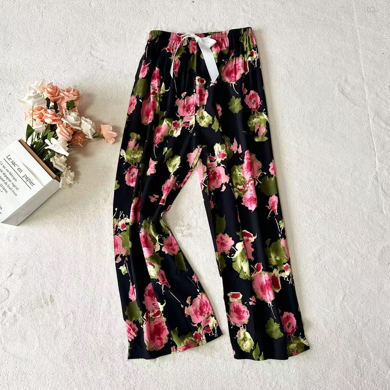 면 실크 잠옷 여성 여름 얇은 면 실크 봄과 가을 외부 느슨한 긴 홈 에어컨 새로운 넓은 다리 바지 착용