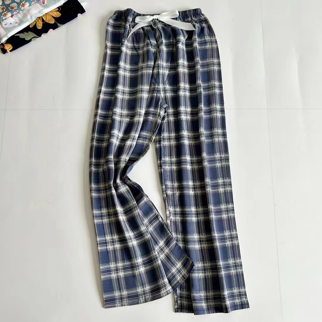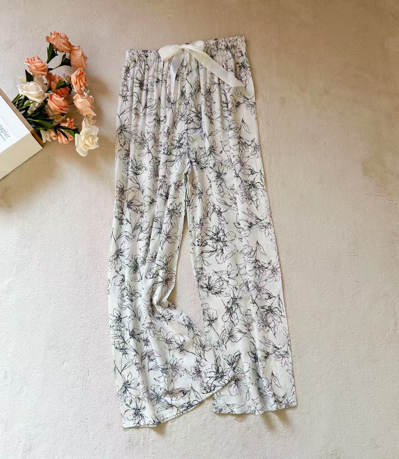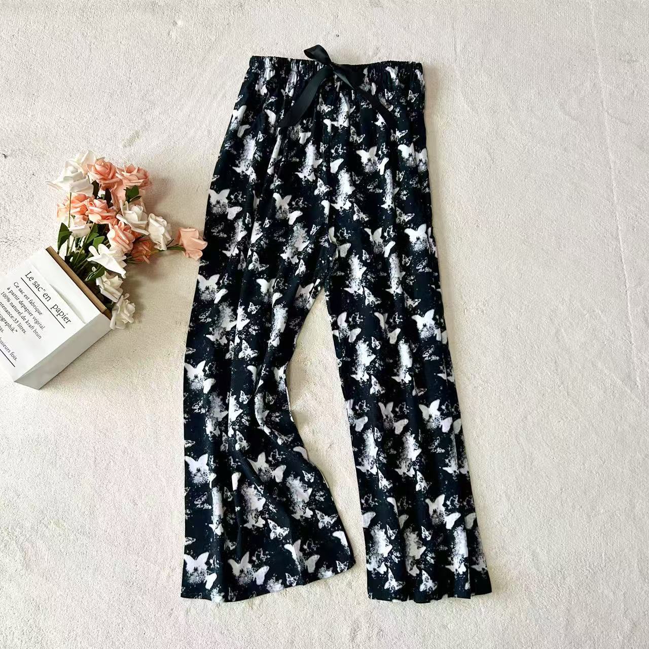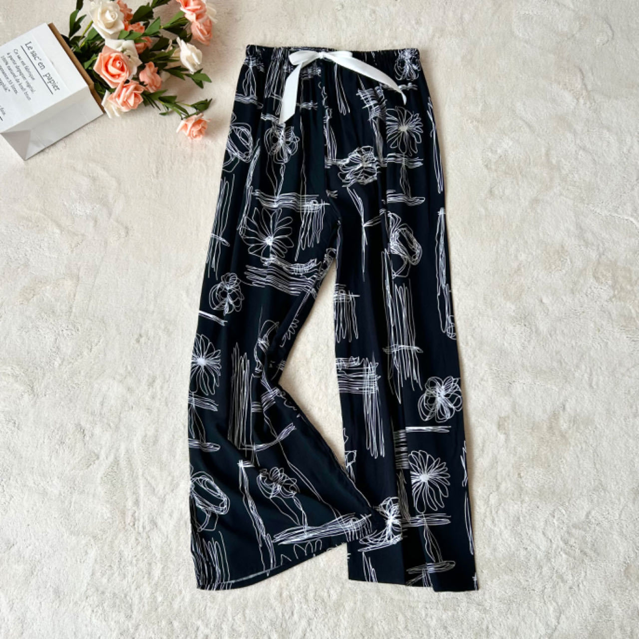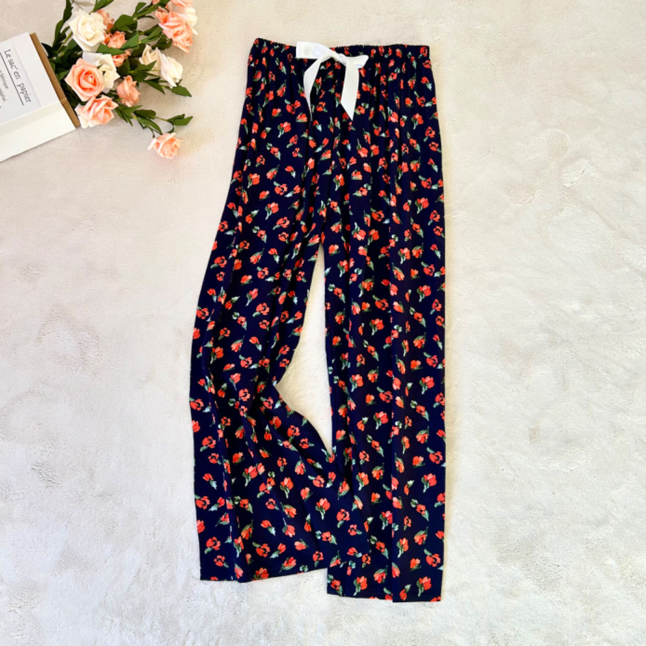 면 실크 잠옷 여성 여름 얇은 면 실크 봄과 가을 외부 느슨한 긴 홈 에어컨 새로운 넓은 다리 바지 착용