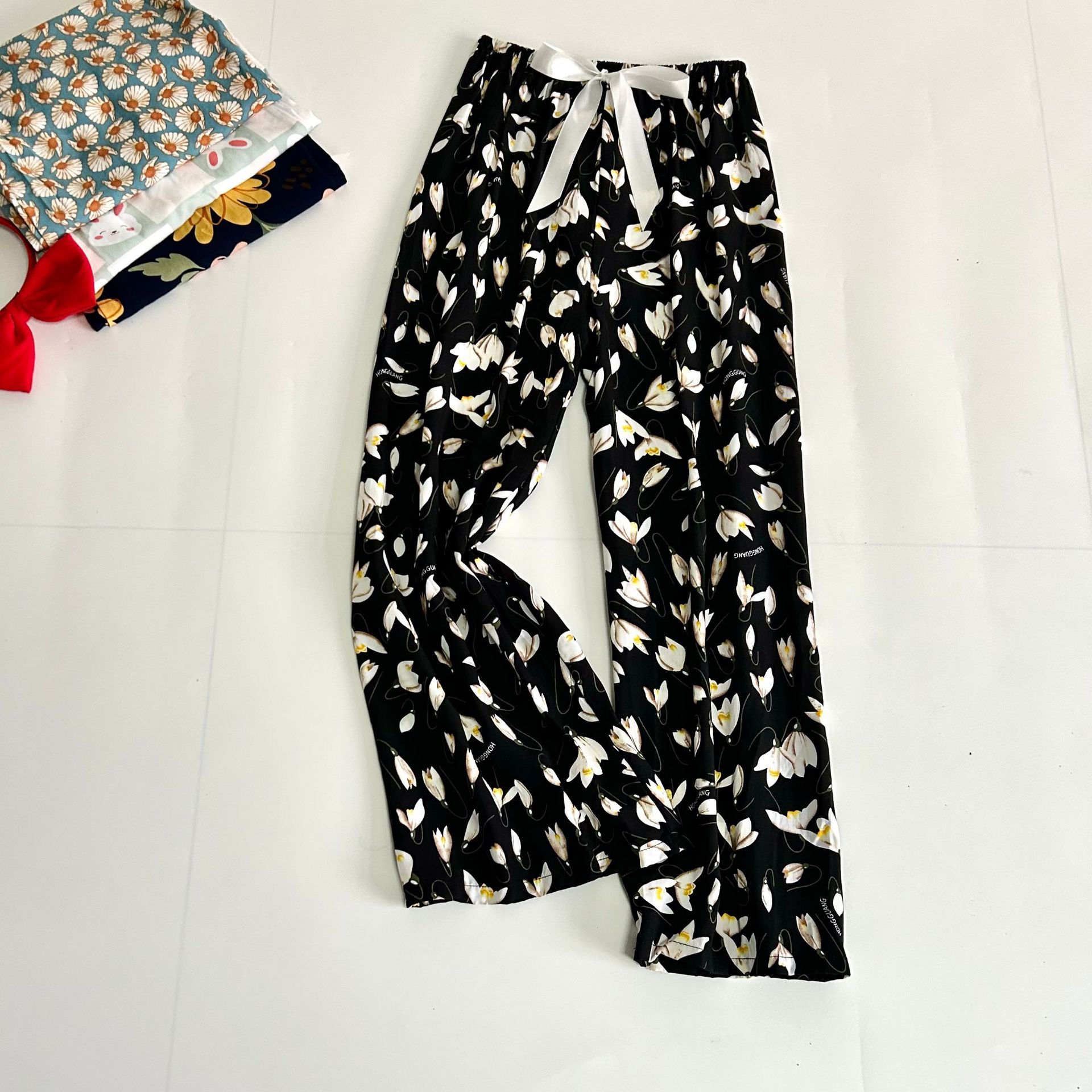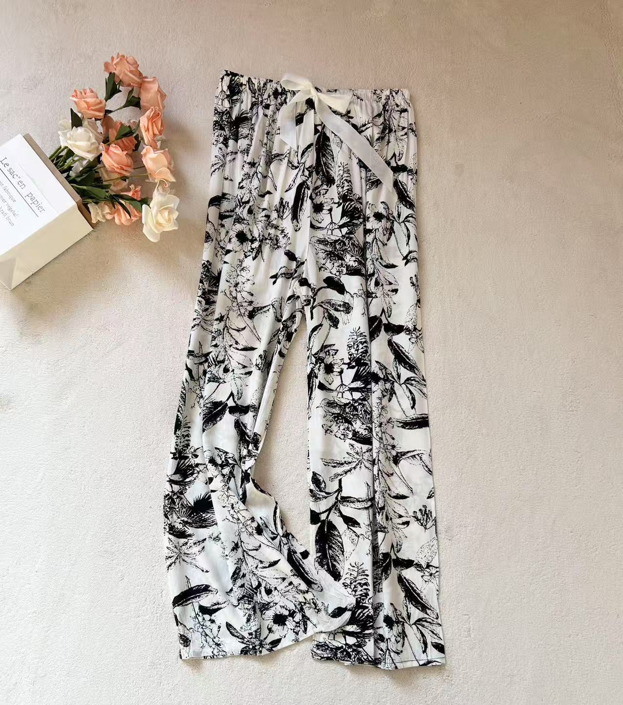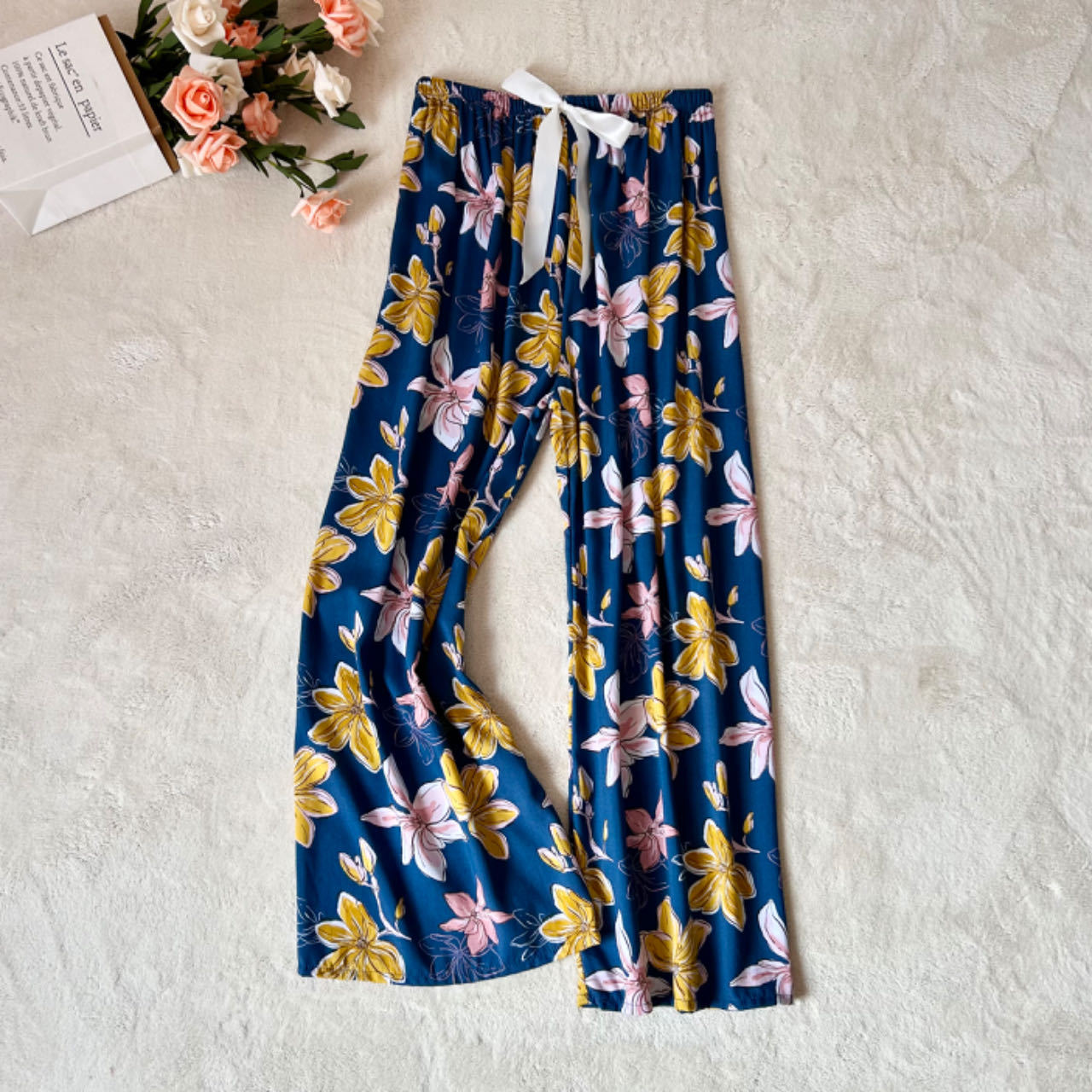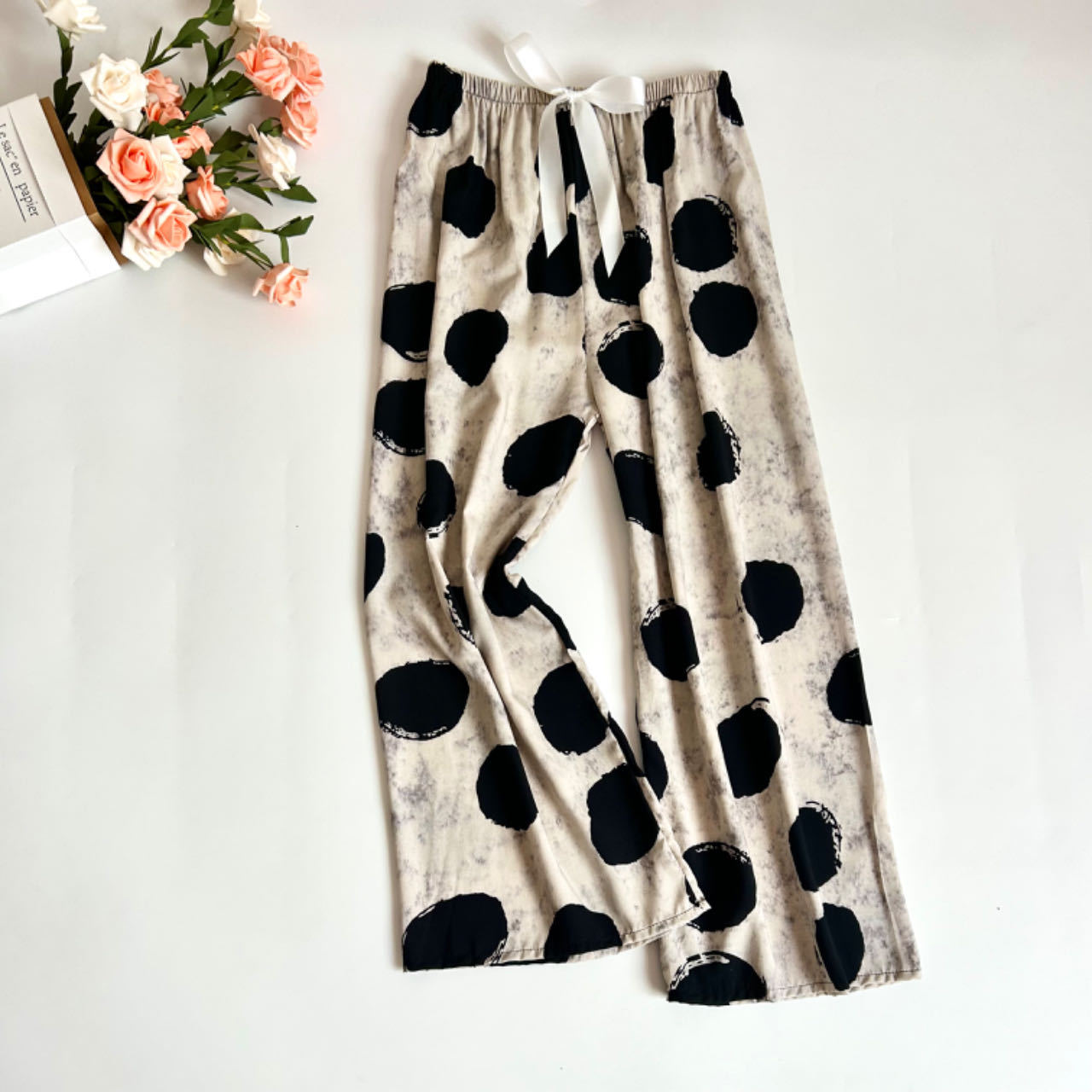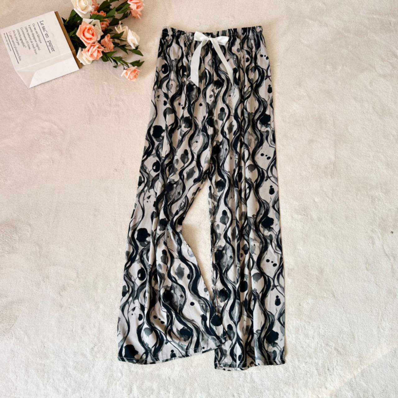면 실크 잠옷 여성 여름 얇은 면 실크 봄과 가을 외부 느슨한 긴 홈 에어컨 새로운 넓은 다리 바지 착용