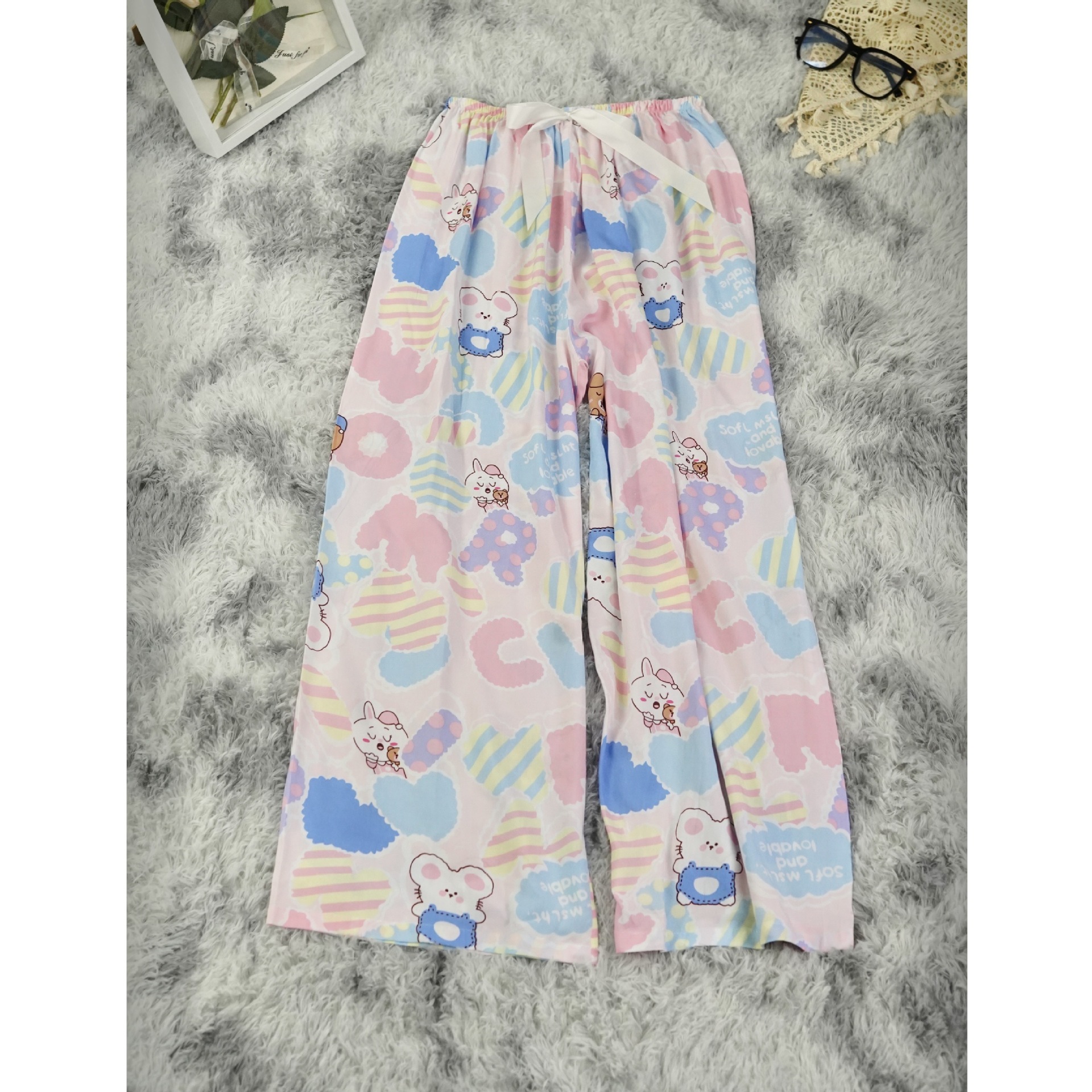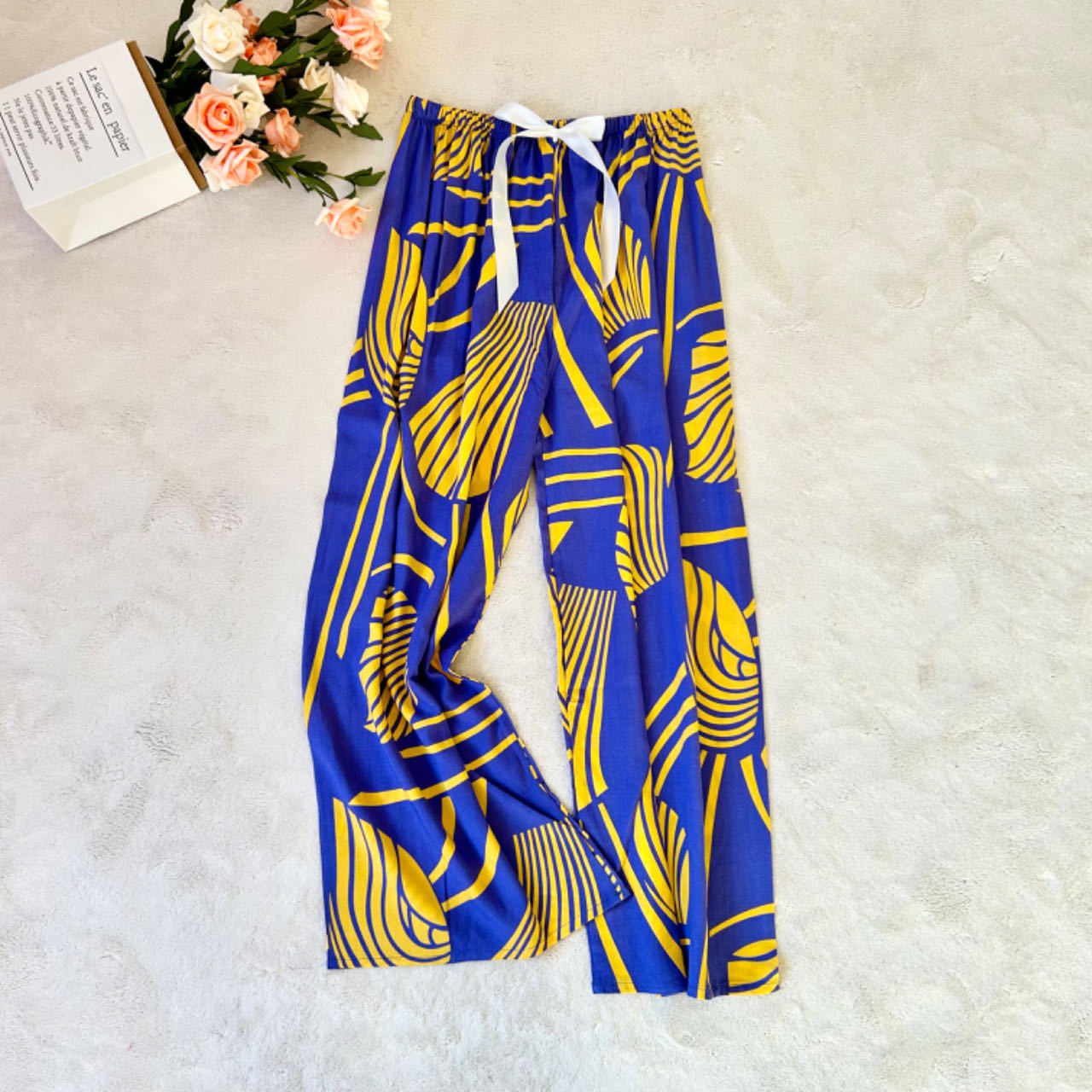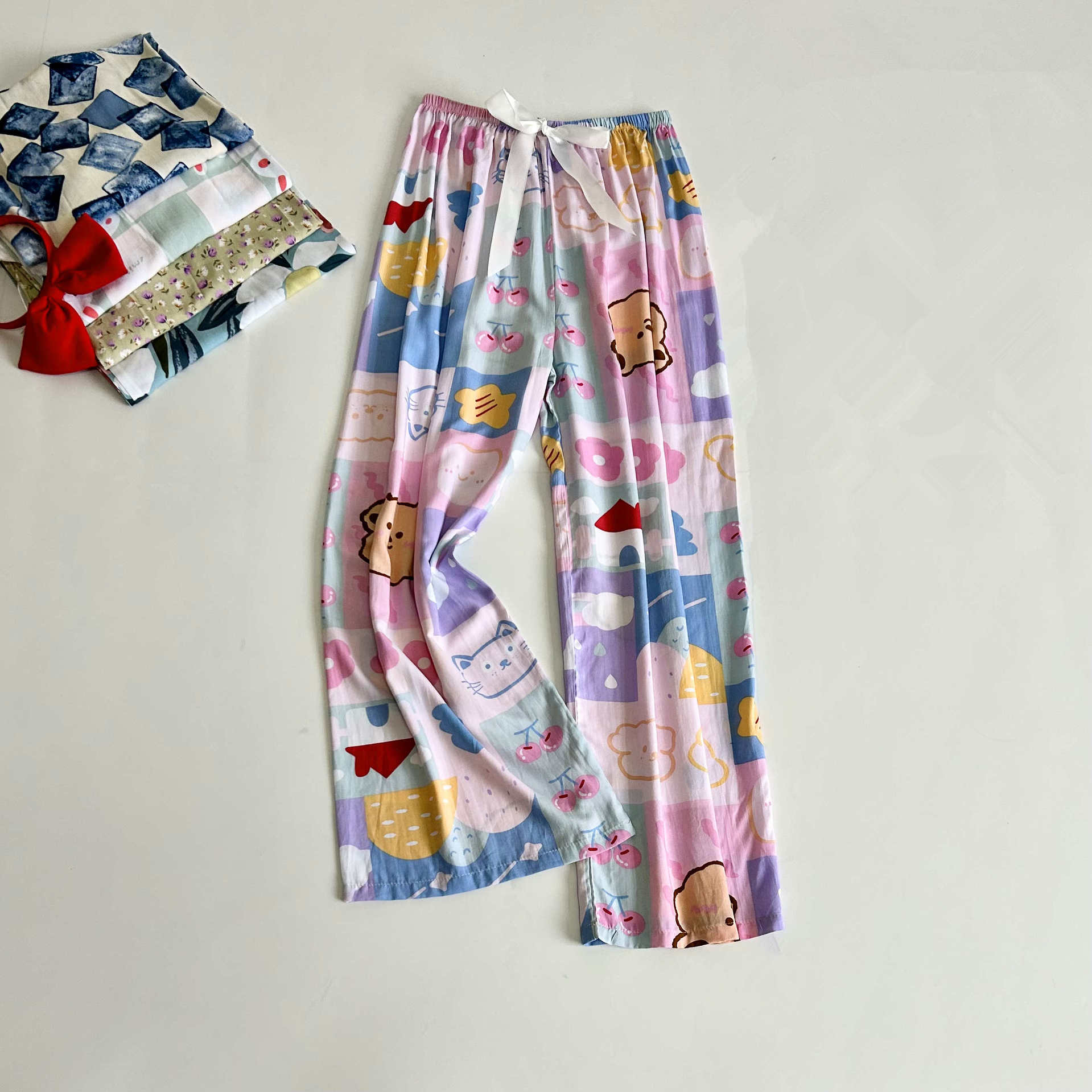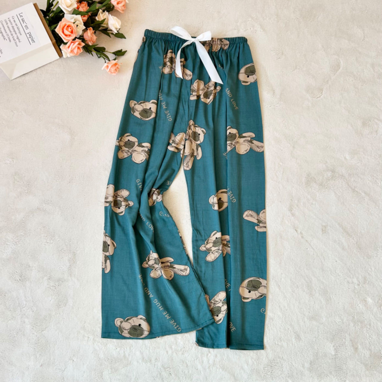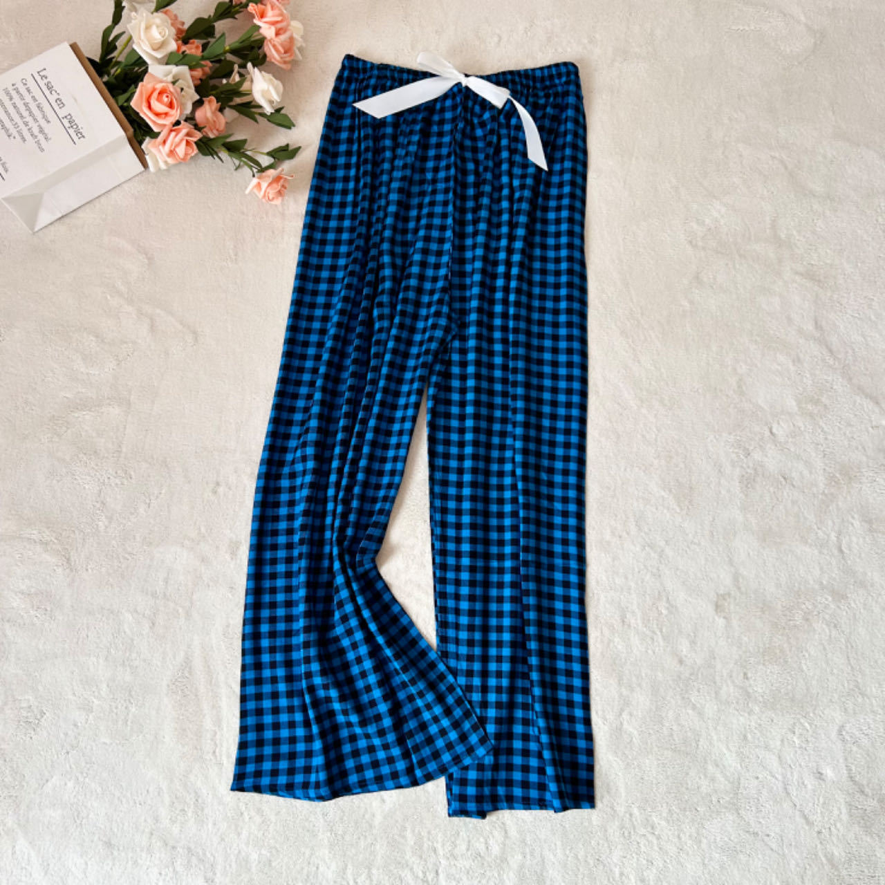 면 실크 잠옷 여성 여름 얇은 면 실크 봄과 가을 외부 느슨한 긴 홈 에어컨 새로운 넓은 다리 바지 착용