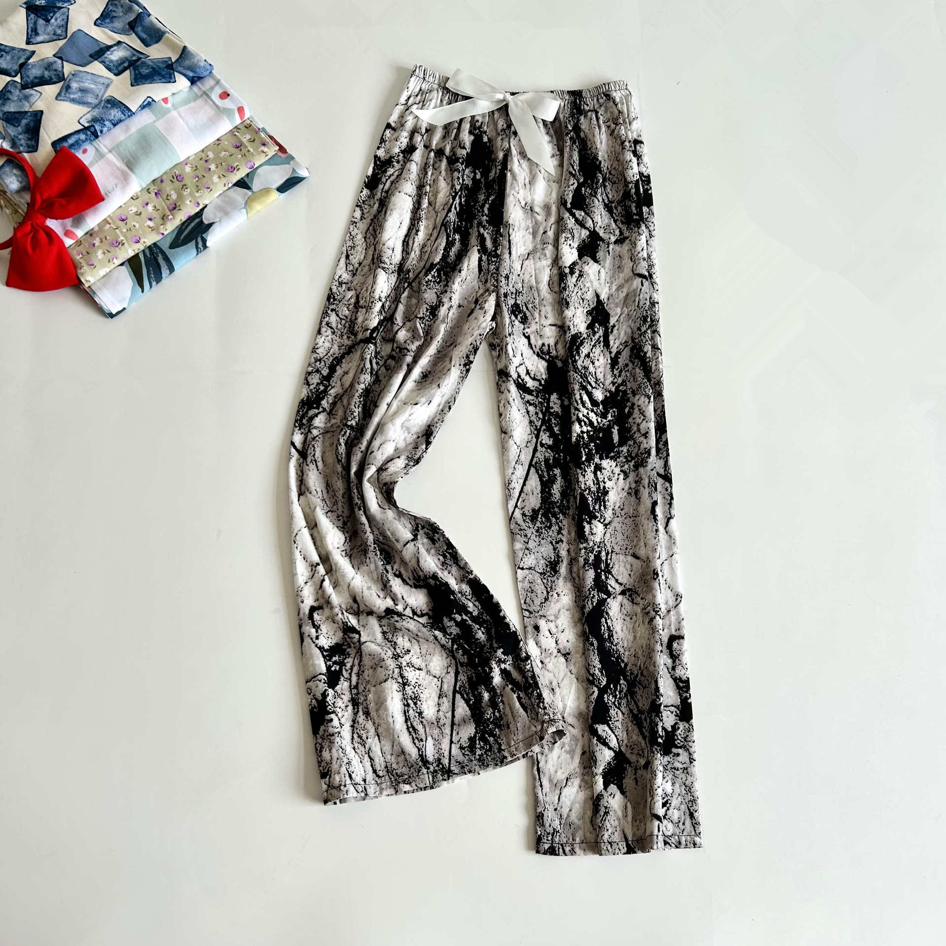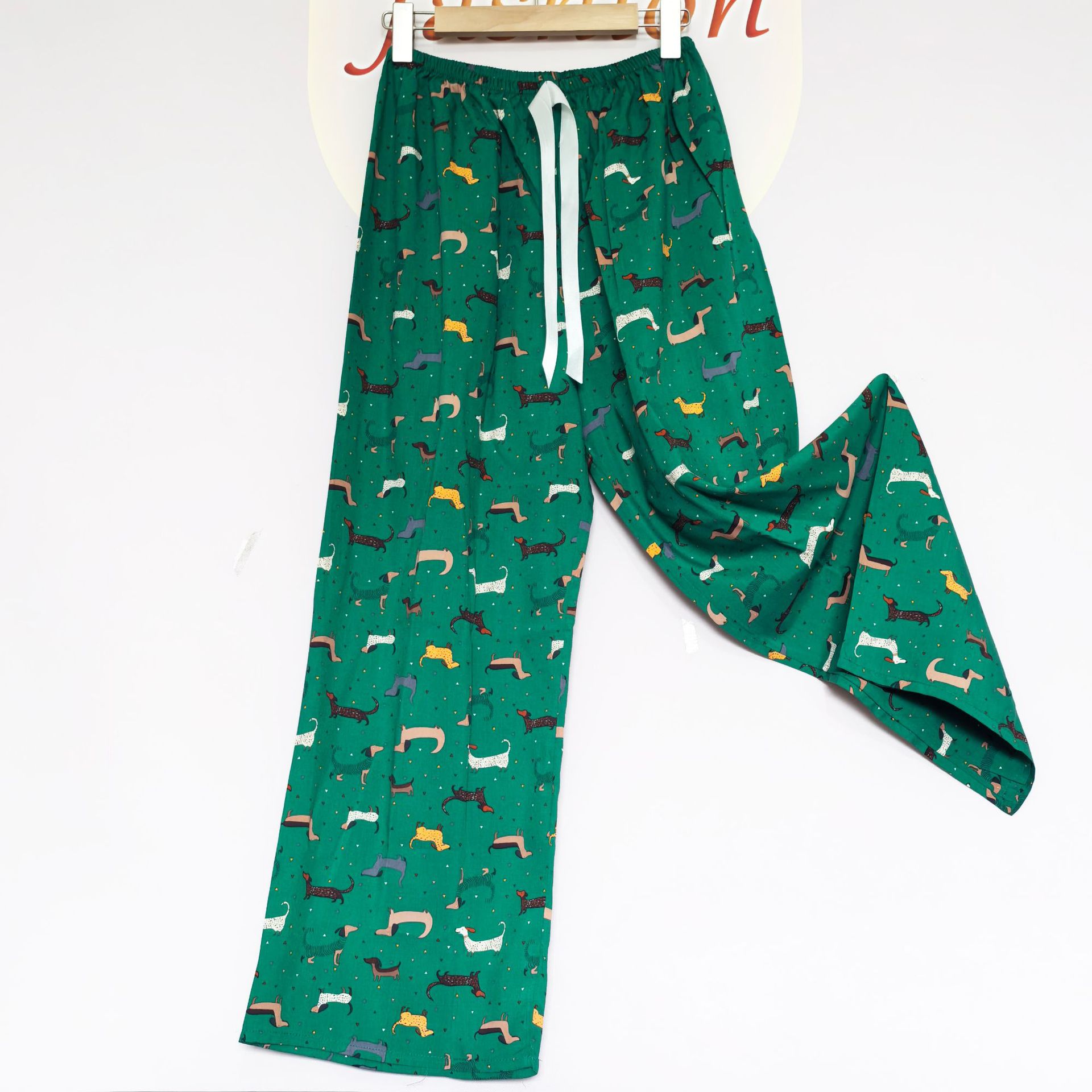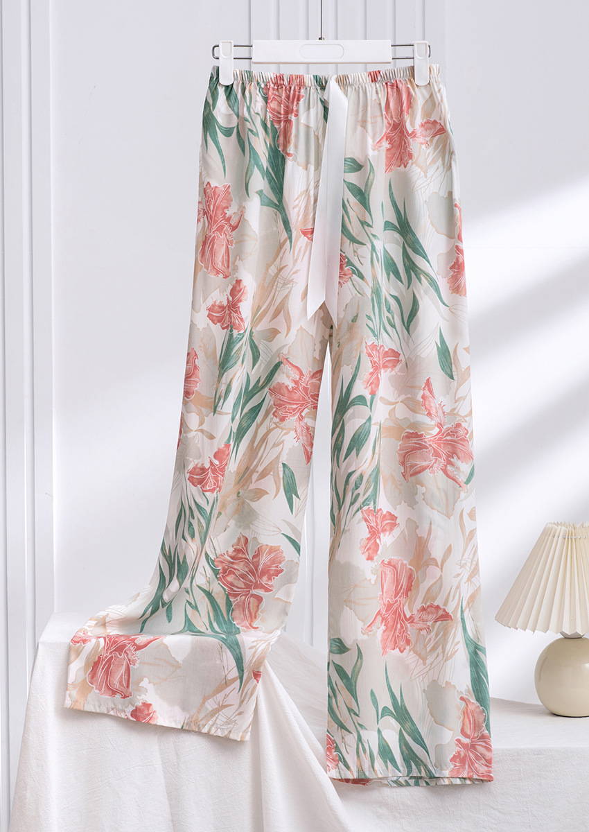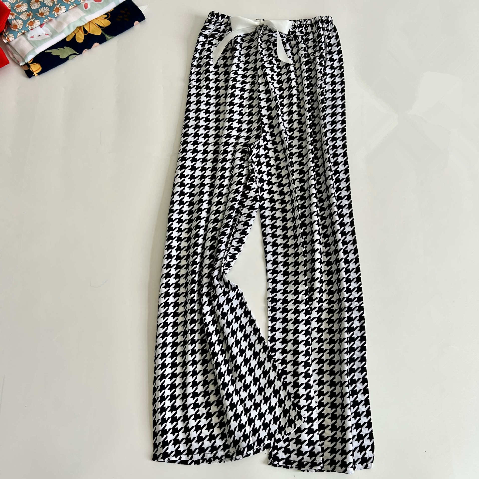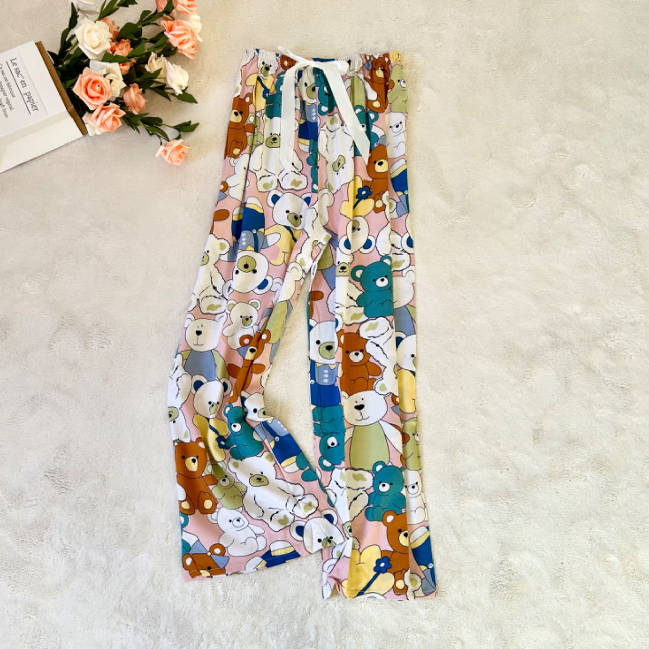 면 실크 잠옷 여성 여름 얇은 면 실크 봄과 가을 외부 느슨한 긴 홈 에어컨 새로운 넓은 다리 바지 착용