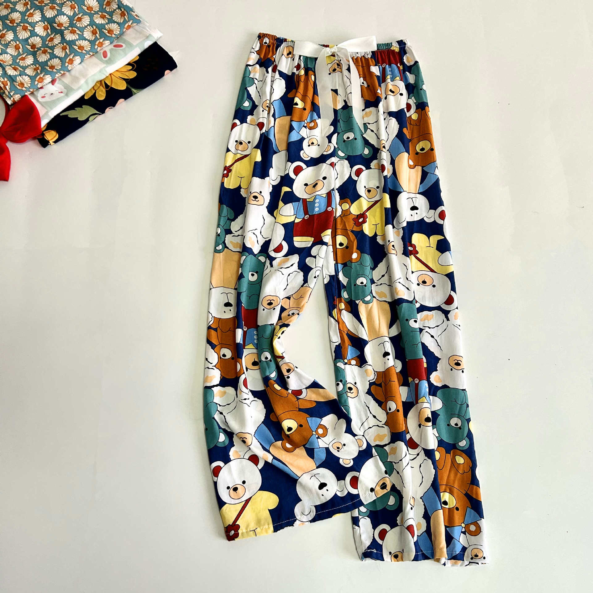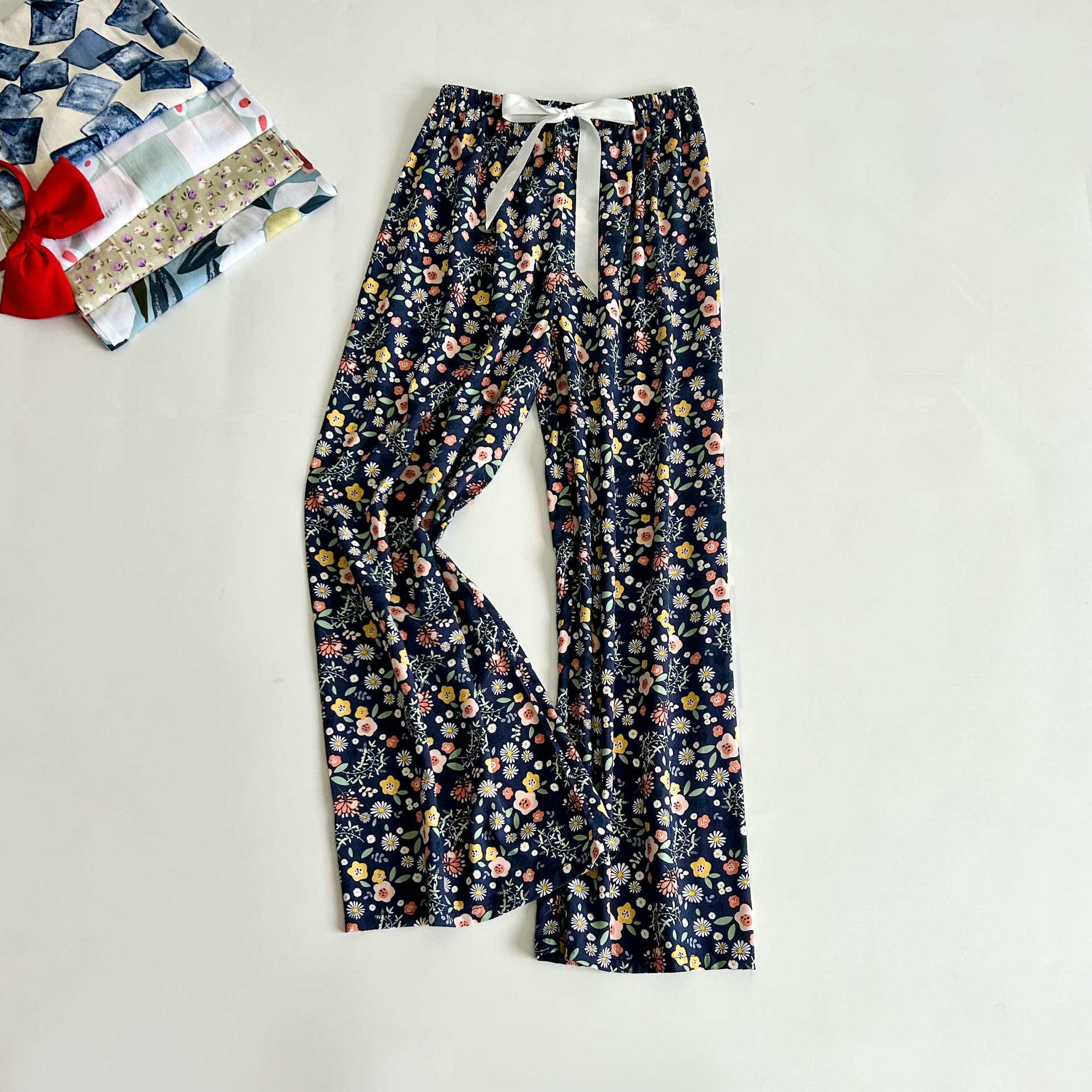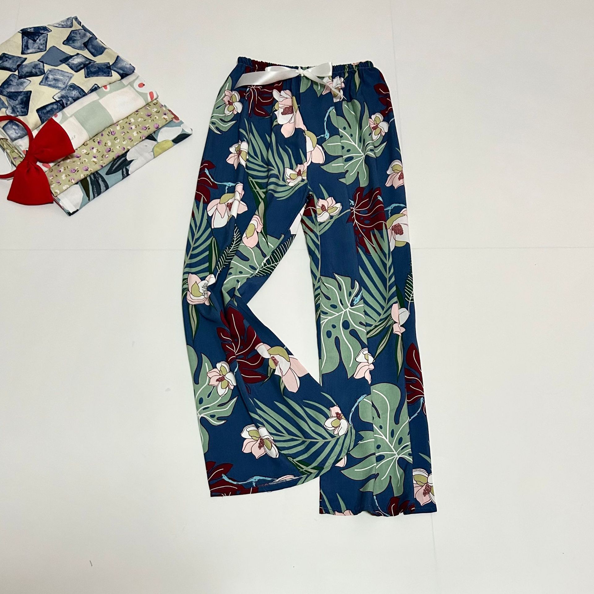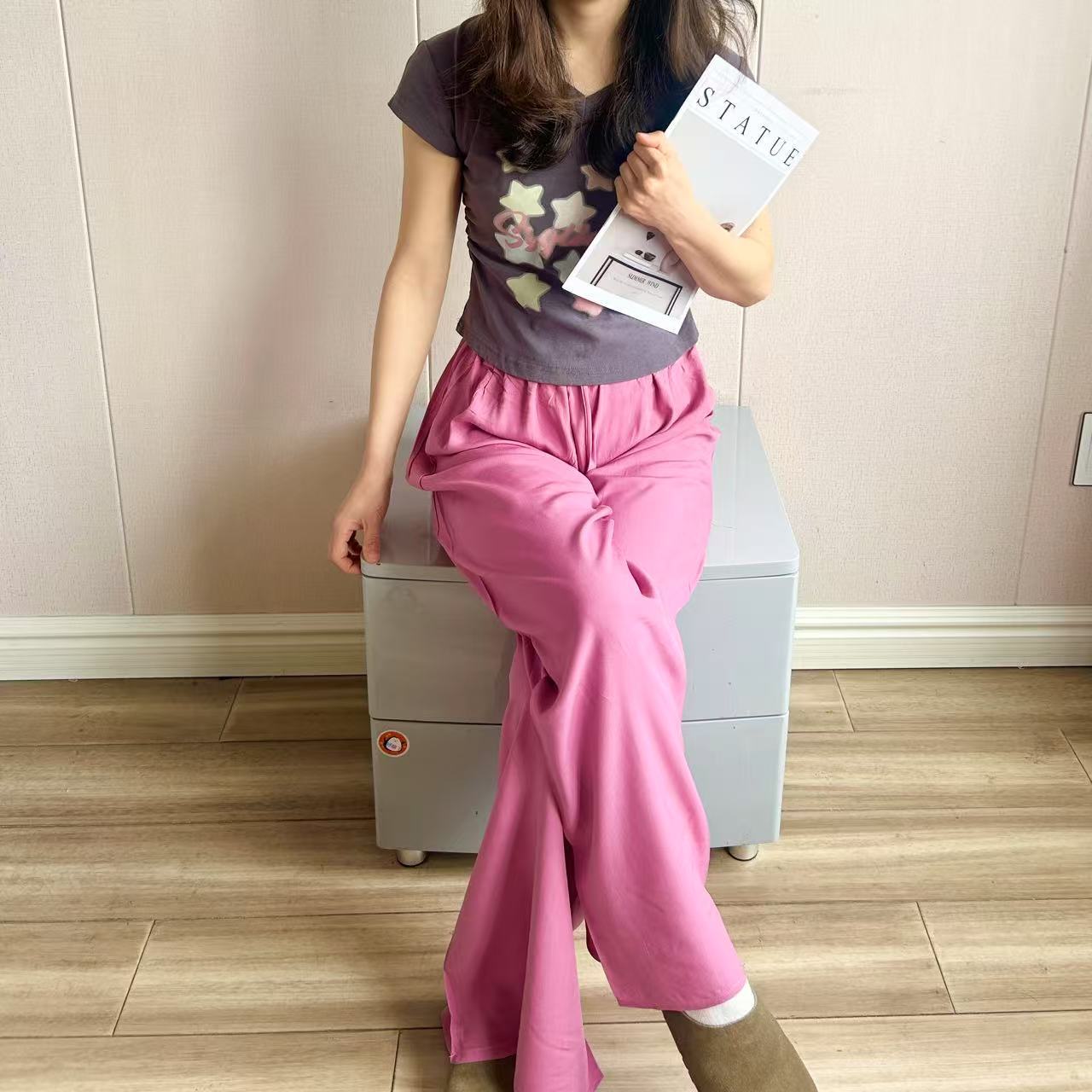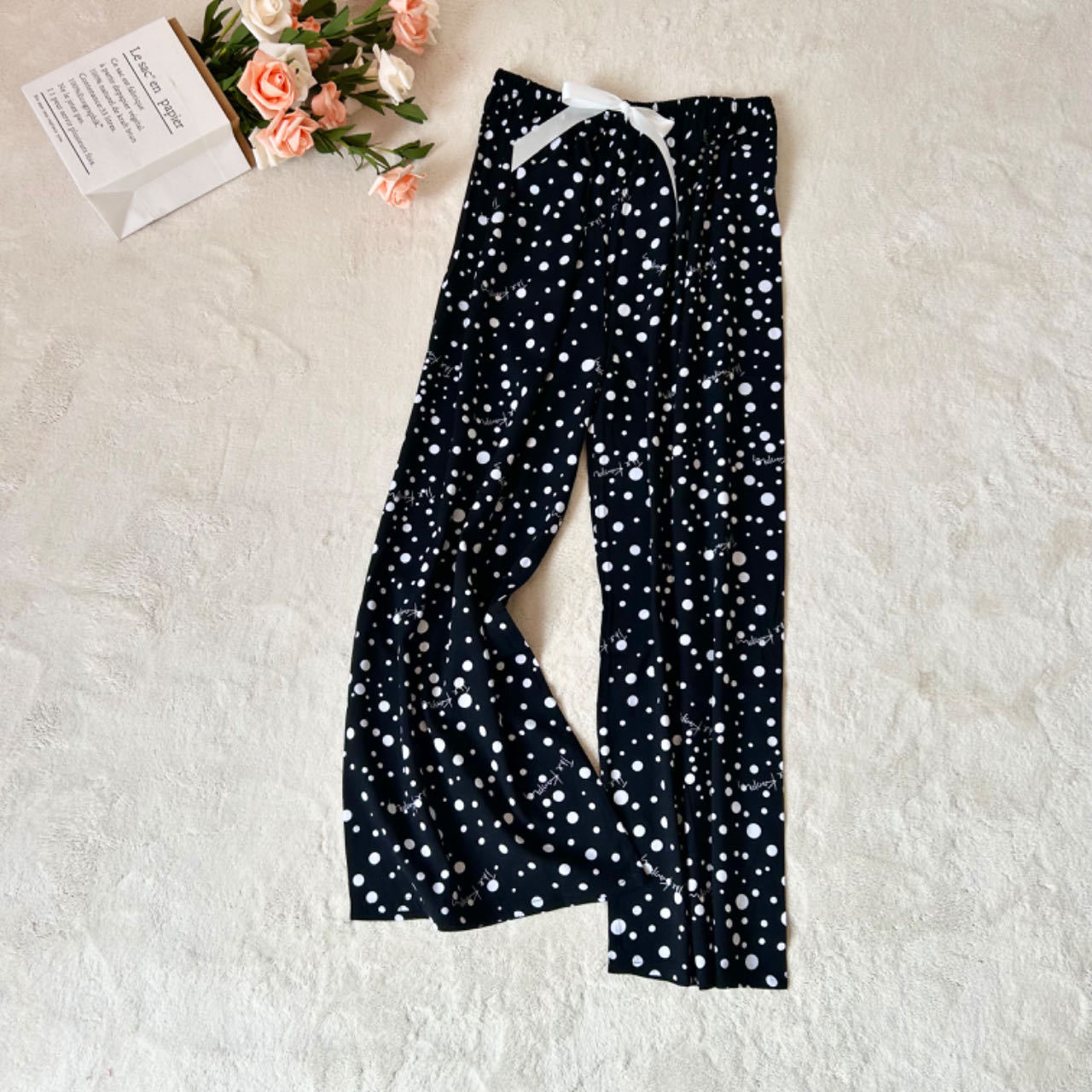 면 실크 잠옷 여성 여름 얇은 면 실크 봄과 가을 외부 느슨한 긴 홈 에어컨 새로운 넓은 다리 바지 착용