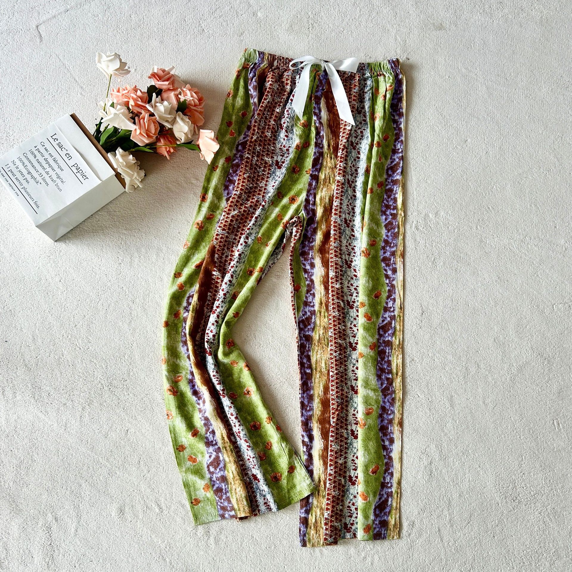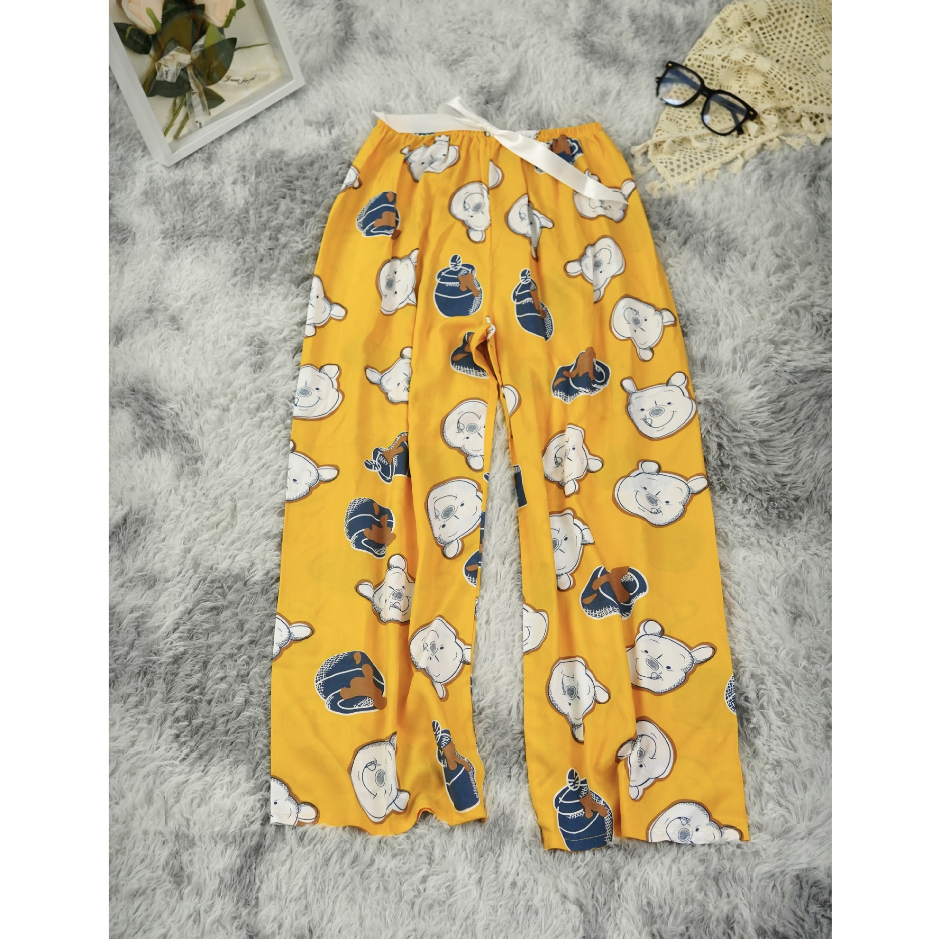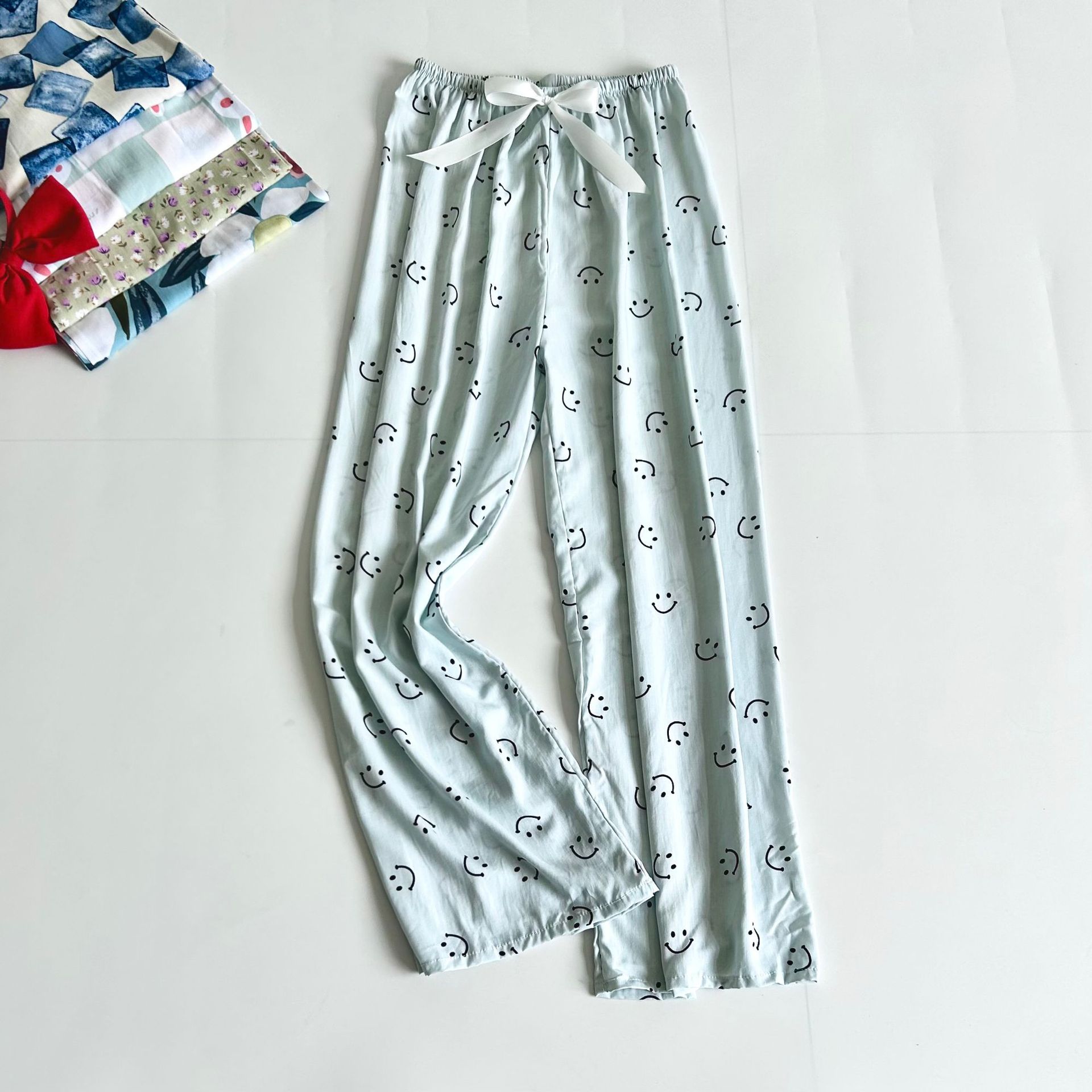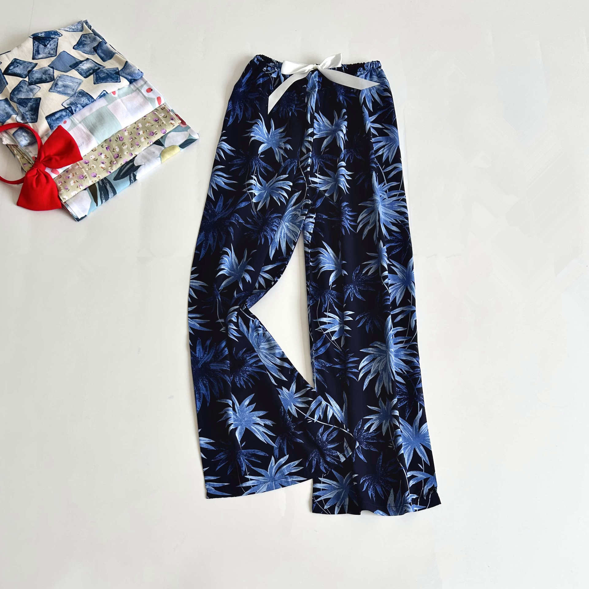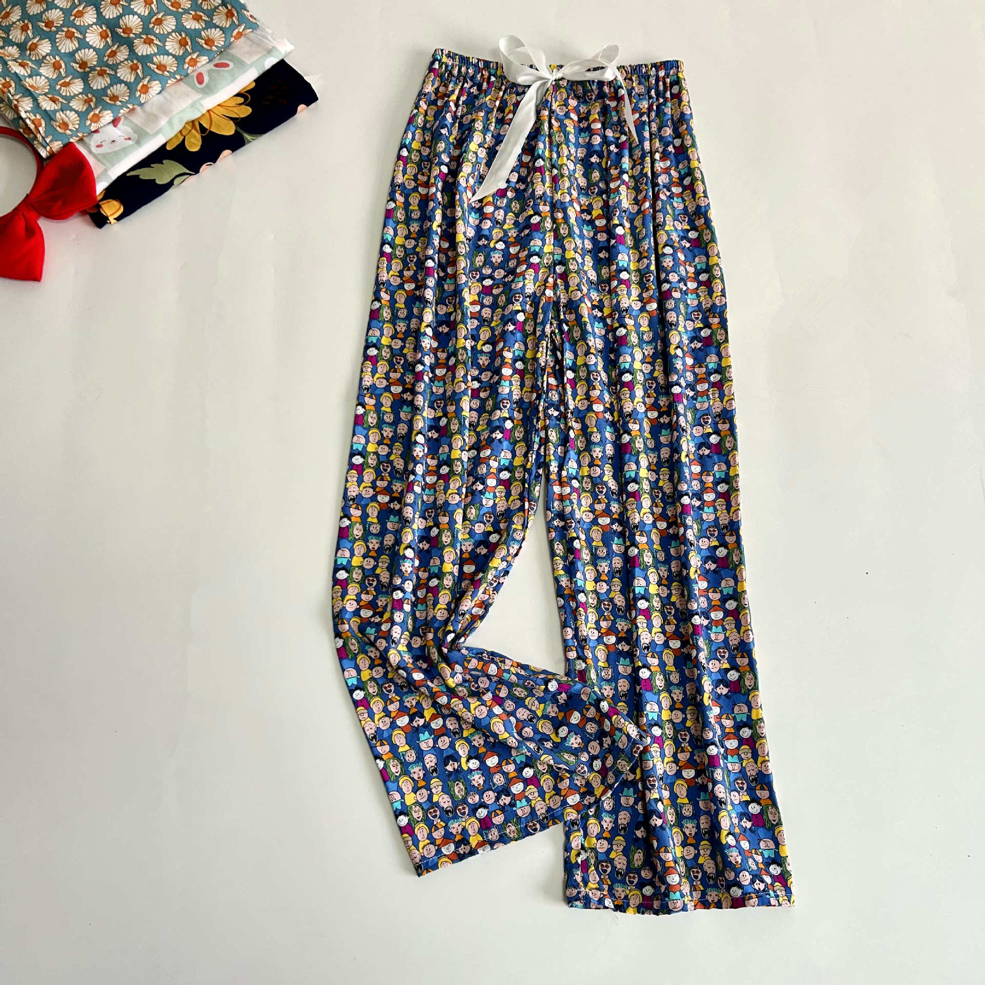 면 실크 잠옷 여성 여름 얇은 면 실크 봄과 가을 외부 느슨한 긴 홈 에어컨 새로운 넓은 다리 바지 착용