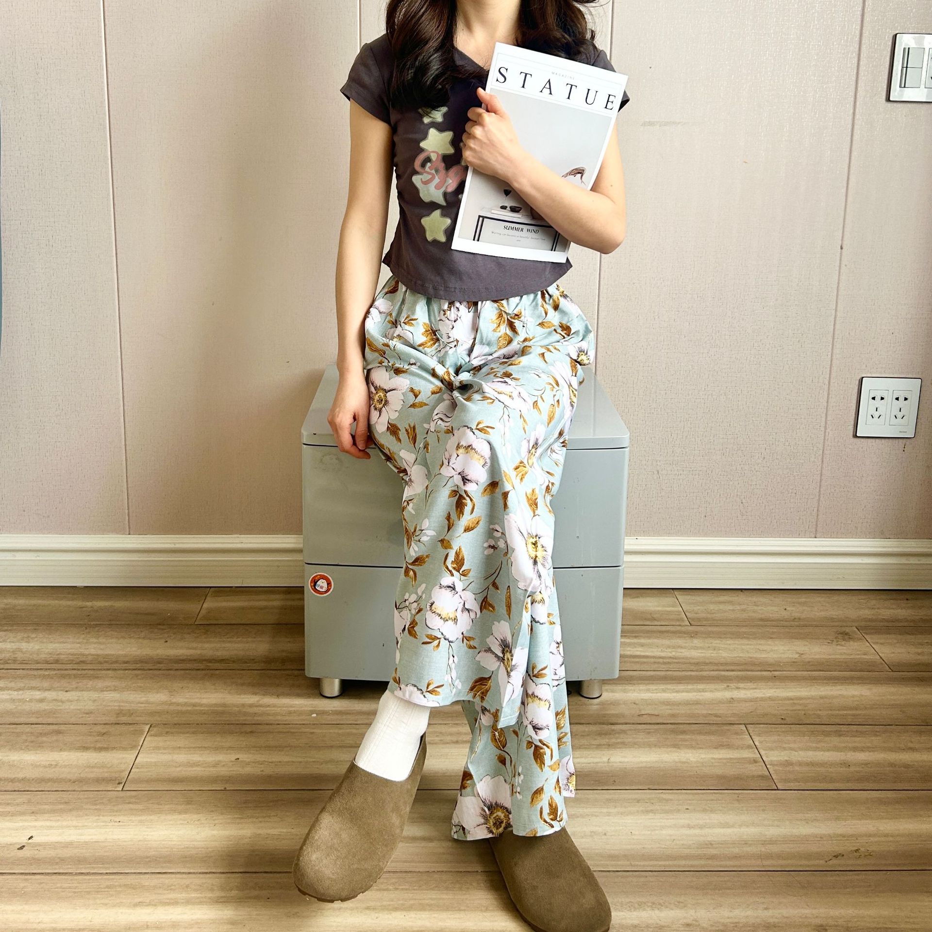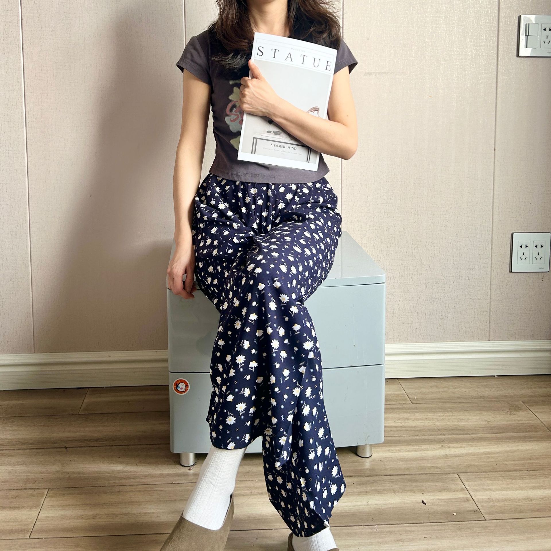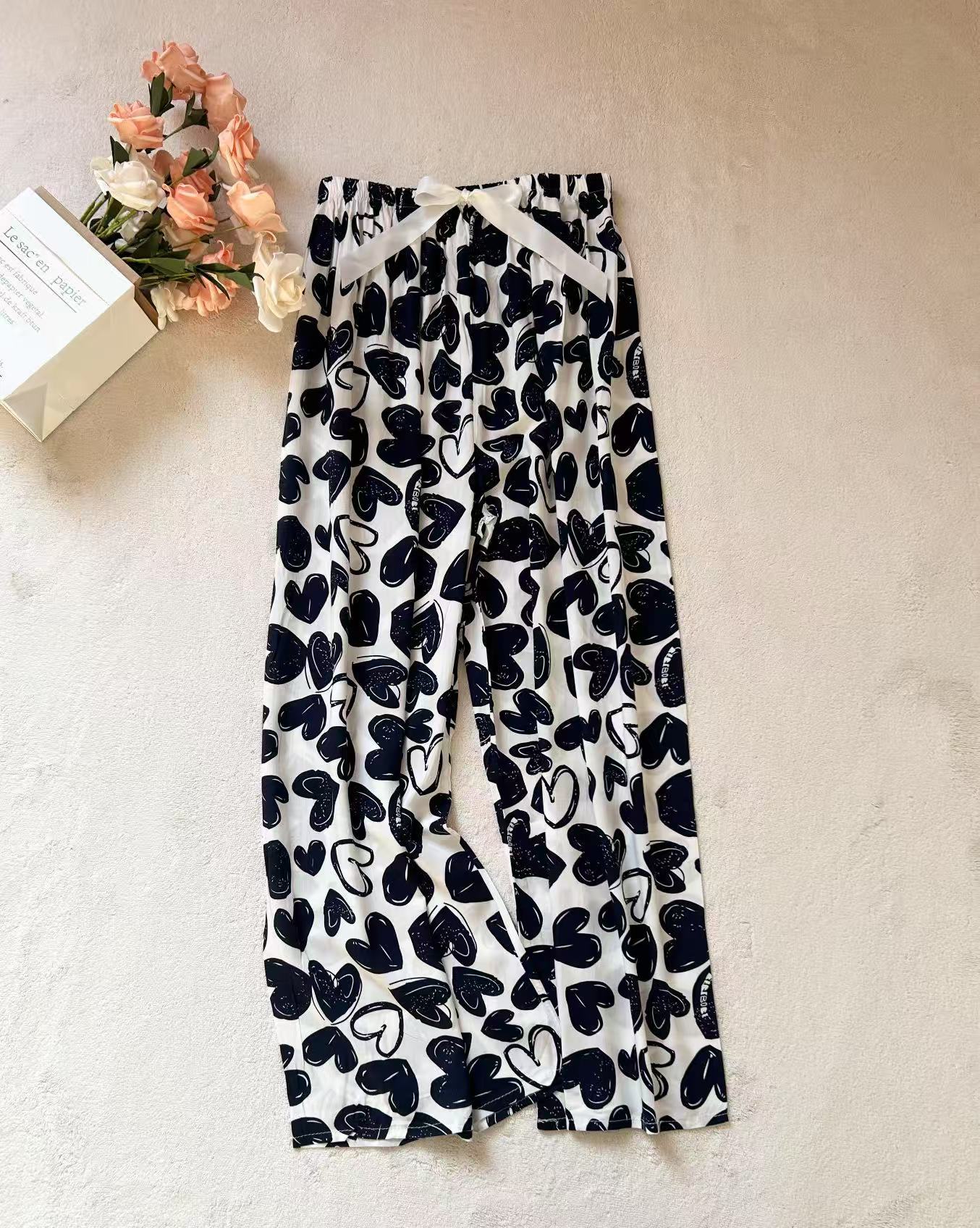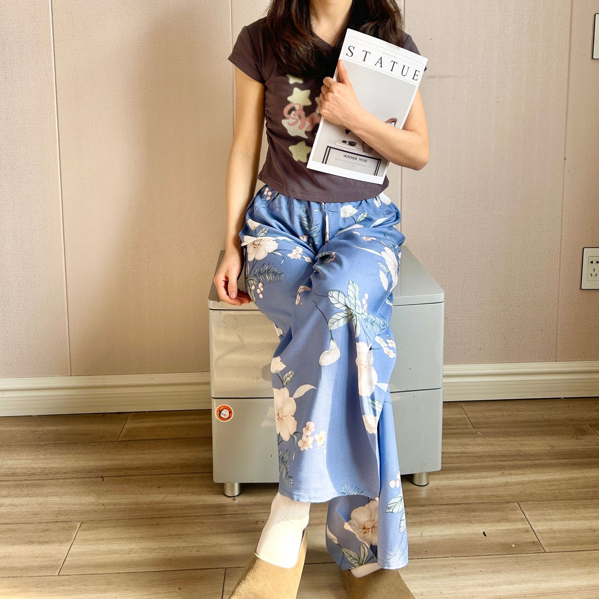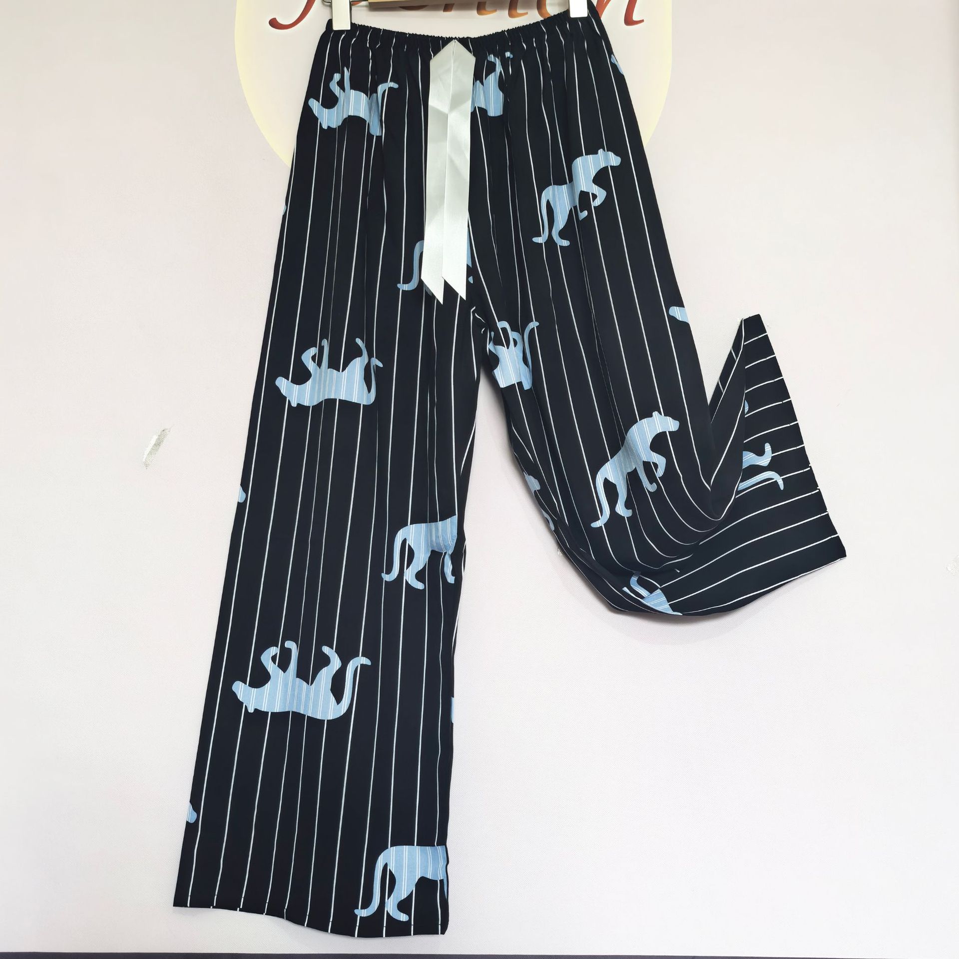 면 실크 잠옷 여성 여름 얇은 면 실크 봄과 가을 외부 느슨한 긴 홈 에어컨 새로운 넓은 다리 바지 착용