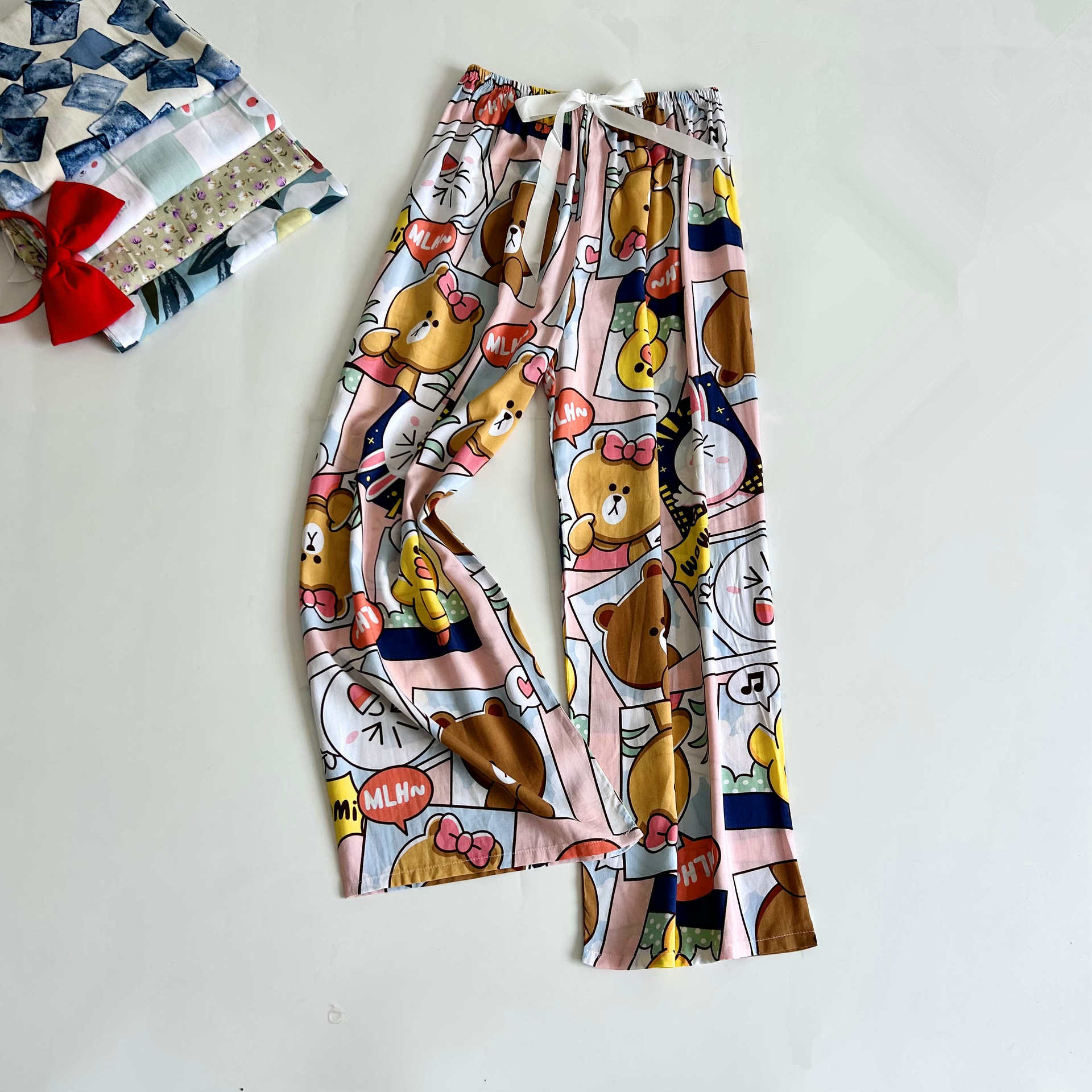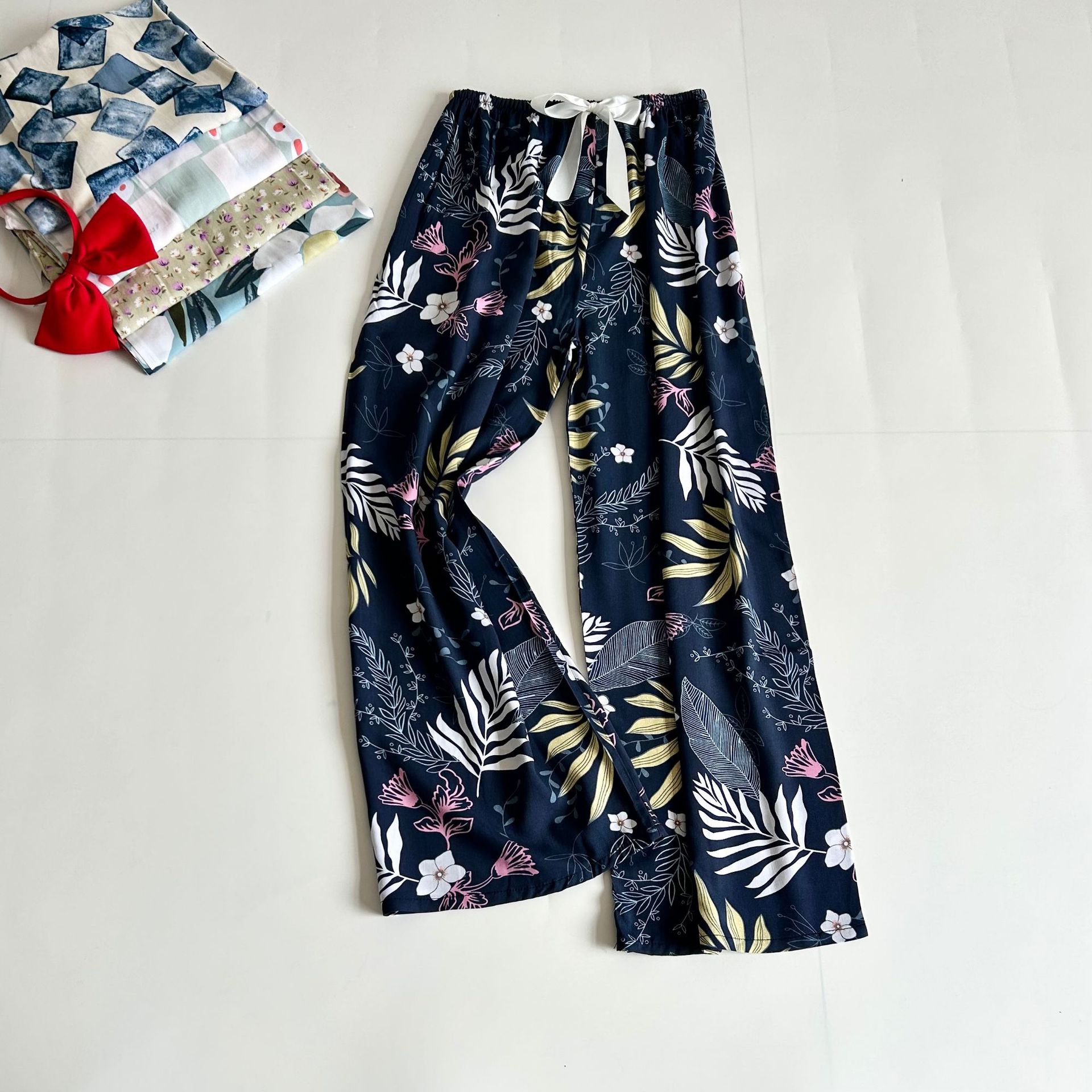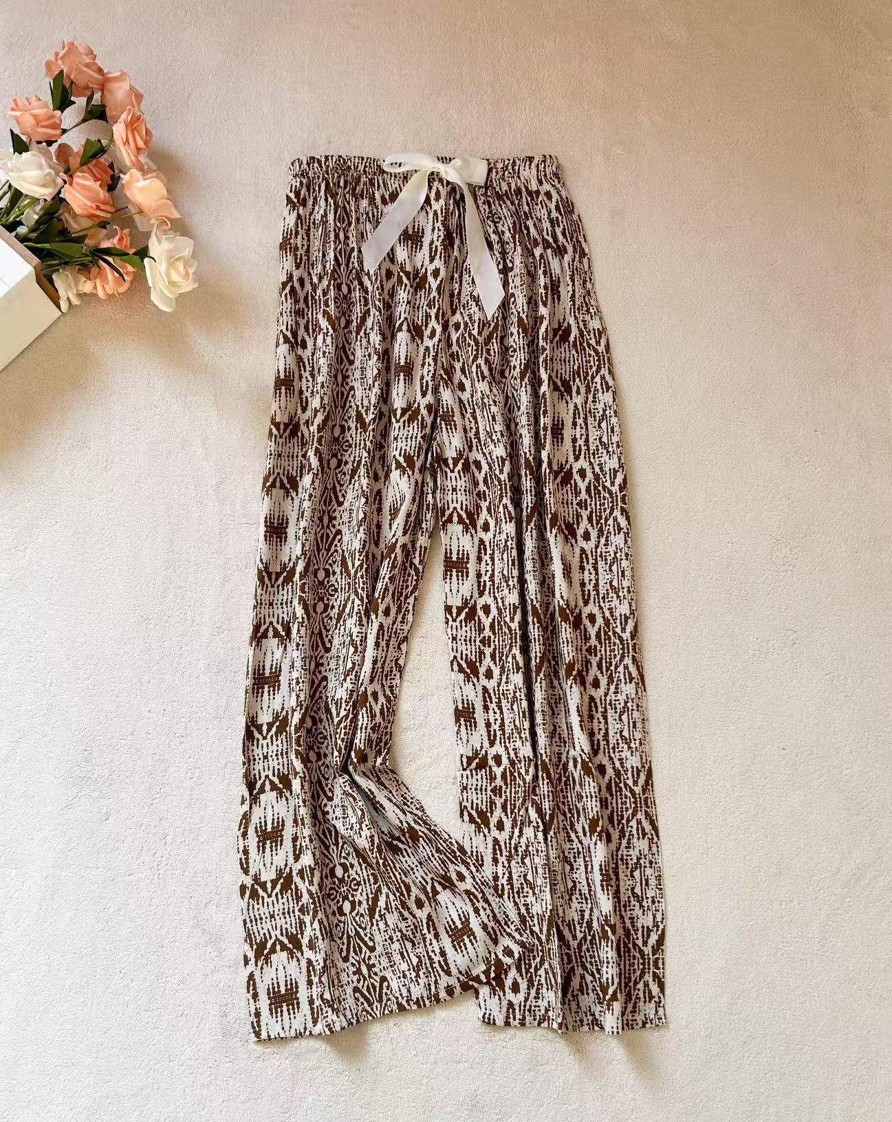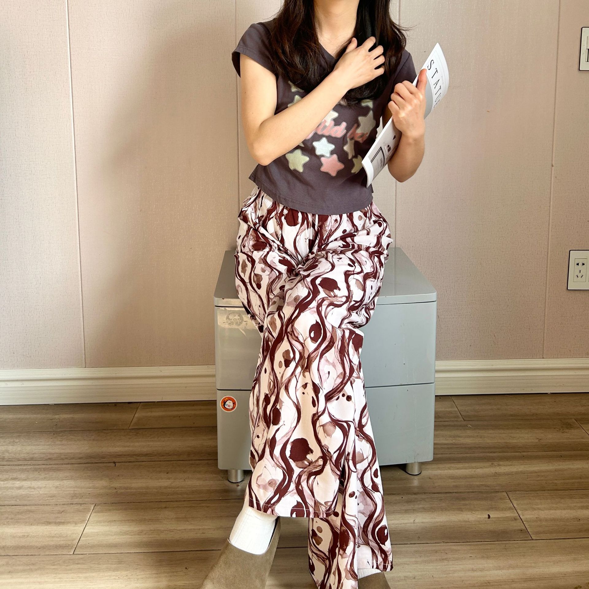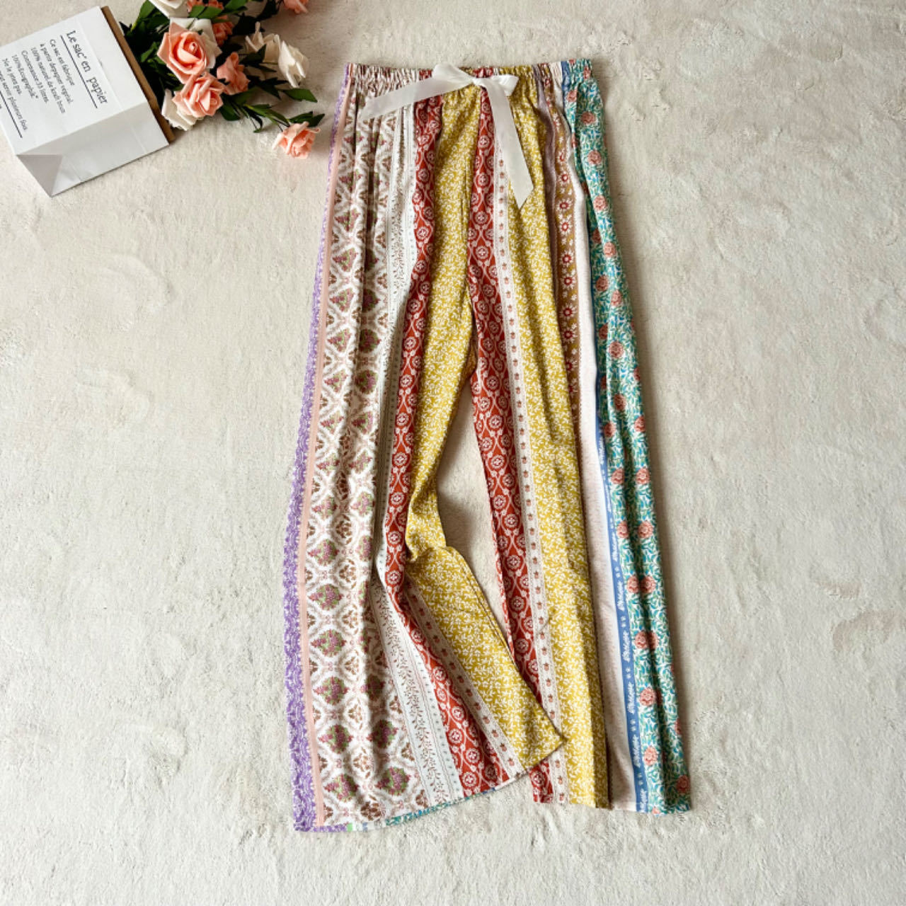 면 실크 잠옷 여성 여름 얇은 면 실크 봄과 가을 외부 느슨한 긴 홈 에어컨 새로운 넓은 다리 바지 착용