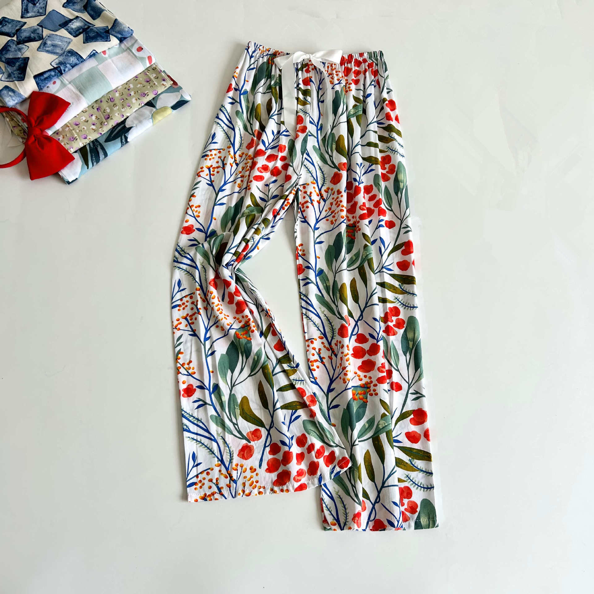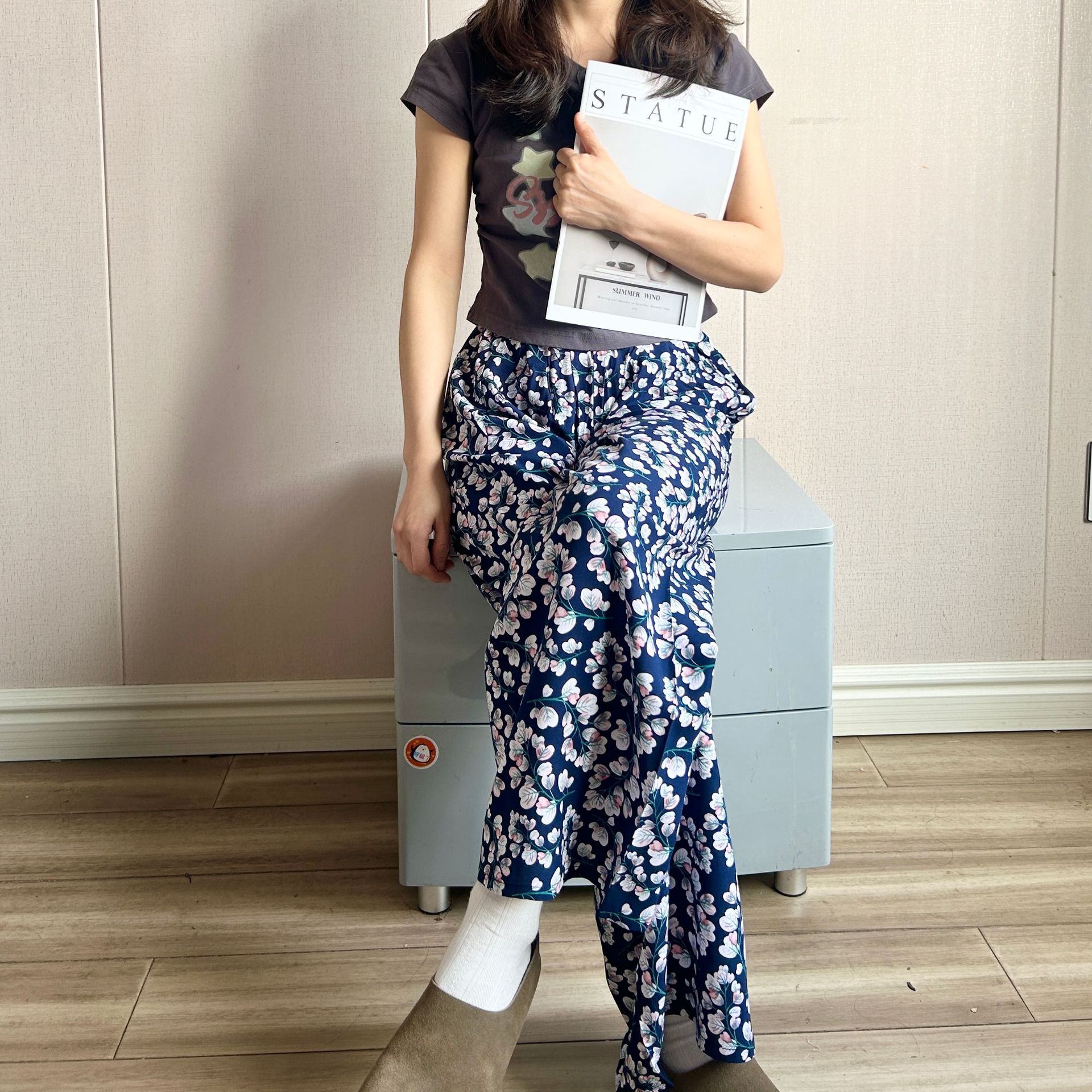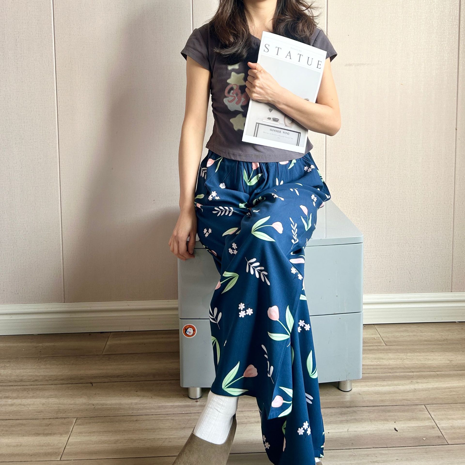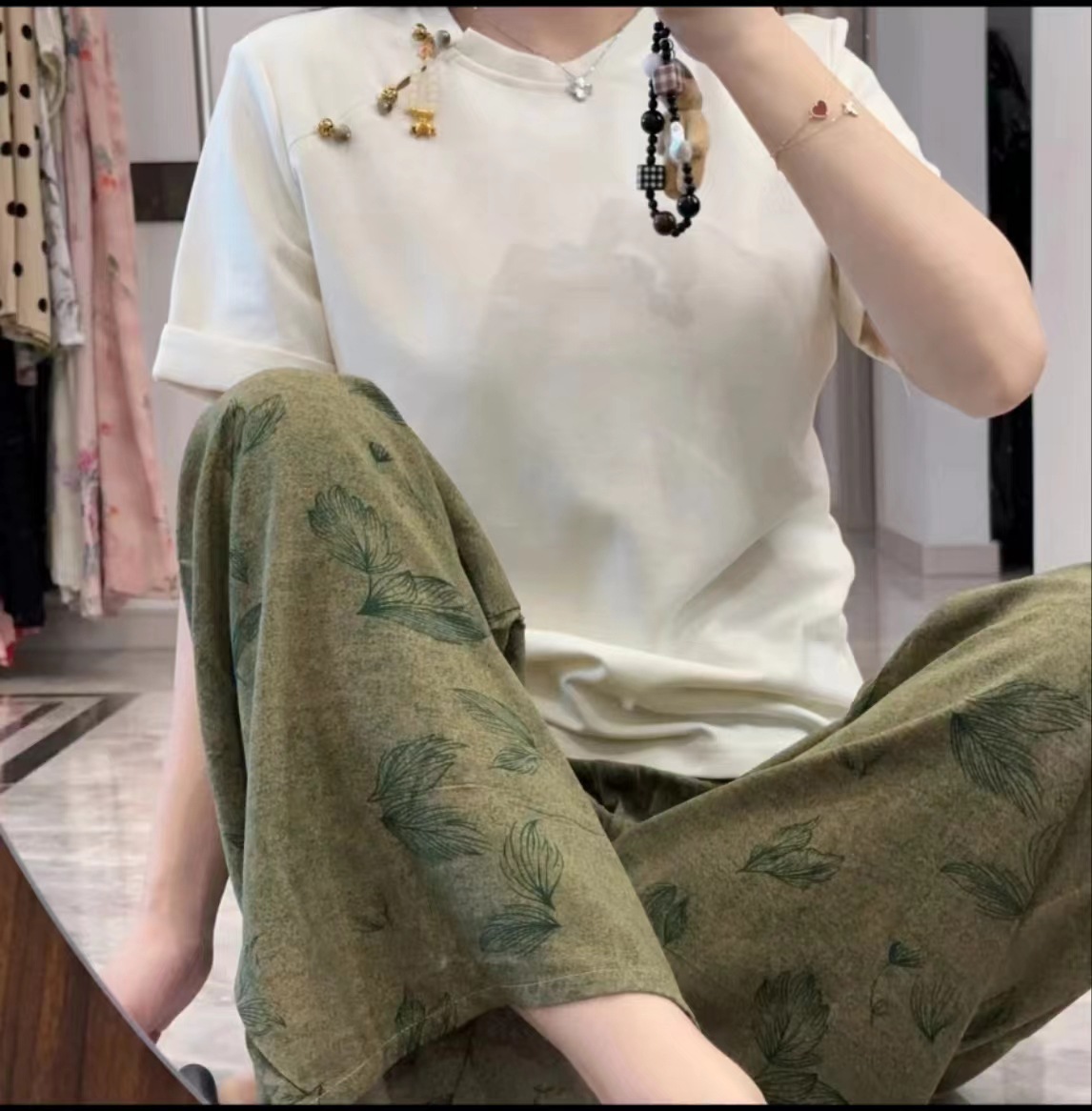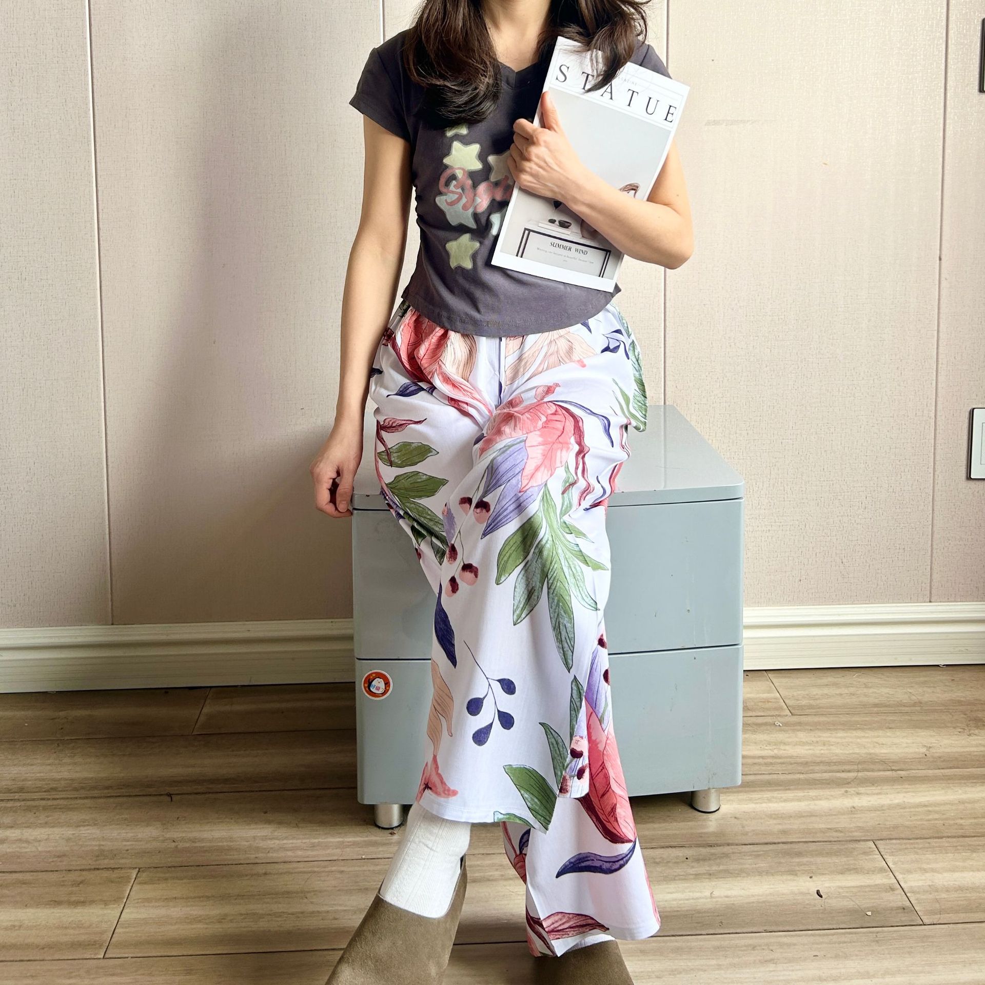 면 실크 잠옷 여성 여름 얇은 면 실크 봄과 가을 외부 느슨한 긴 홈 에어컨 새로운 넓은 다리 바지 착용