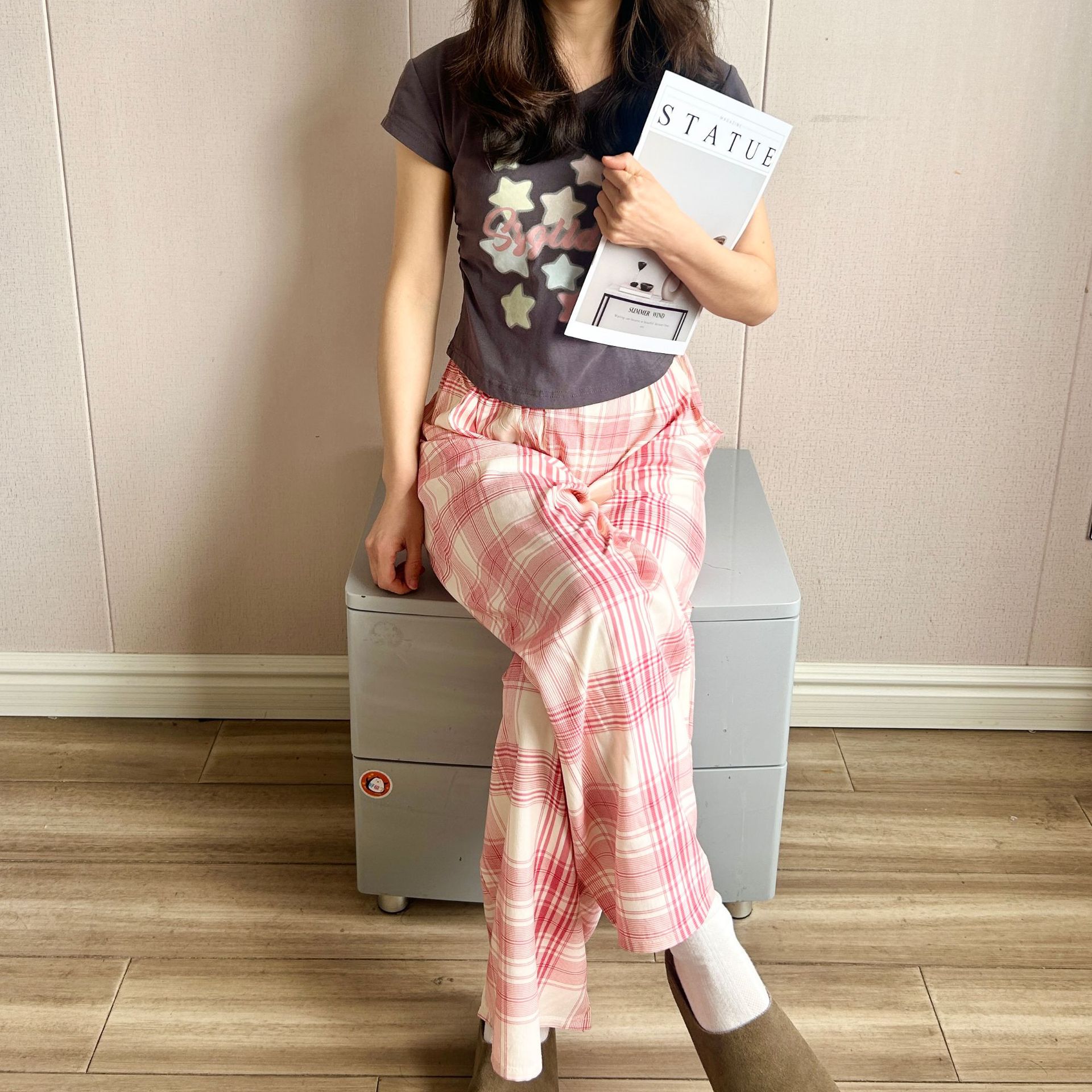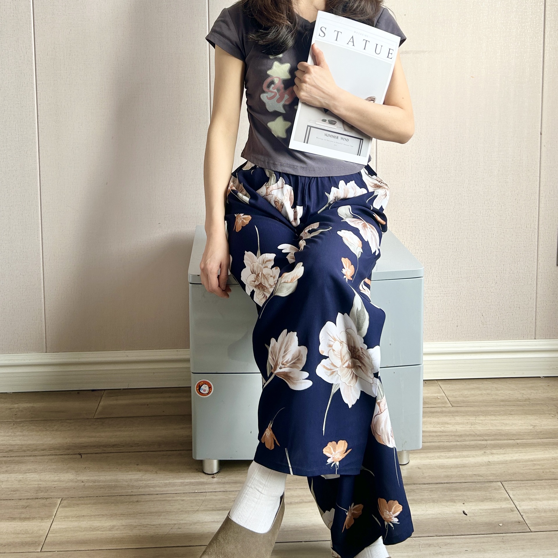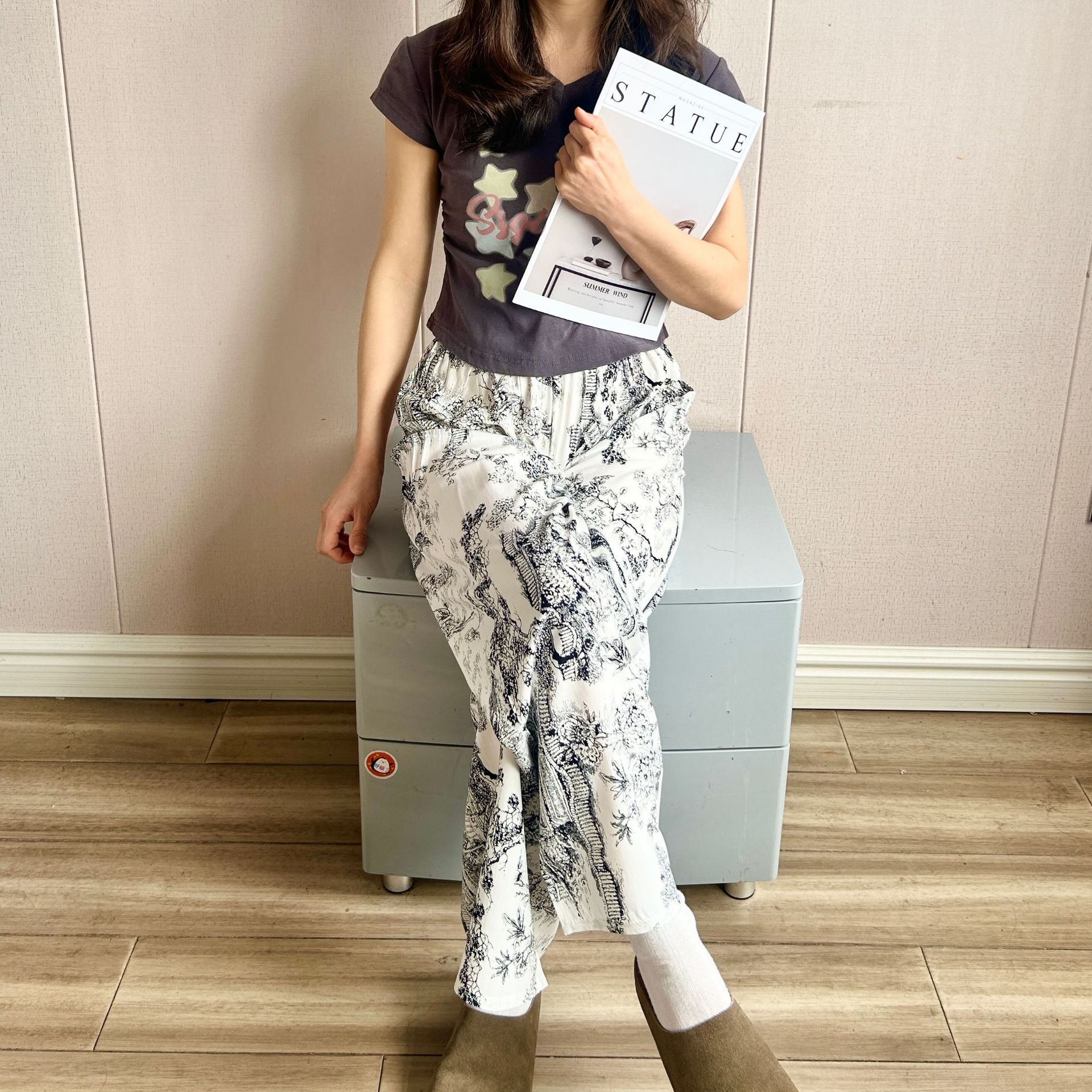면 실크 잠옷 여성 여름 얇은 면 실크 봄과 가을 외부 느슨한 긴 홈 에어컨 새로운 넓은 다리 바지 착용스토어 가기