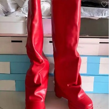 구미 신대외 무역 캔디 컬러 더블 워터 테이블 슈퍼 하이힐 주름 스트레이트 부츠 하이 부츠 공장 직판스토어 가기