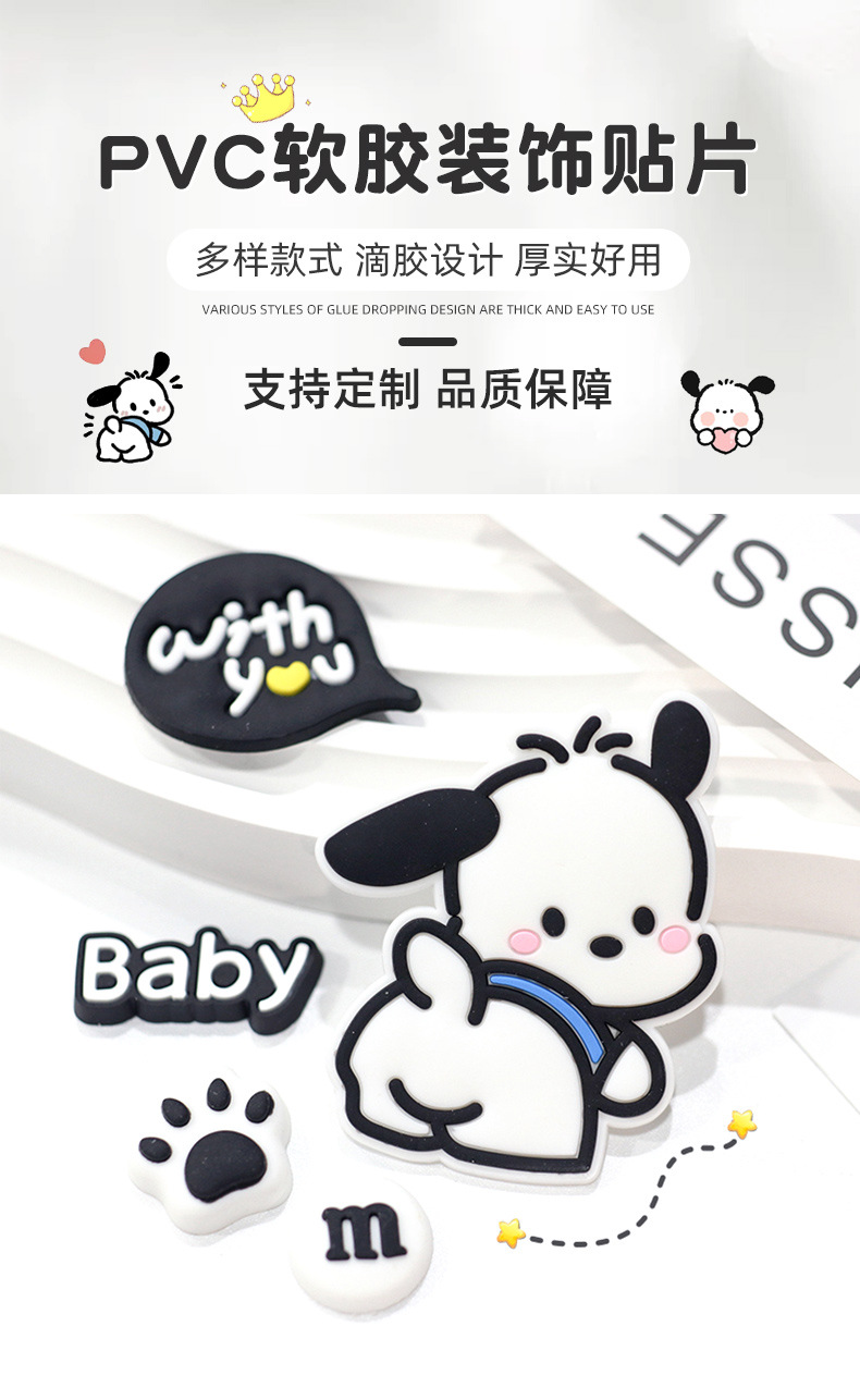 Pacha 개 PVC 부드러운 고무 만화 액세서리 냉장고 스티커 물 컵 DIY 강아지 패치 편지 구멍 신발 꽃 버클 장식스토어 가기