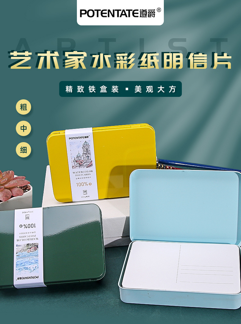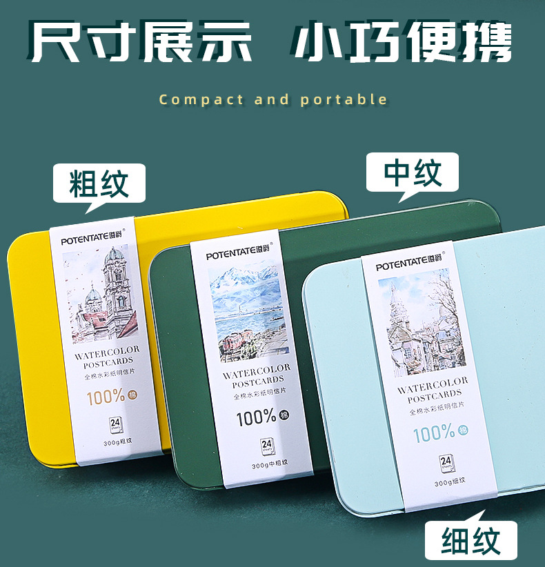 잠재력 Zunjue 아티스트 학년 면 A6 거친 수채화 용지 300g 엽서 철 상자 여행 스케치스토어 가기