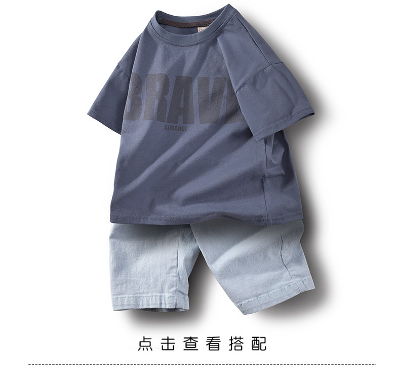 아동복 2022 여름 신상 남아 반팔 티셔츠 순면 남여공용 루즈한 숄더 드롭 어린이 중년 어린이스토어 가기