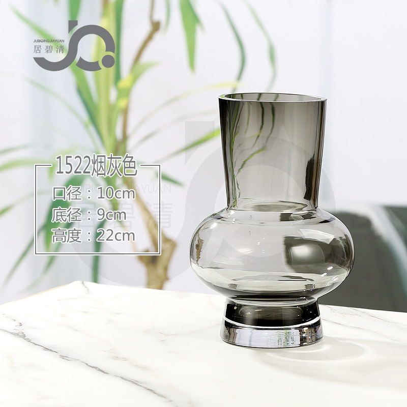 유럽식 간단한 배꼽 원형 유리 꽃병 데스크탑 꽃꽂이 백합 장미 풍부한 대나무 Chimonanthus 꽃 장식품 거실
