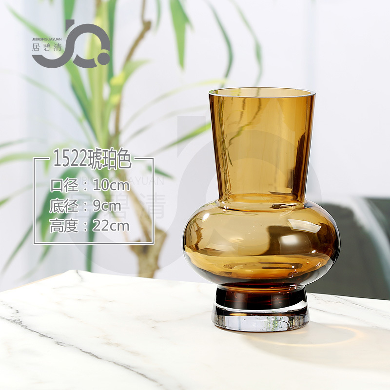 유럽식 간단한 배꼽 원형 유리 꽃병 데스크탑 꽃꽂이 백합 장미 풍부한 대나무 Chimonanthus 꽃 장식품 거실스토어 가기