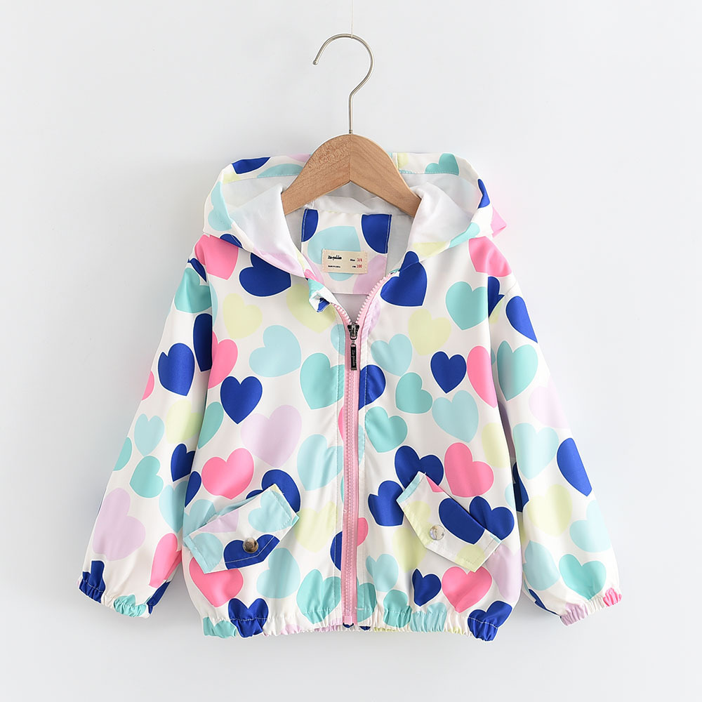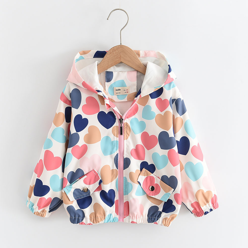 2023春季新款 爱心印花 女童休闲连帽双层风衣夹克外套