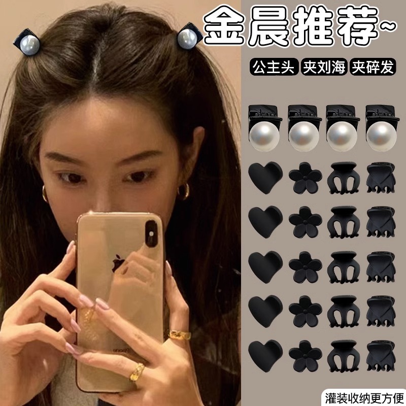 여성용 고급 헤어핀, 공주머리 작은 집게핀, 이마 옆머리, 작은 헤어핀, 검은색 작은 집게핀 머리장식