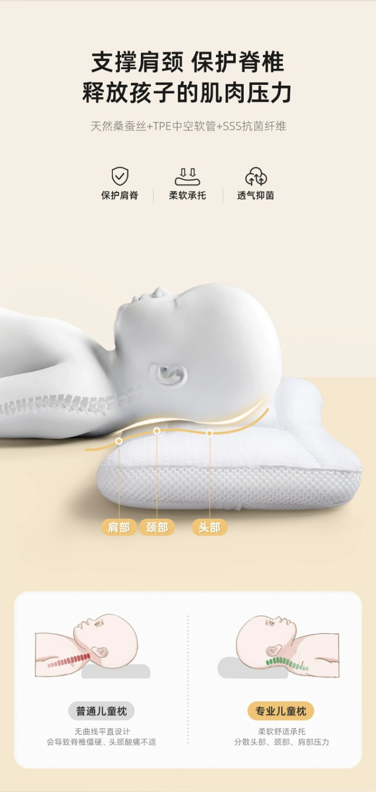베베버스 어린이 베개 A급 1-6-8세 유아 초등학생 베개 업그레이드된 분할형 항균 및 진드기 방지 베개