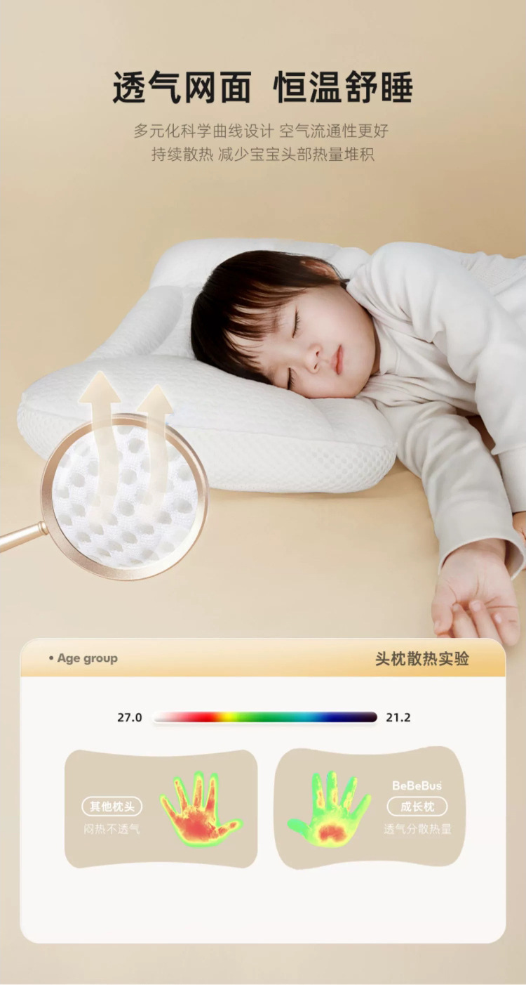 • Bebus 항균 방지 진드기 어린이 성장 베개 (1-6 세에 적합) [조절 베개 높이]