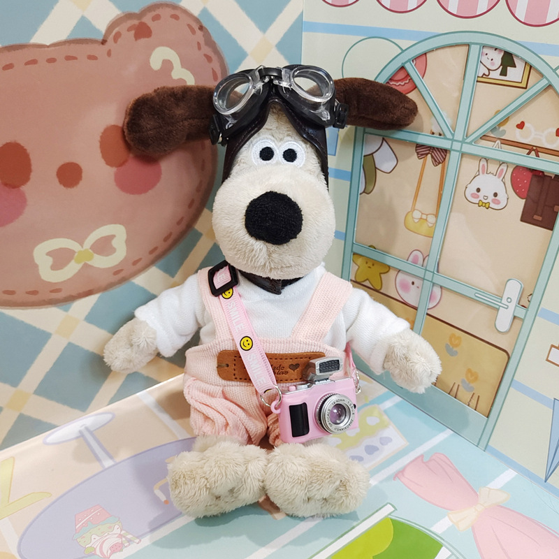 • 다크 브라운 스웨터 + 흰색 스카프 + 블랙 카메라에 강아지 23cm 개 착용 없음